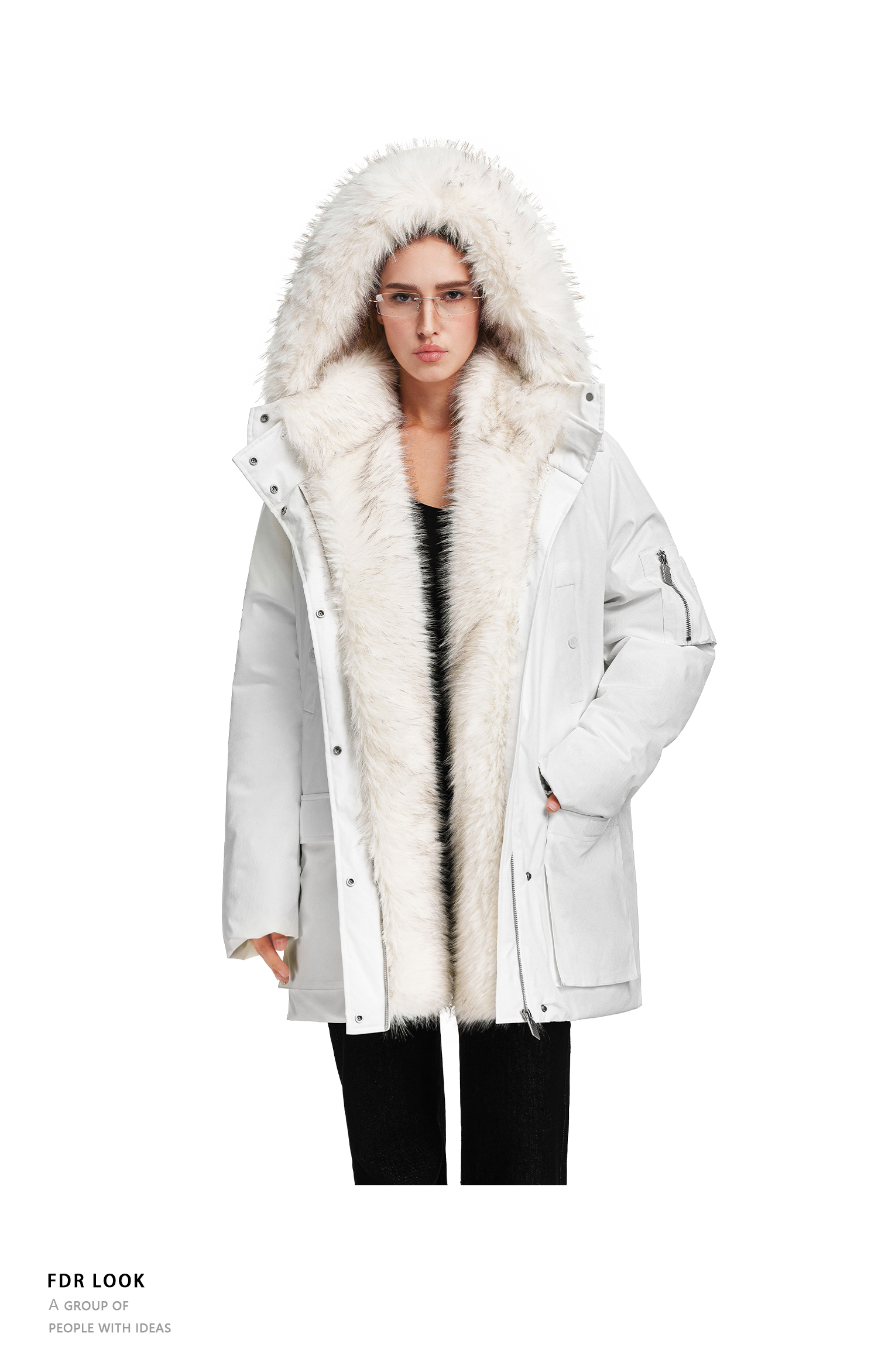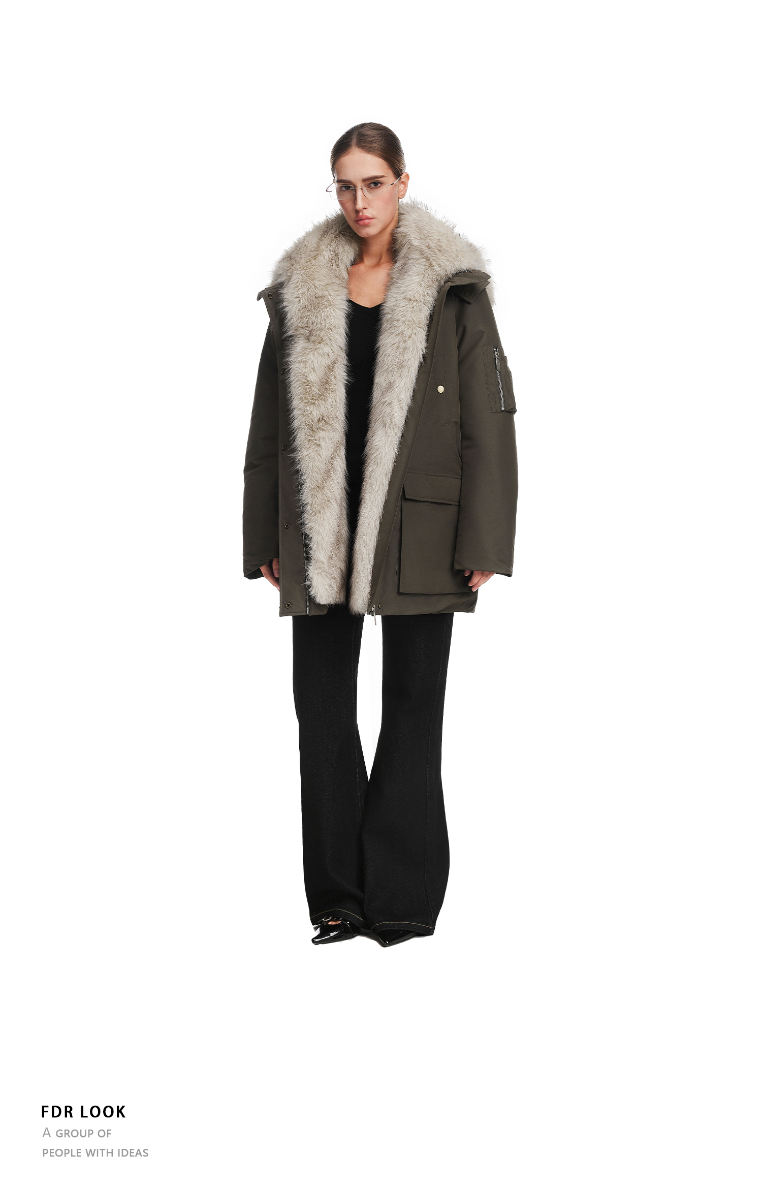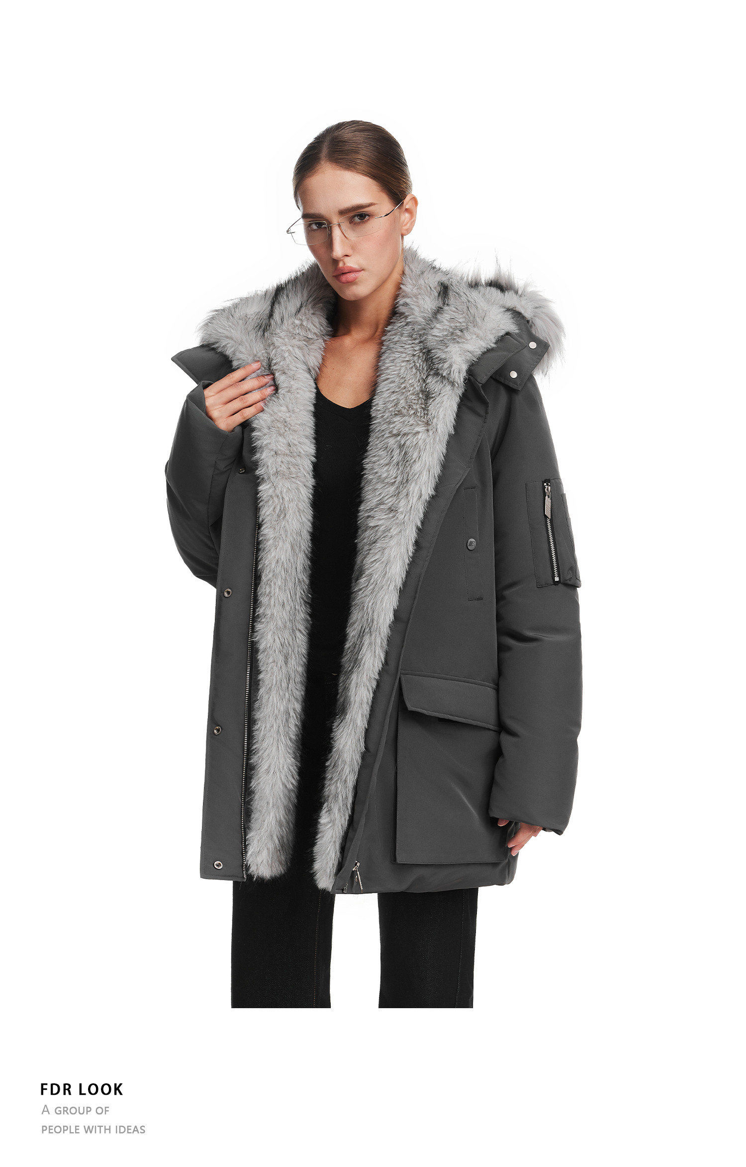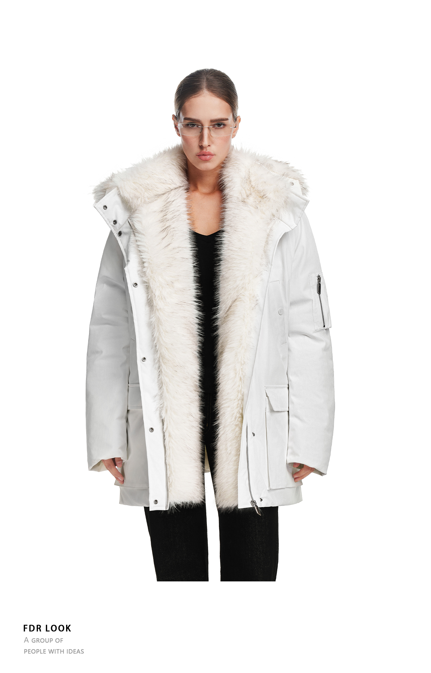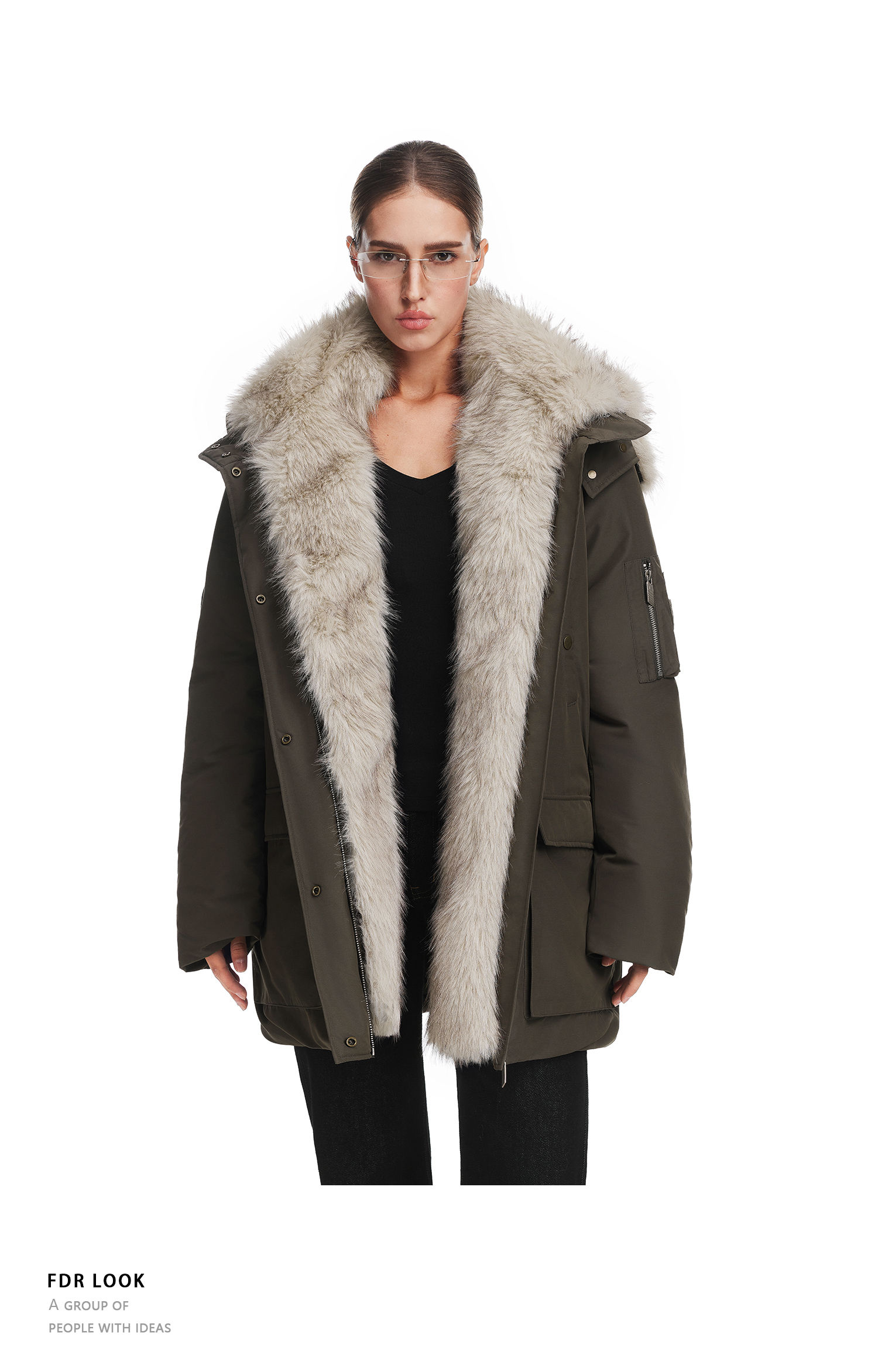 FDR官方店 中长款毛领大衣座山雕外套工装派克服式羽绒服女款冬季