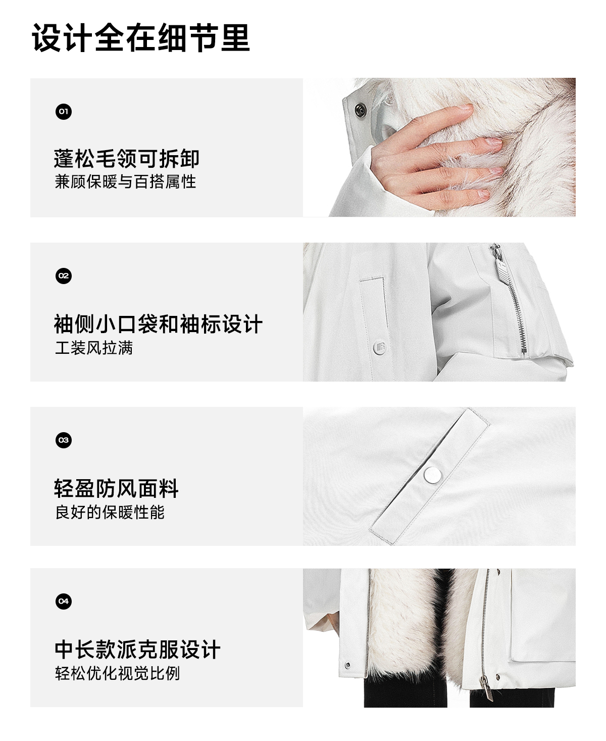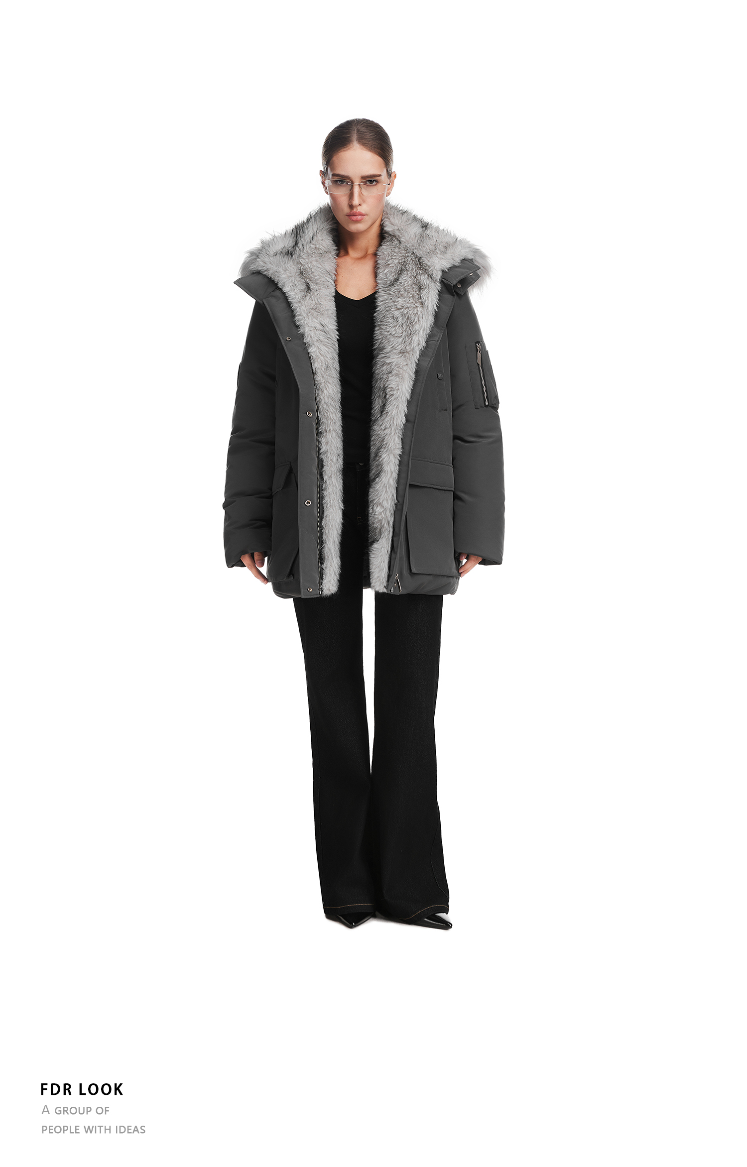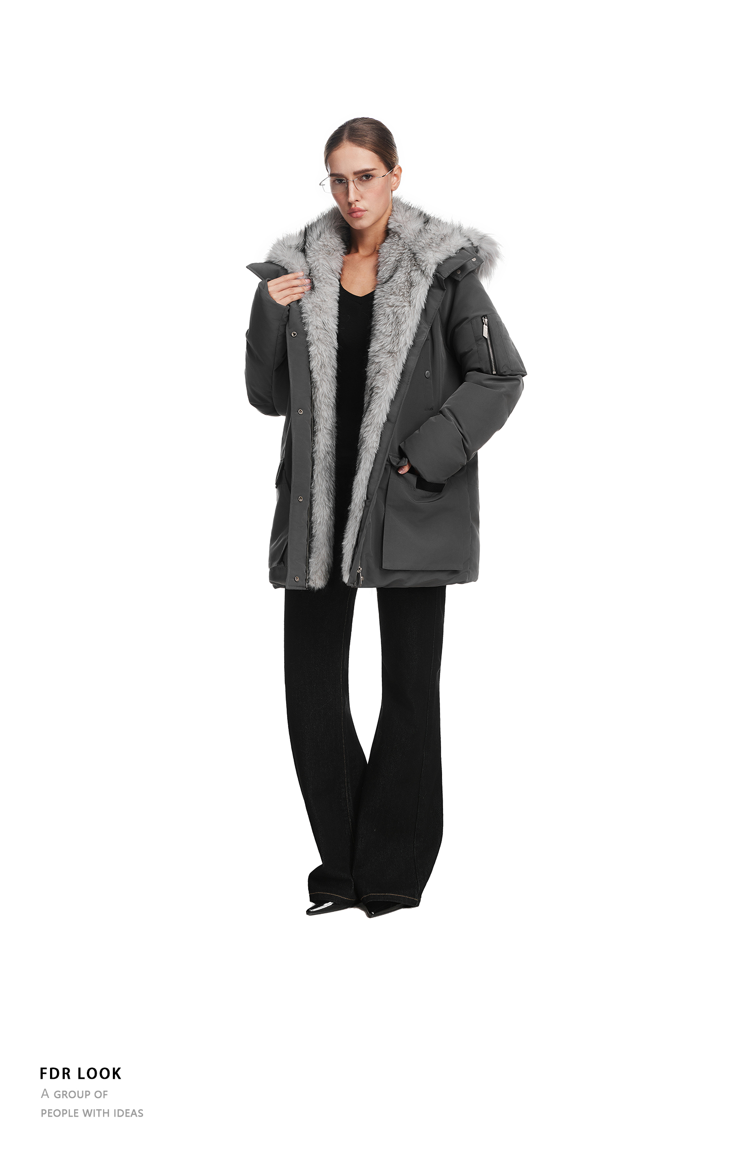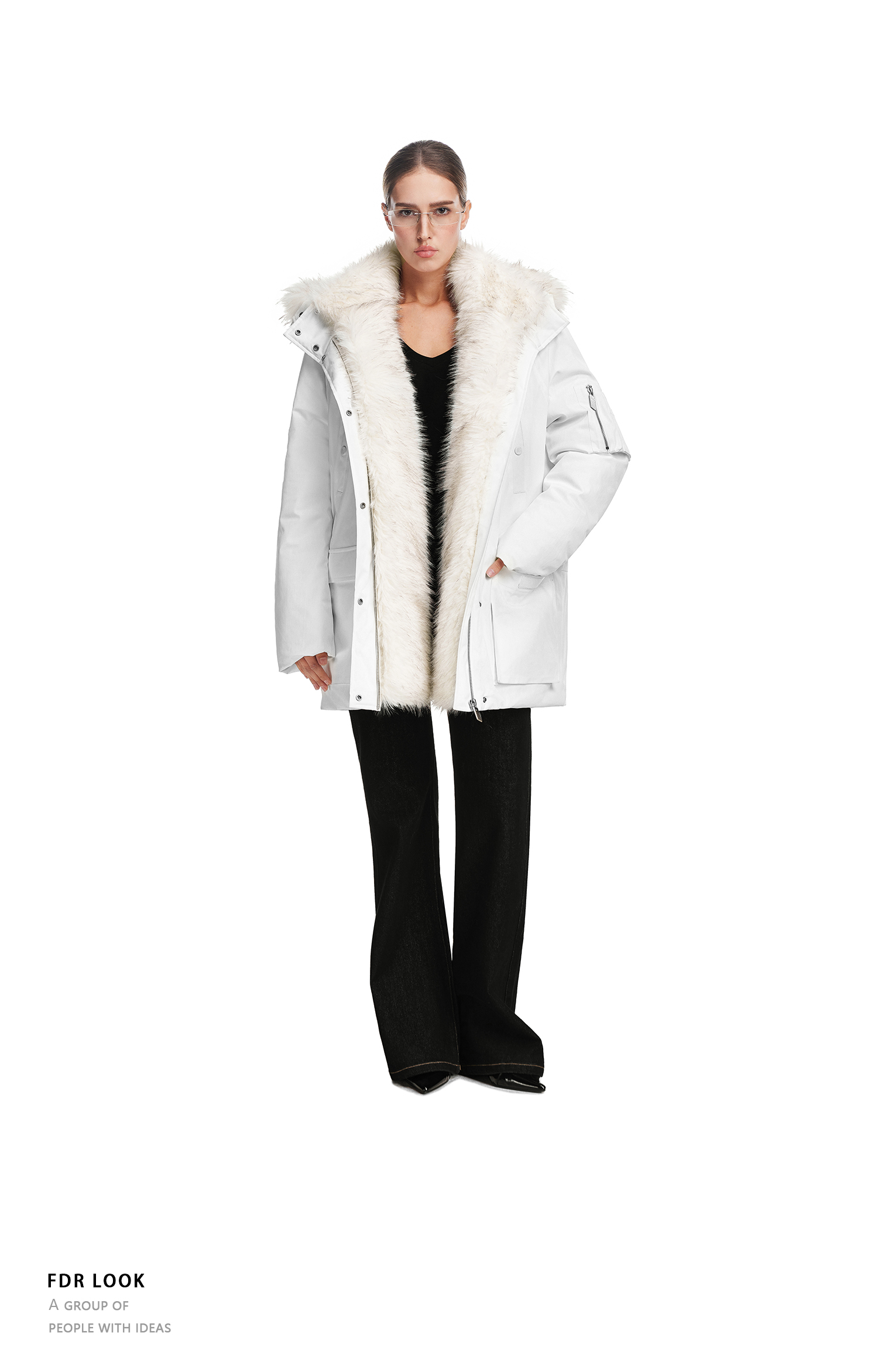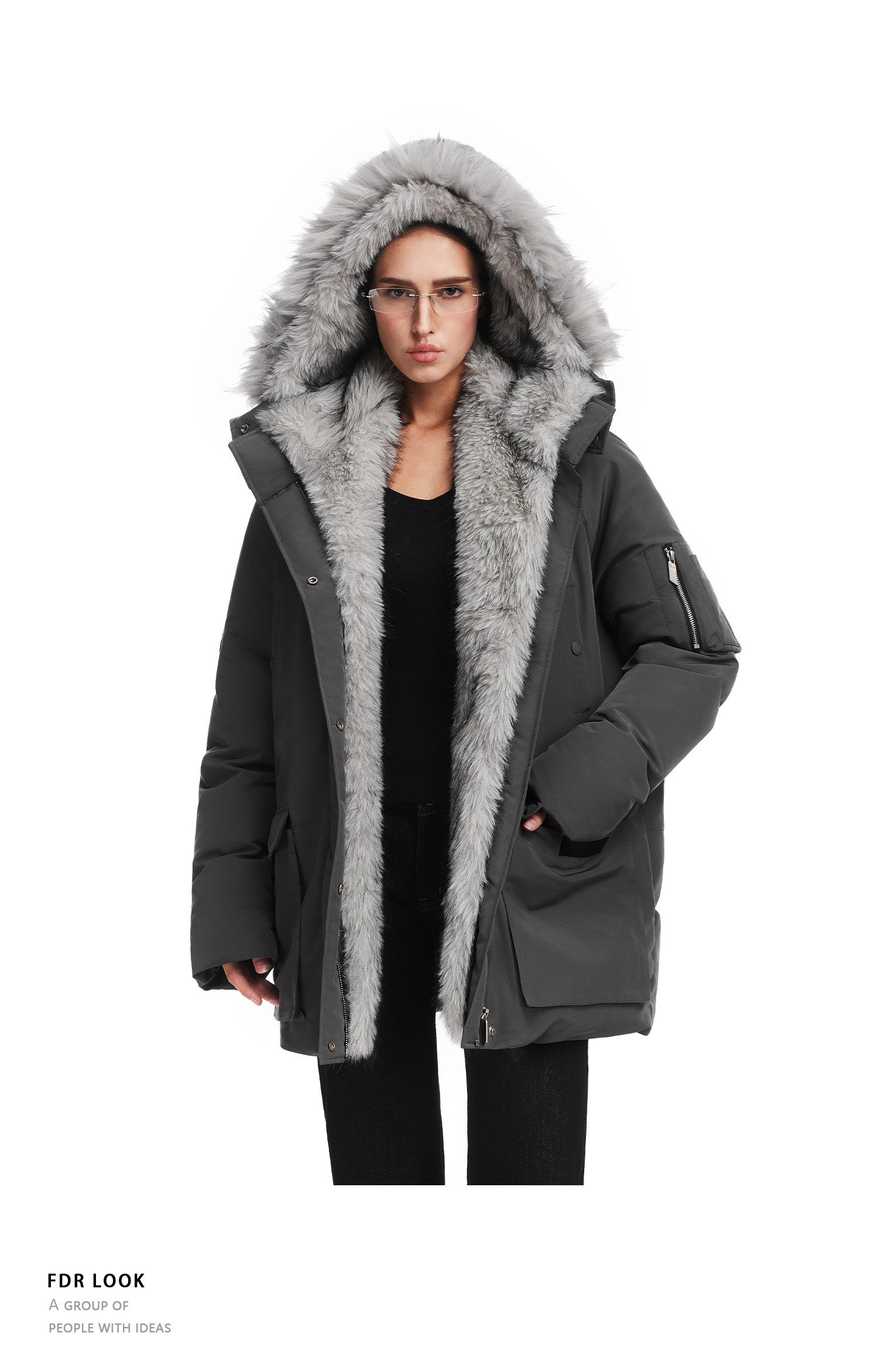 FDR官方店 中长款毛领大衣座山雕外套工装派克服式羽绒服女款冬季