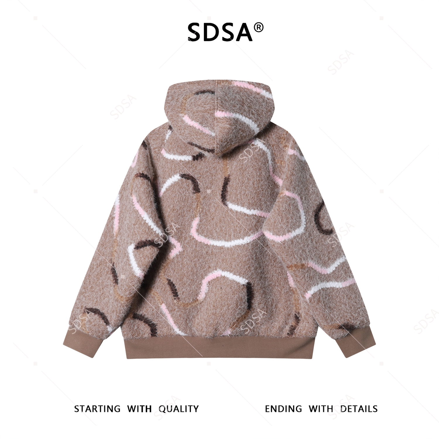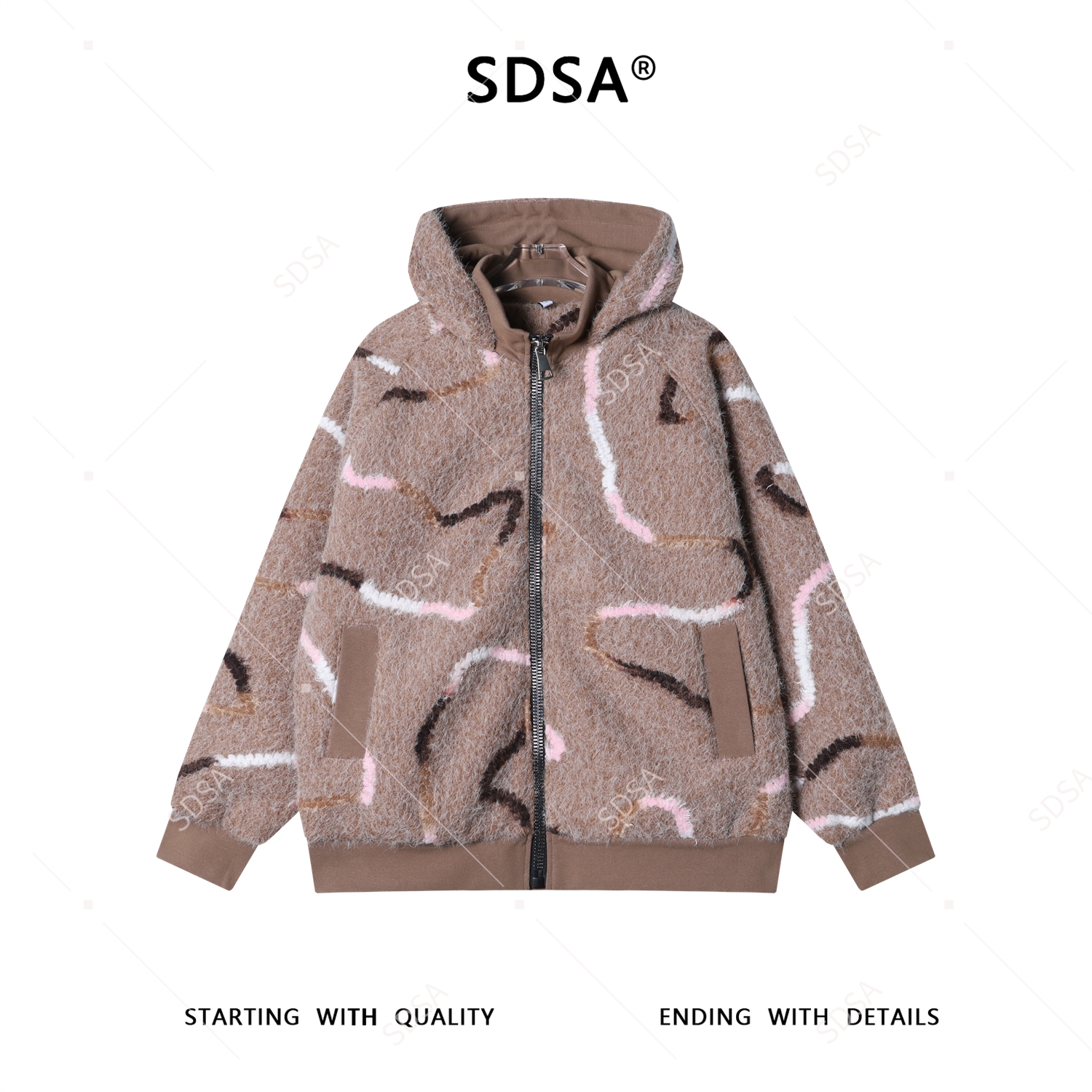 SDSA男士秋冬新款痞帅男装潮牌撞色线条拉链立领连帽卫衣绒毛百搭