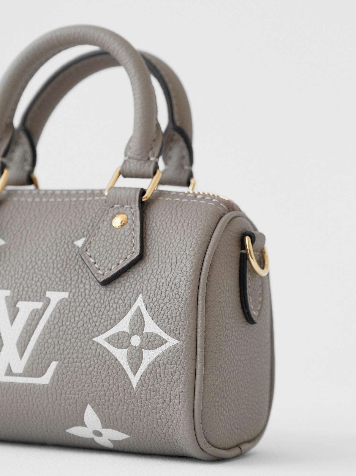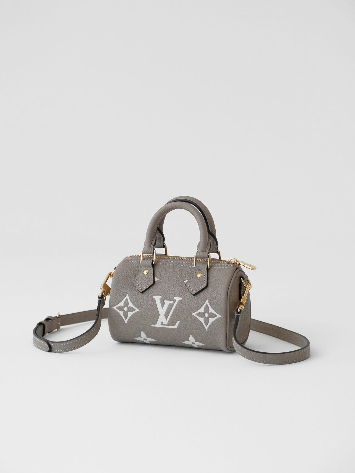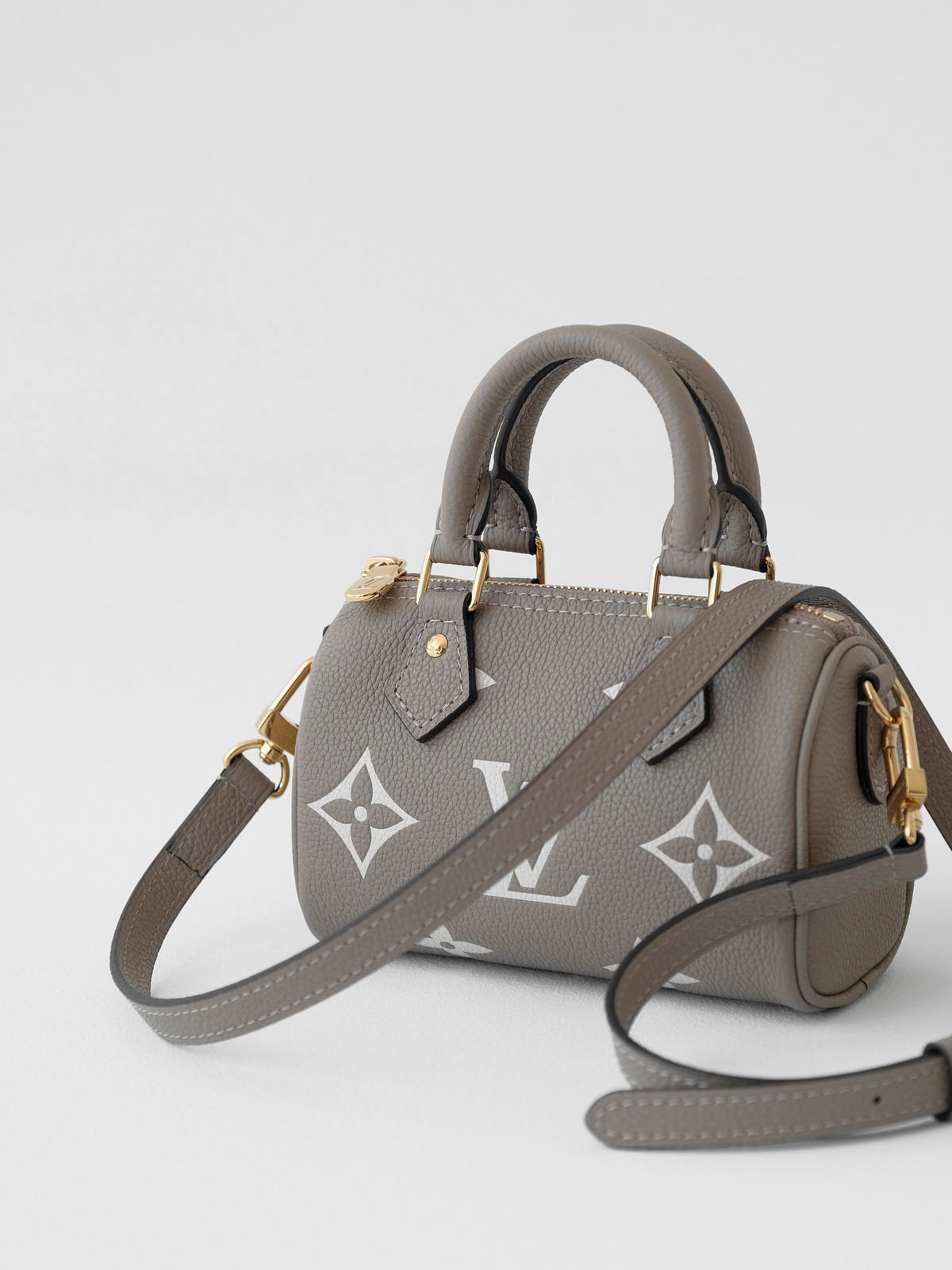本款 Nano Speedy 手袋浓缩路易威登Speedy手袋的经典构型,以 Monogram Empreinte软粒面皮革的双重色调烘托Monogram案。拉链开合实现稳妥收纳,巧用手柄和可拆卸并调节的肩带,多种造型可能。
