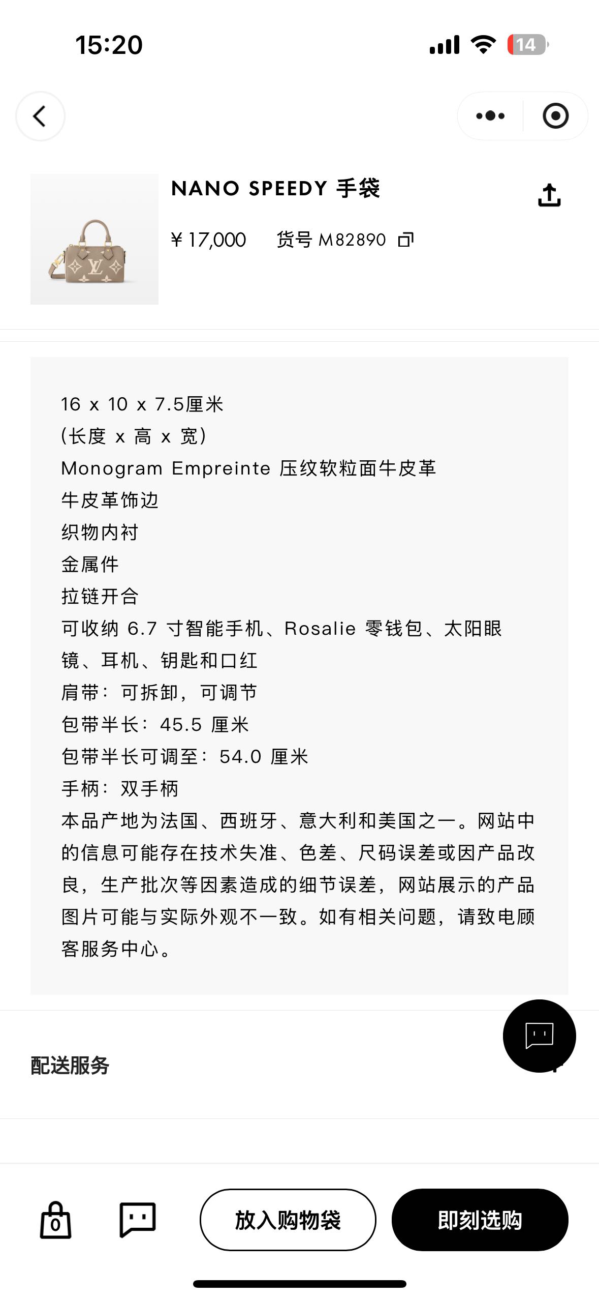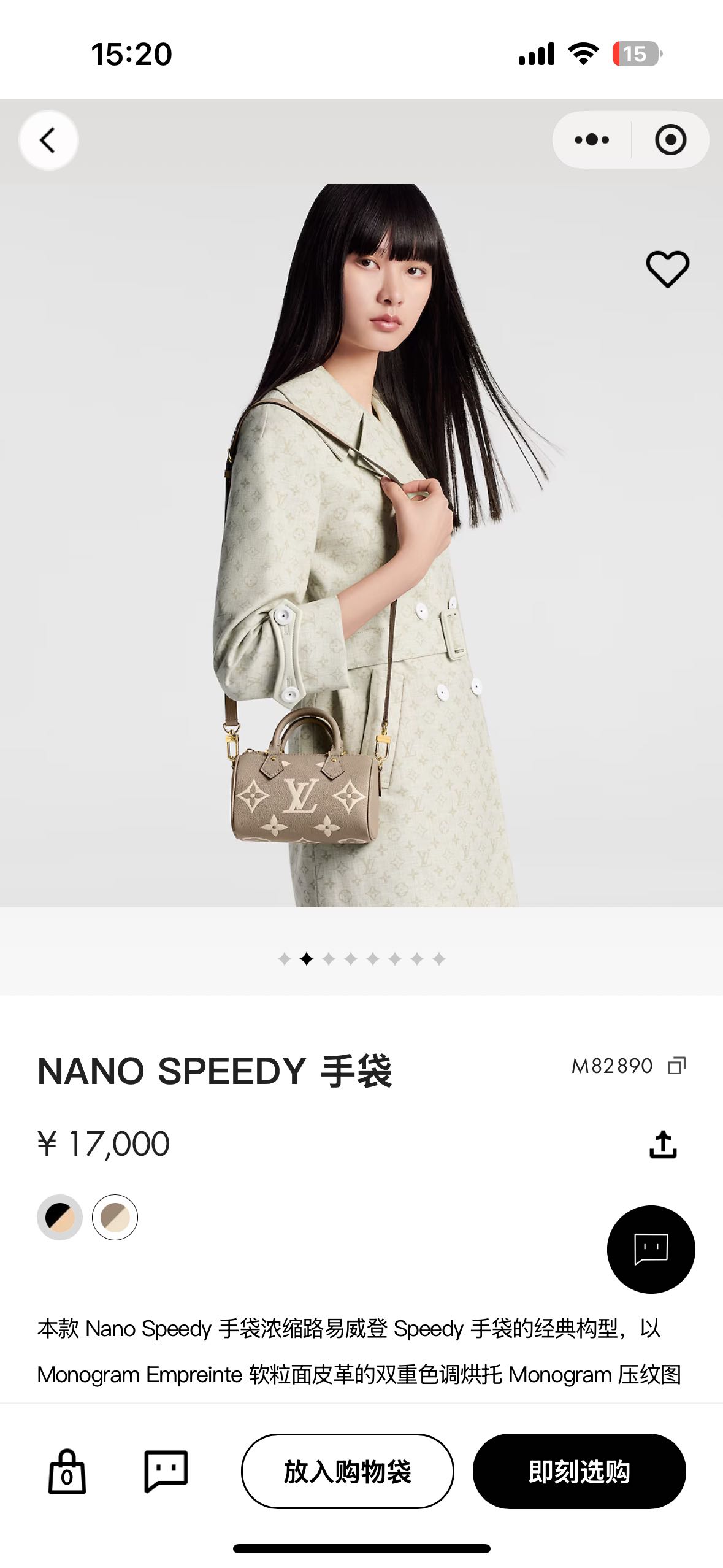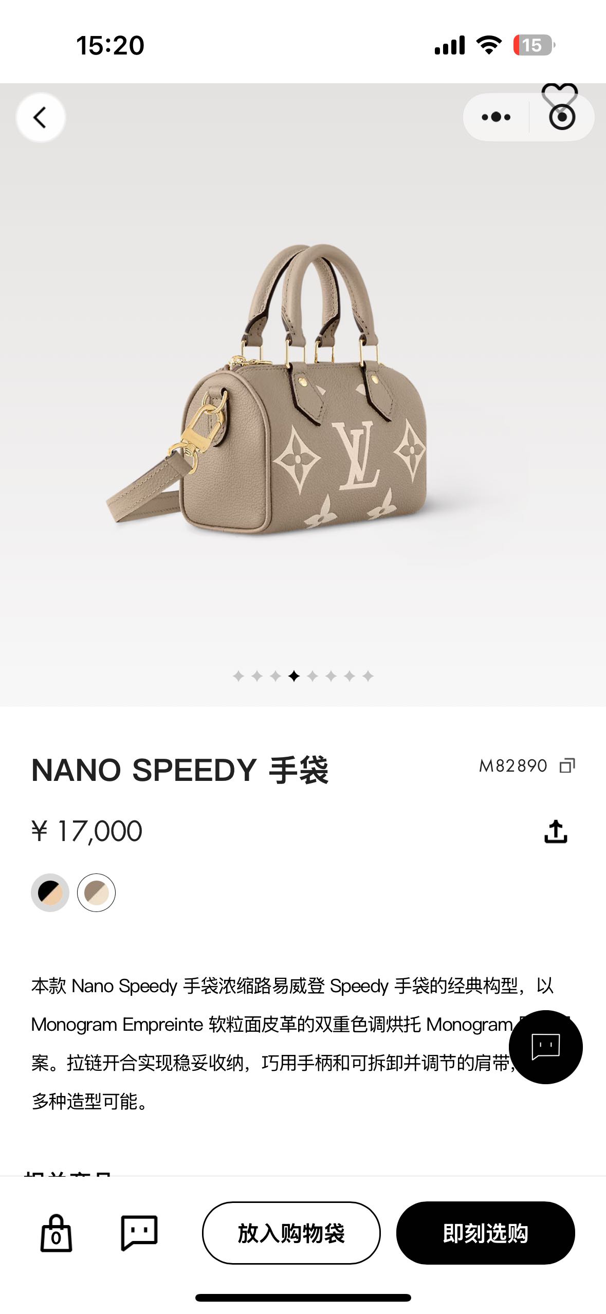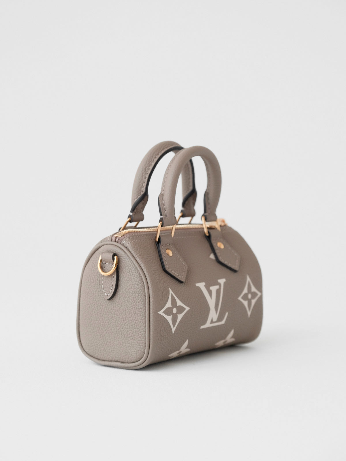 本款 Nano Speedy 手袋浓缩路易威登Speedy手袋的经典构型,以 Monogram Empreinte软粒面皮革的双重色调烘托Monogram案。拉链开合实现稳妥收纳,巧用手柄和可拆卸并调节的肩带,多种造型可能。
