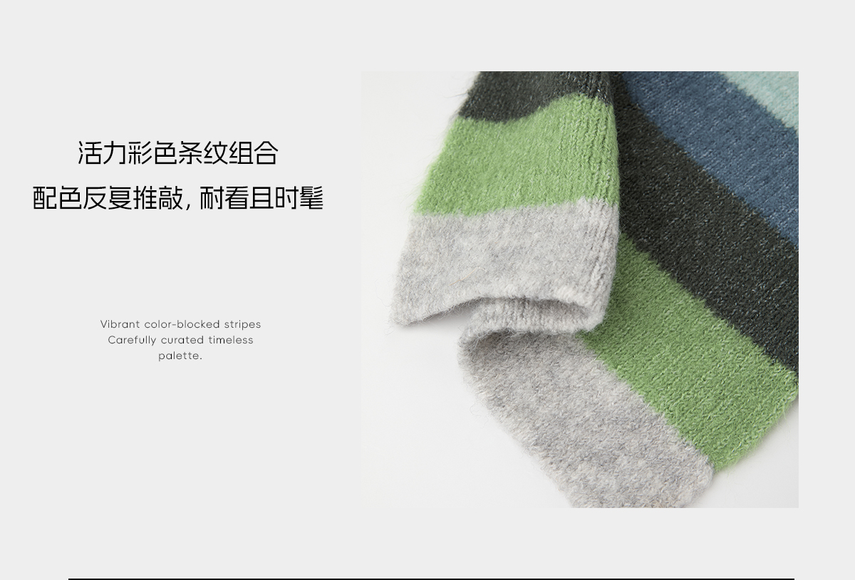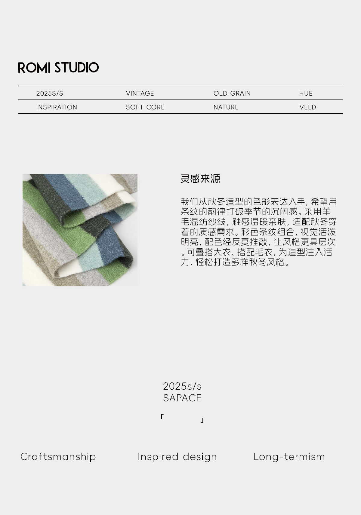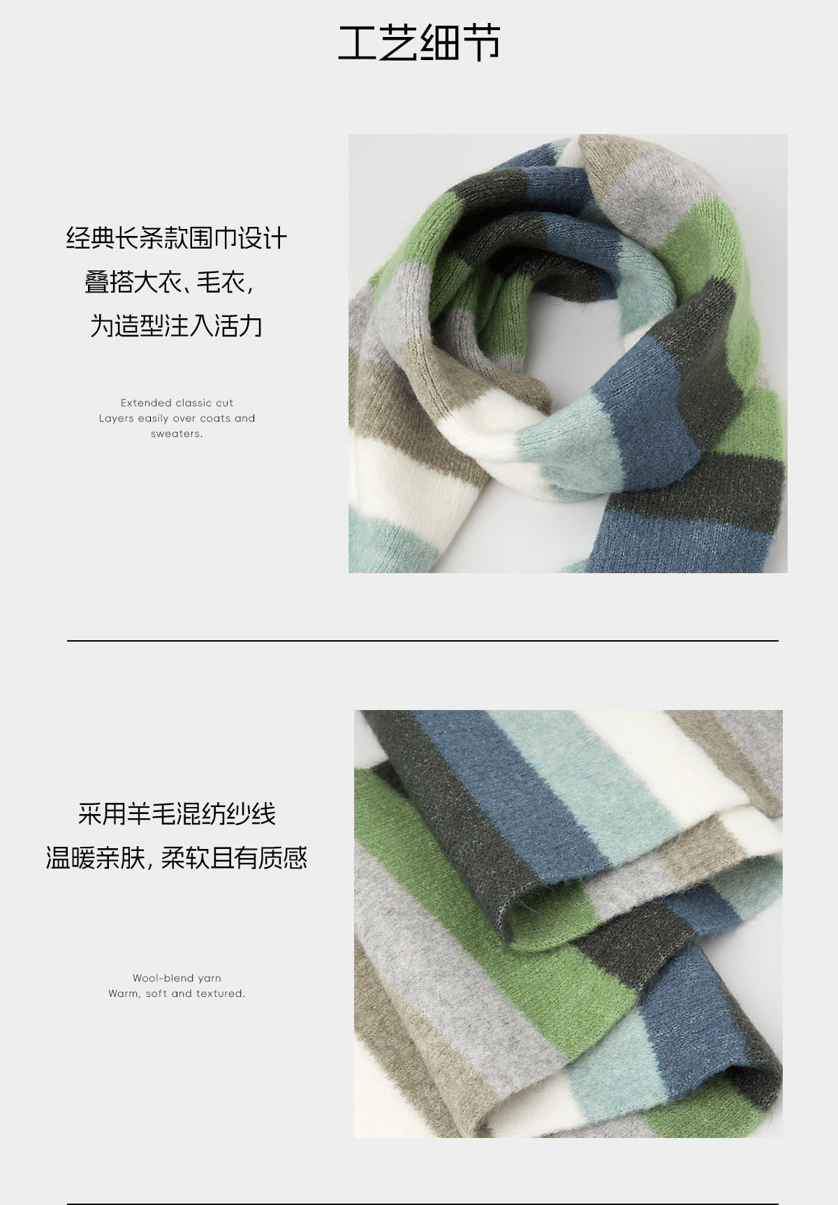 ROMI STUDIO“柔软不扎”羊毛撞色条纹围巾百搭针织围脖RWCAP06908