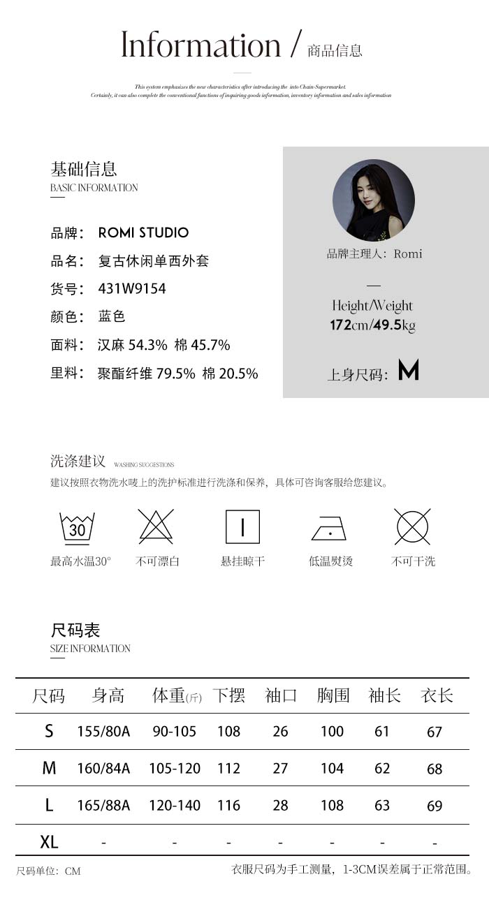 ROMI STUDIO “汉麻甄选” 汉麻棉混纺麻结肌理感西装外套 431W9154