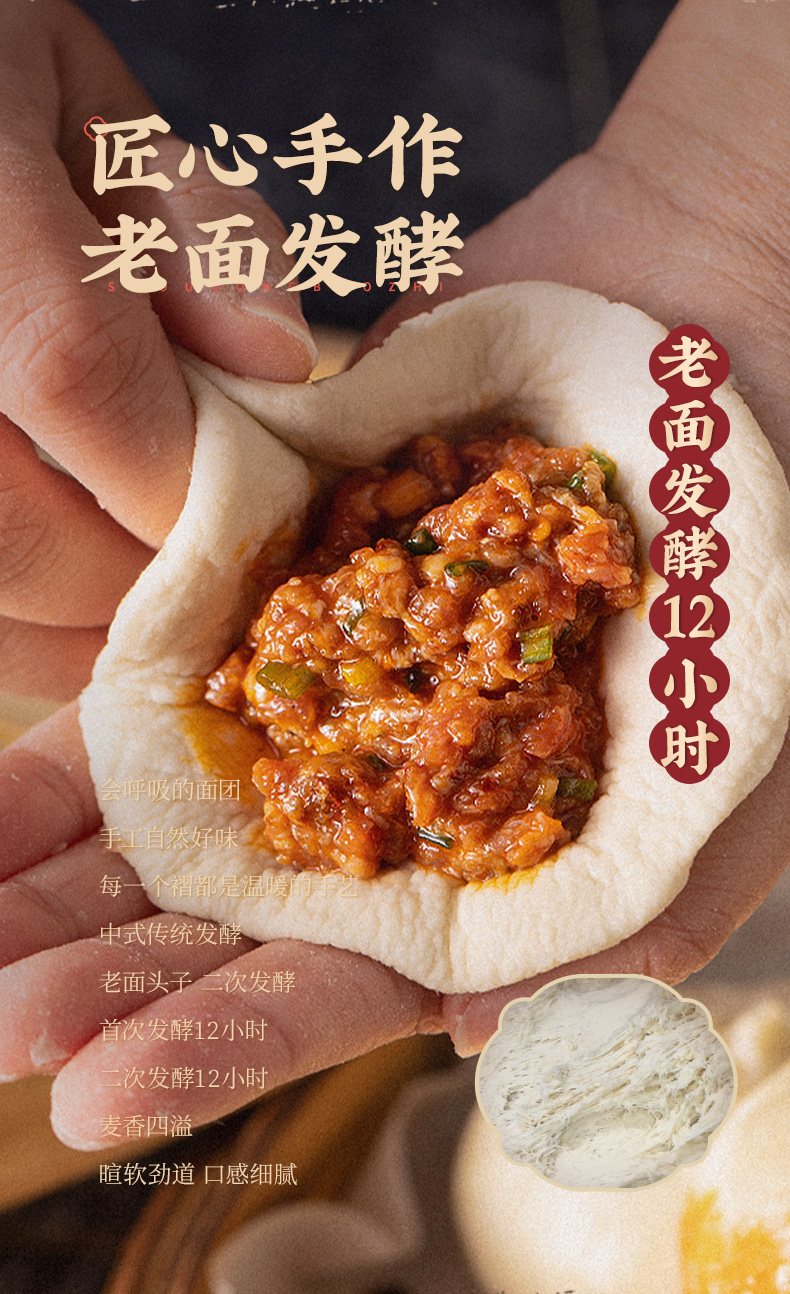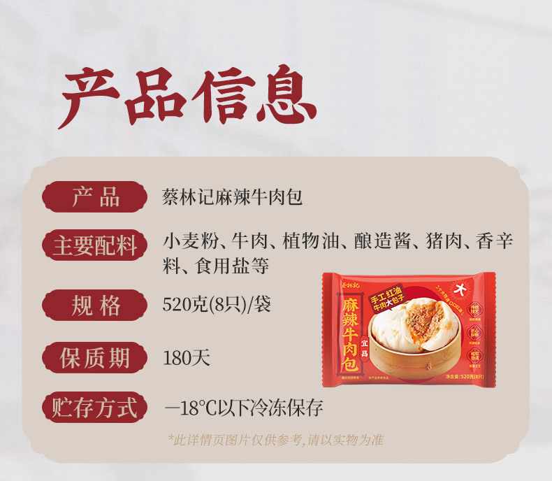 【冻品】蔡林记麻辣牛肉包520g×3袋速食早餐半成品手工鲜制包子 湖北直发
