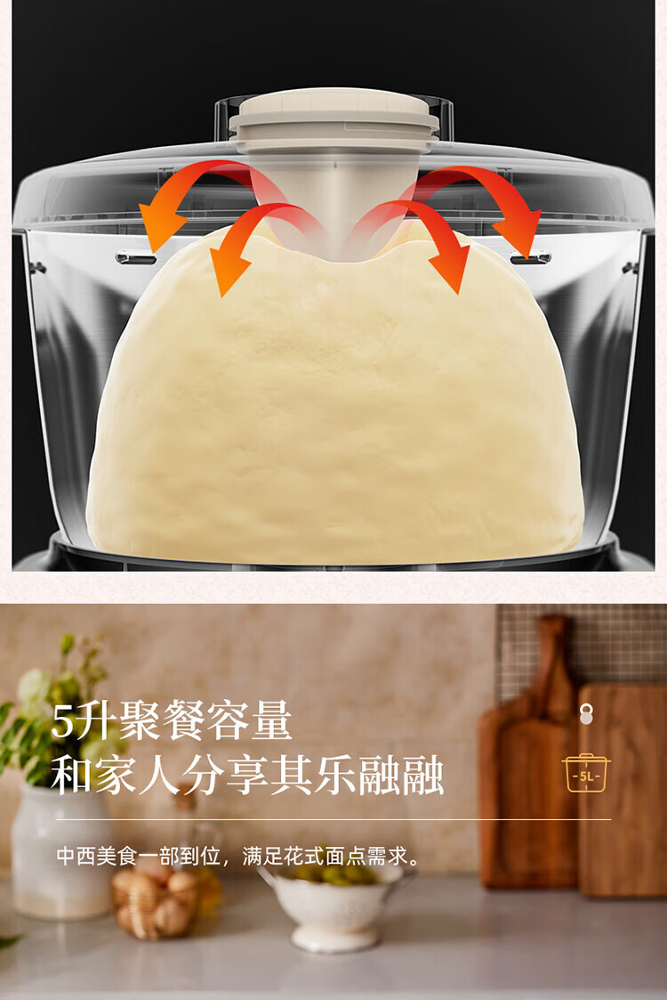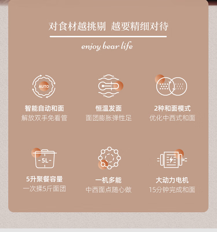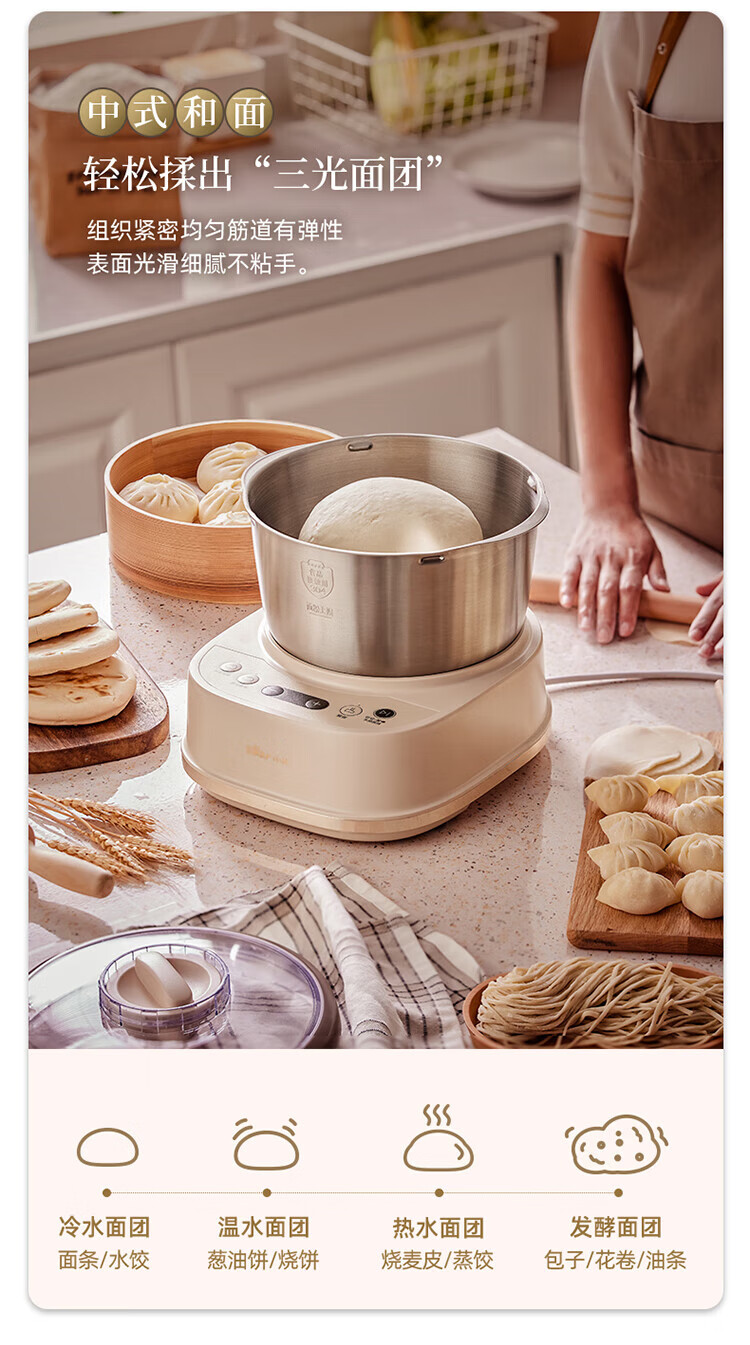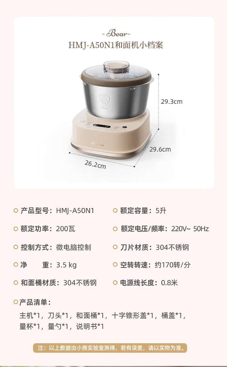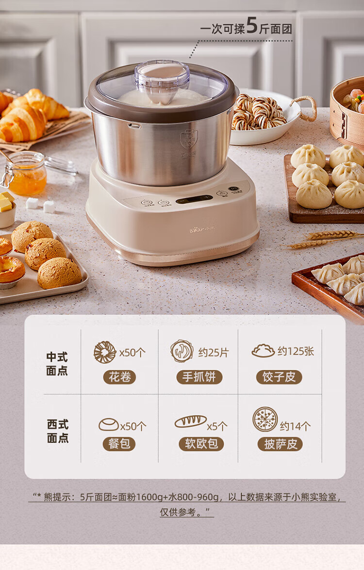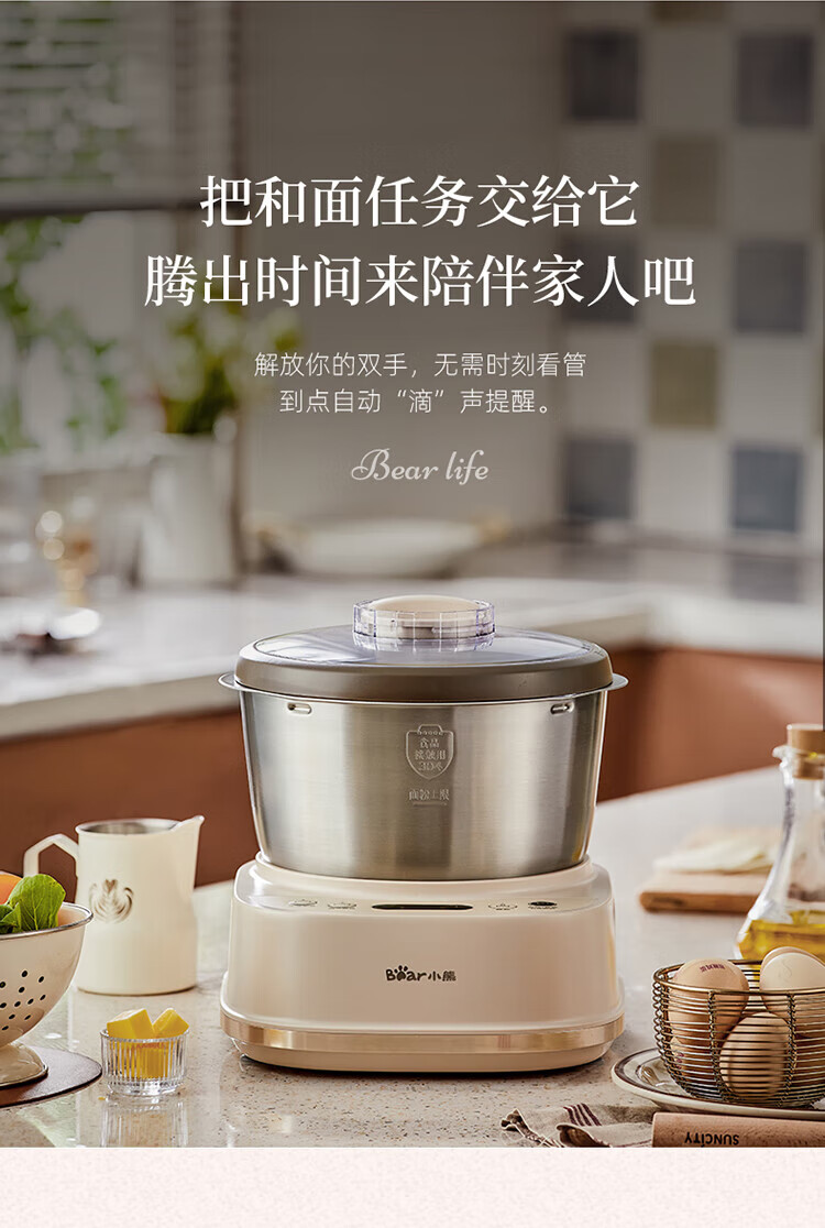 小熊(Bear) 和面机 发面机家用定时揉面机醒面全自动厨师机搅面器搅拌器 HMJ-A50N1 5L