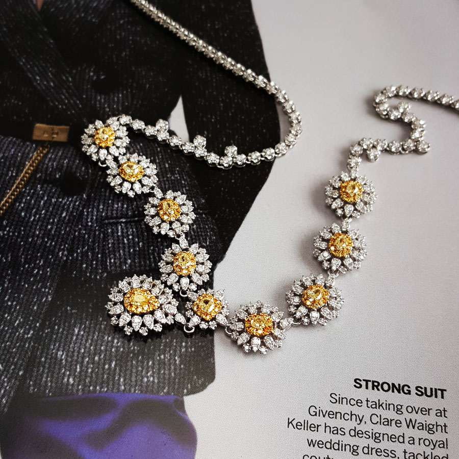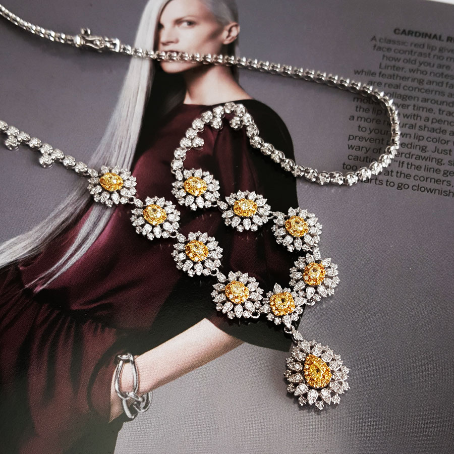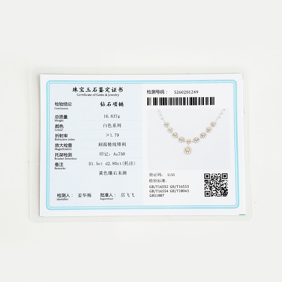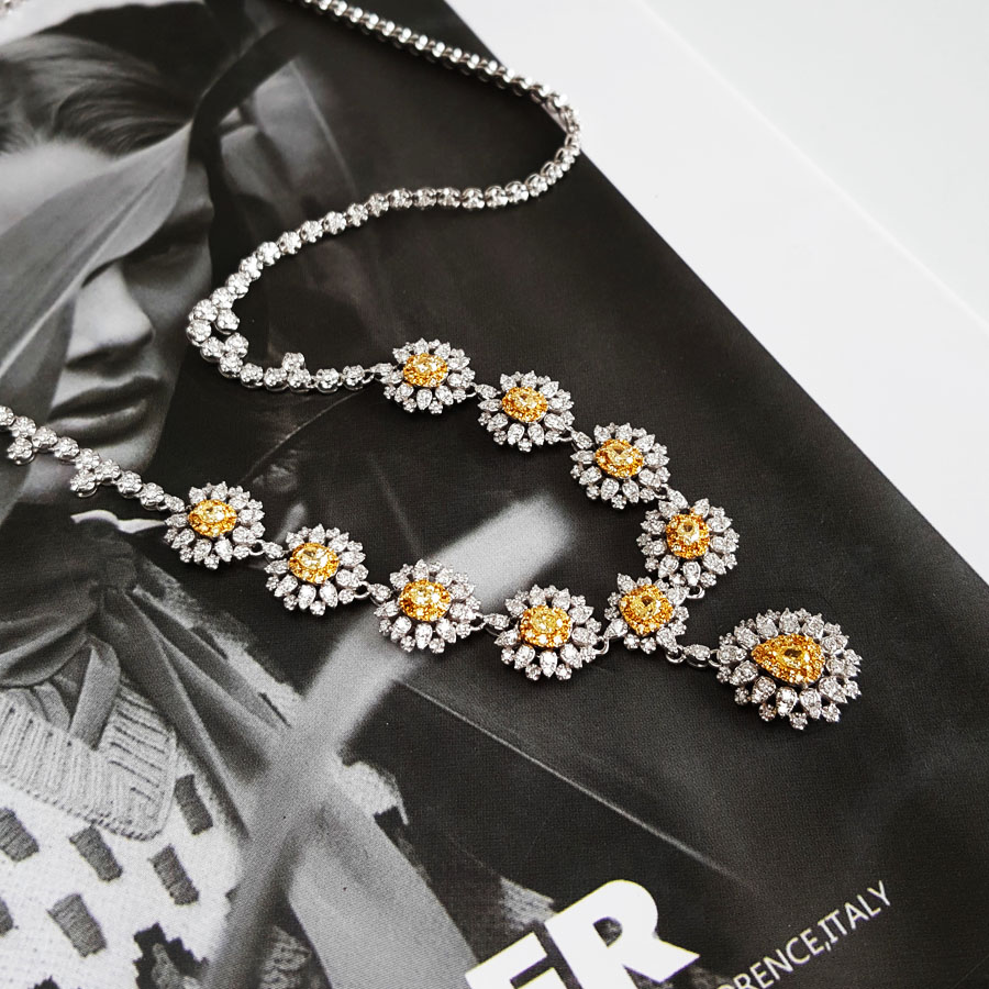 款式 | AU750收藏级白金豪镶太阳花造型设计师款4.3克拉钻石项链 |