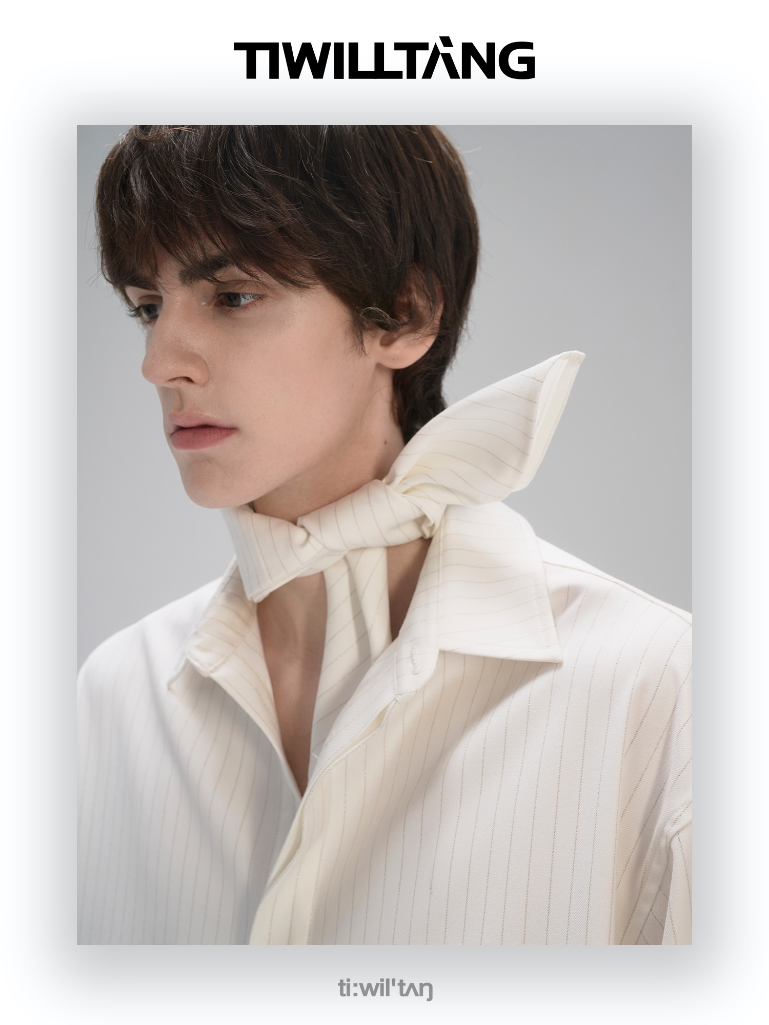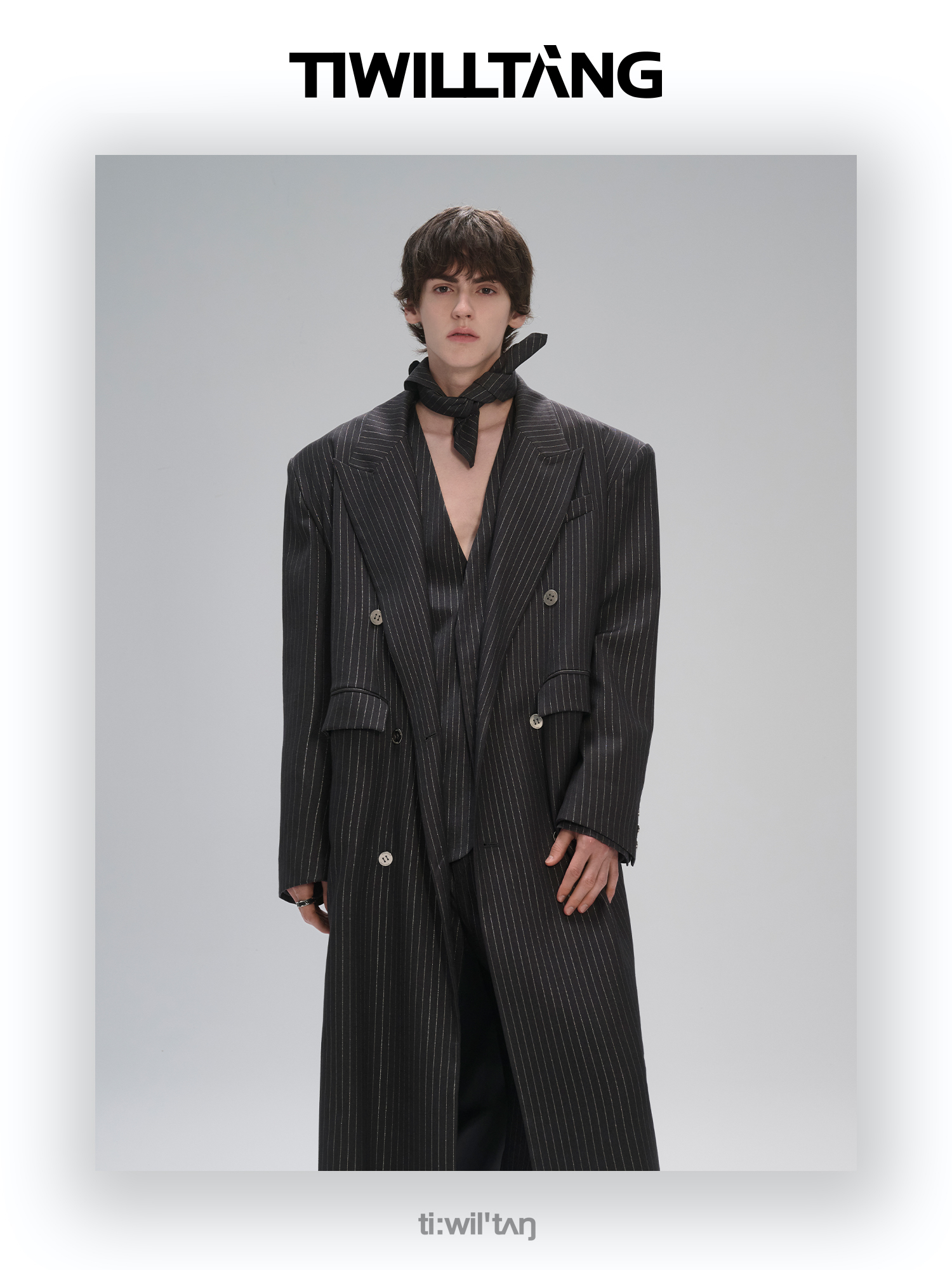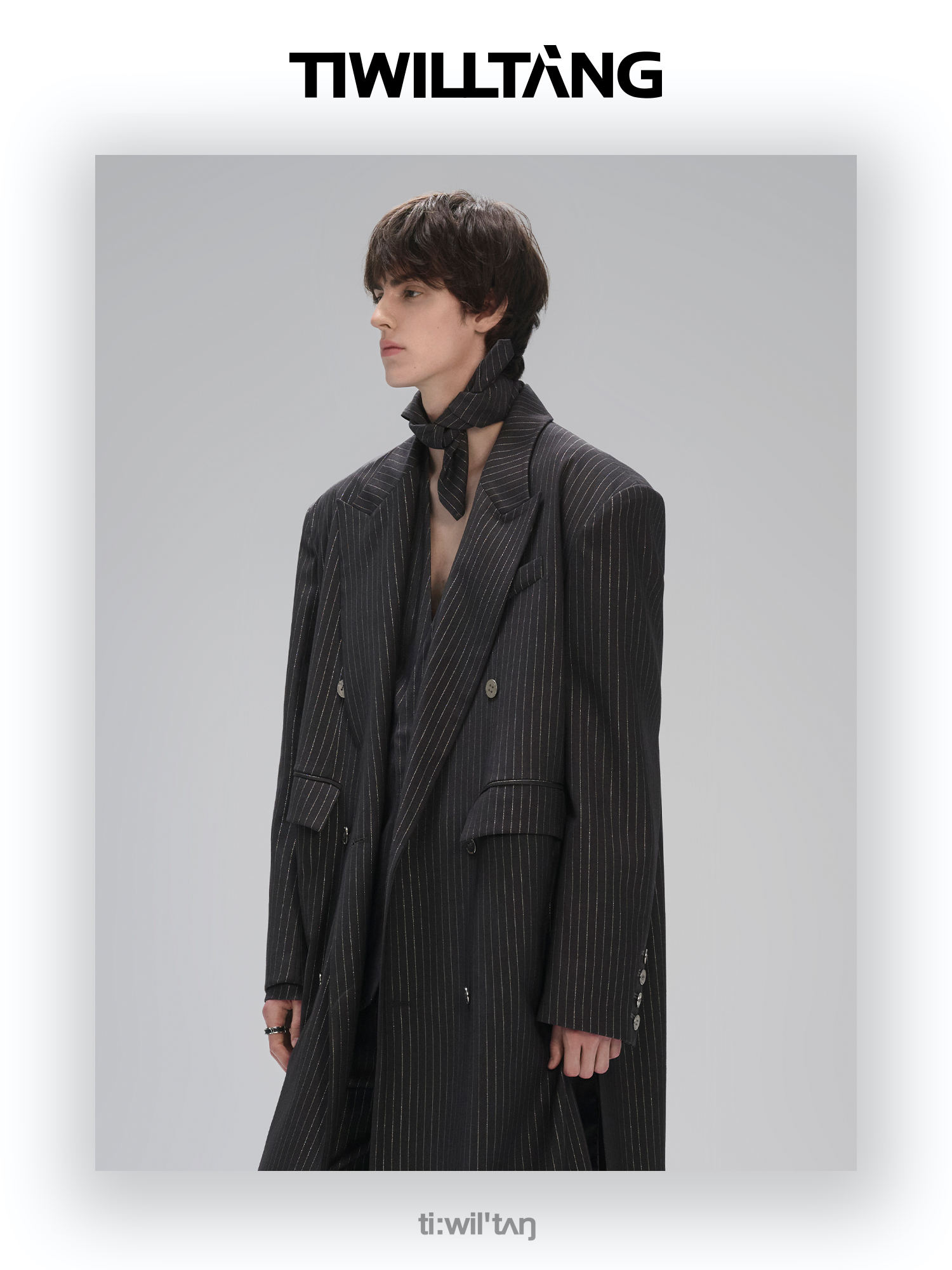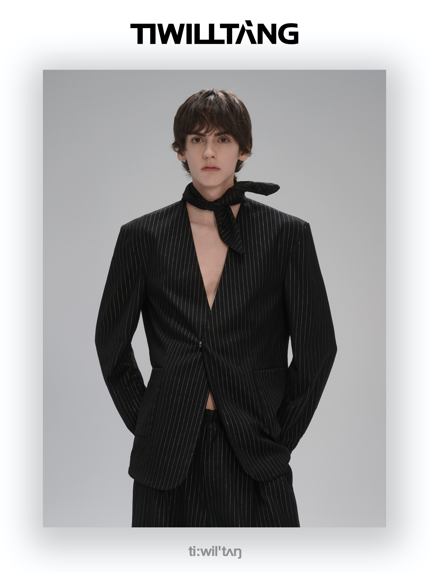 启世录TIWILLTANG“虚澜枕梦”低调奢华条纹贴袋无领西装套装