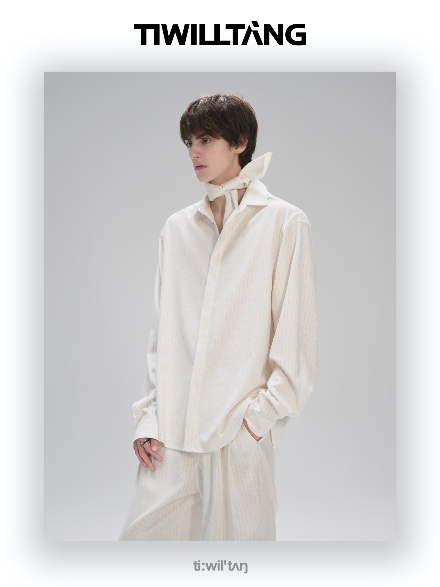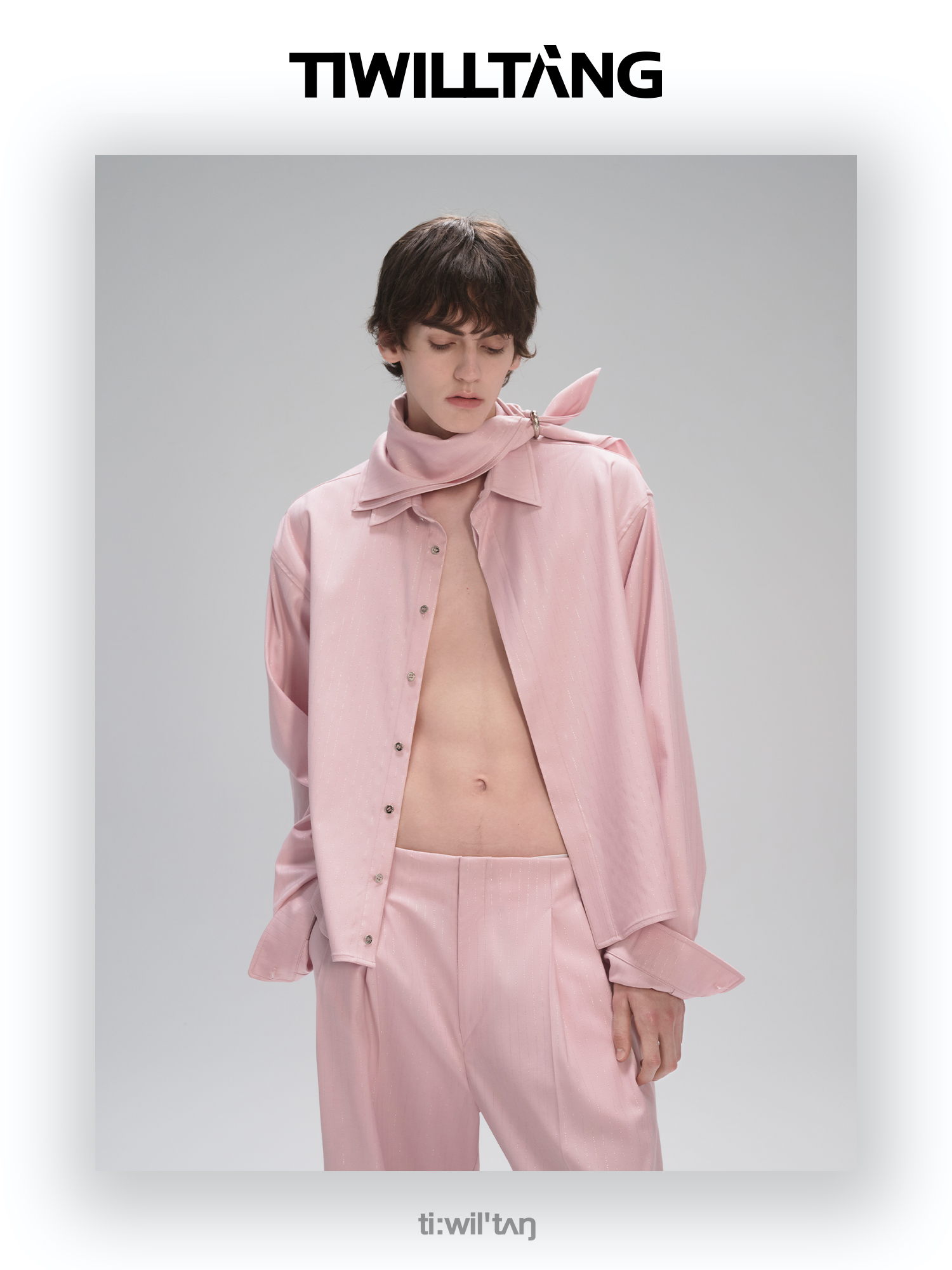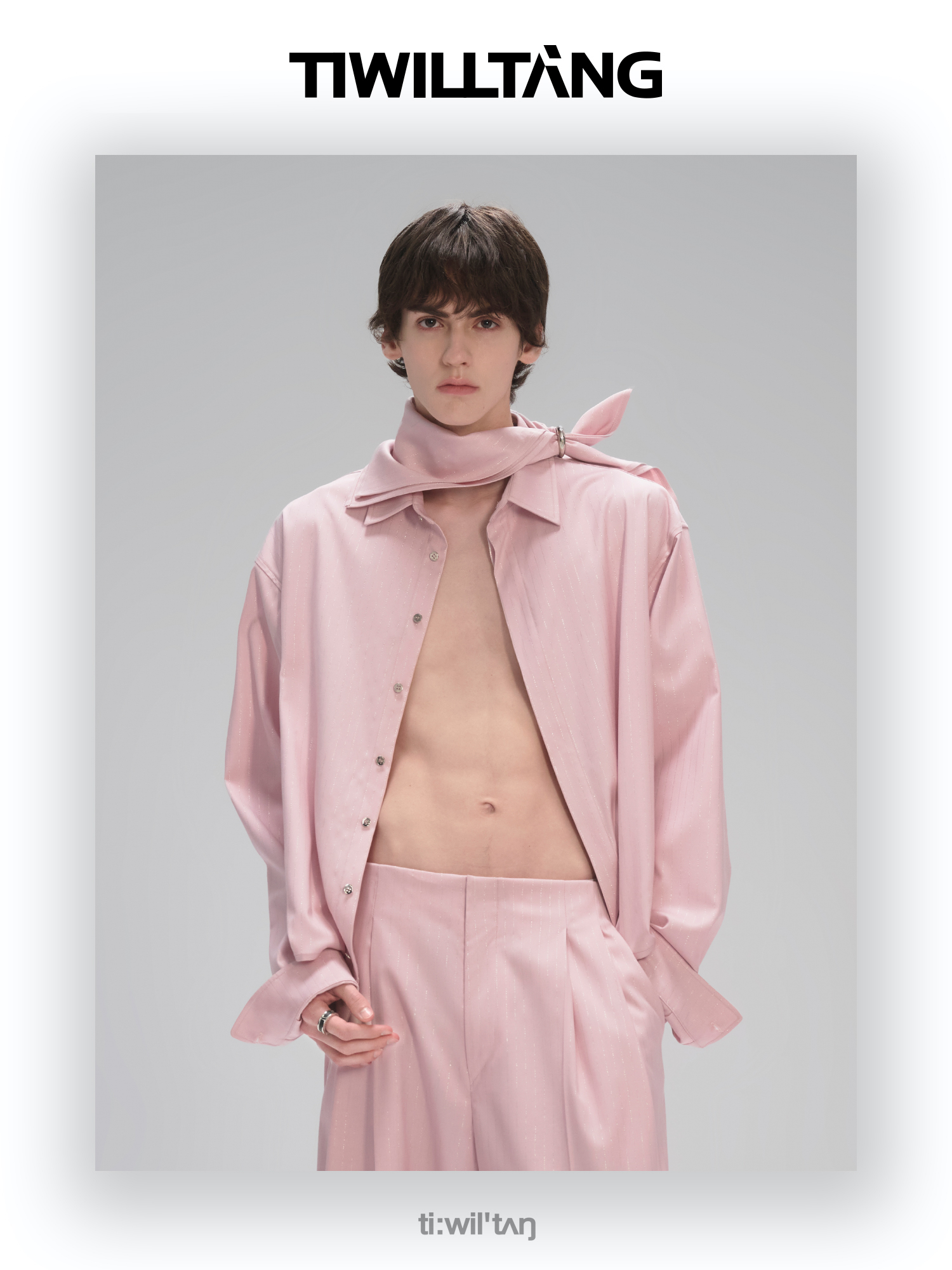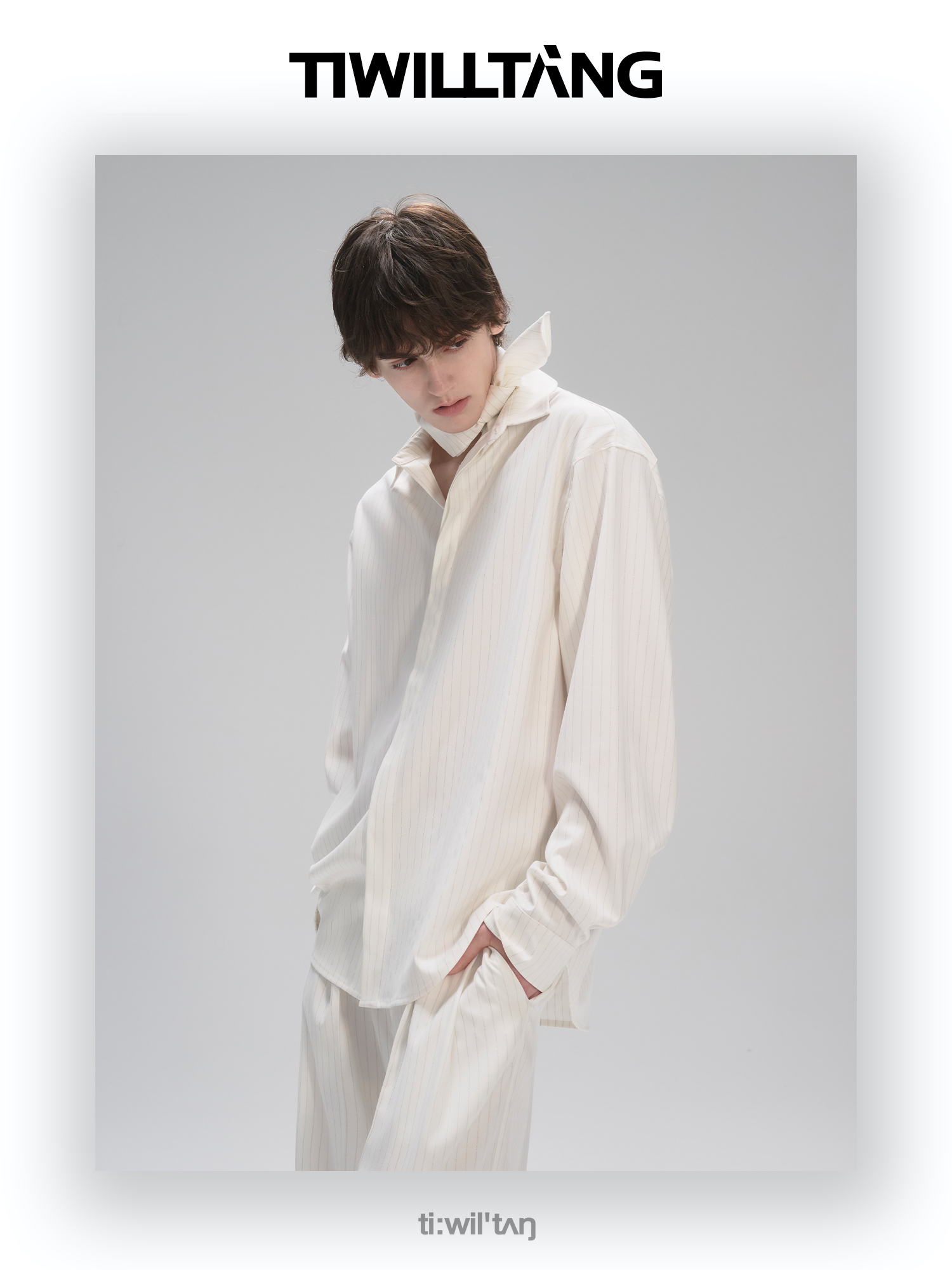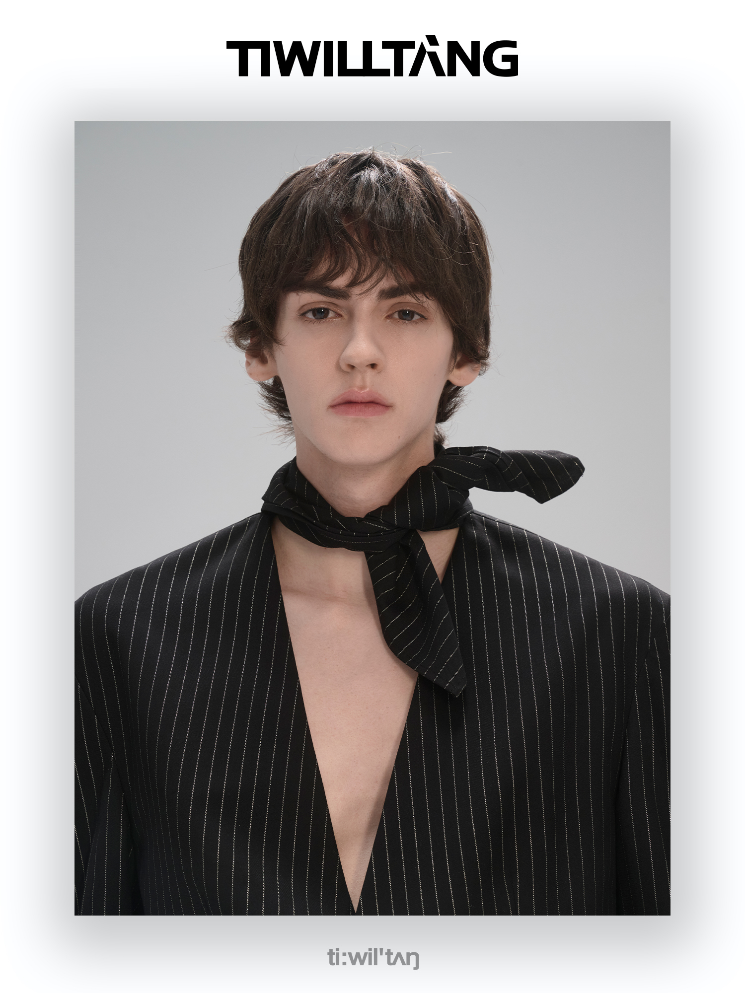 启世录TIWILLTANG“虚澜枕梦”低调奢华条纹贴袋无领西装套装