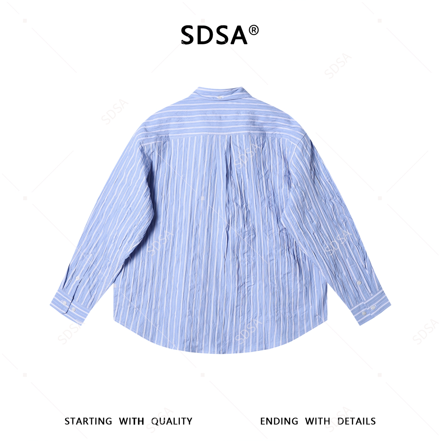 SDSA男装2026新款高贵轻奢韩版简约条纹褶皱衬衫宽松休闲百搭衬衣