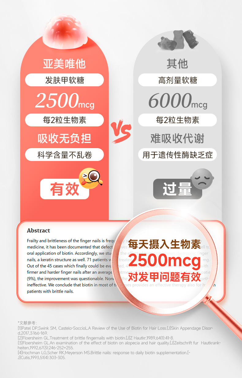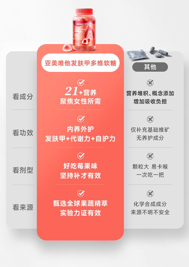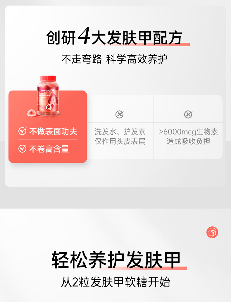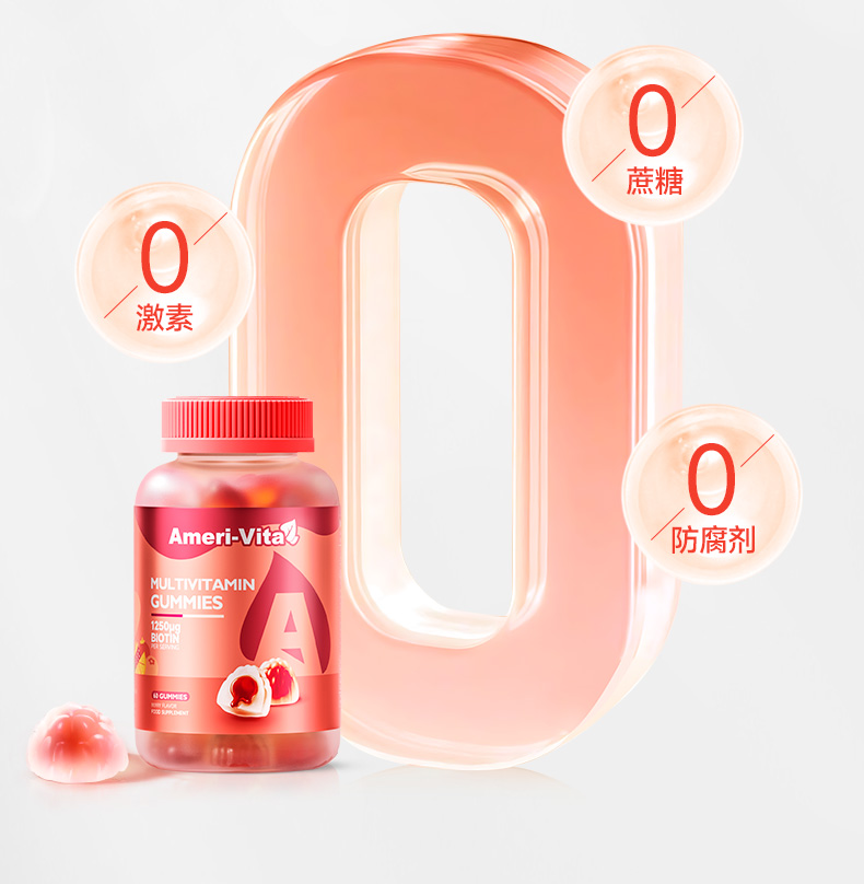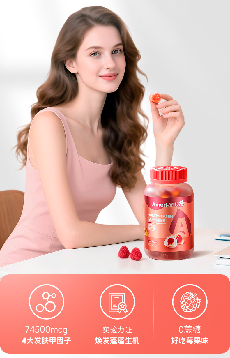 [AMeri vita]亚美唯他 养发软糖 60粒/瓶 生物素防脱发护发肤甲女性VC多维复合维生素