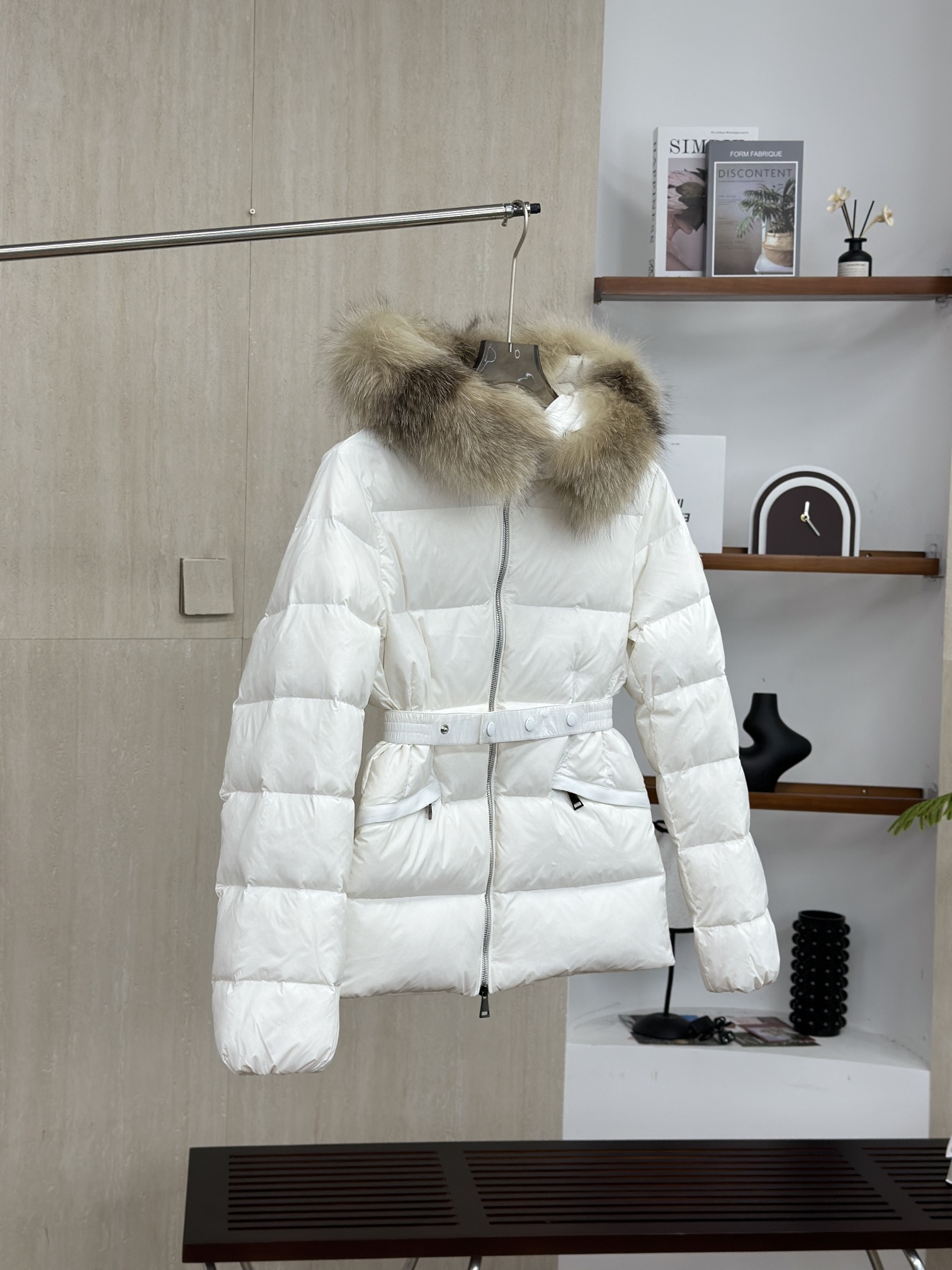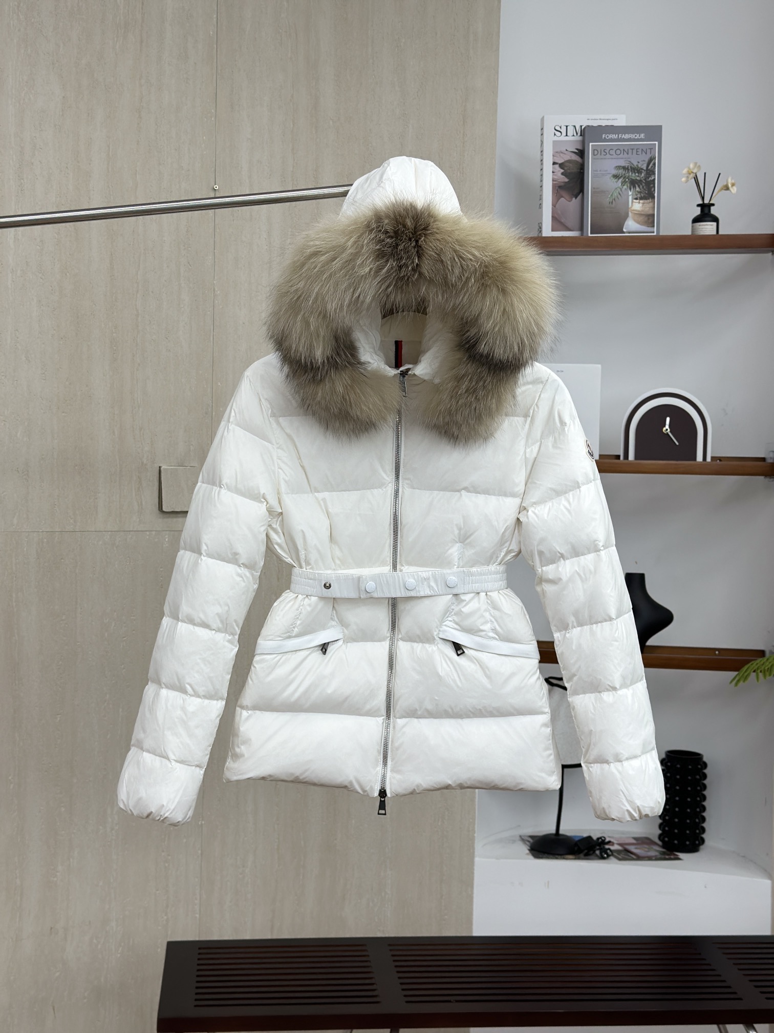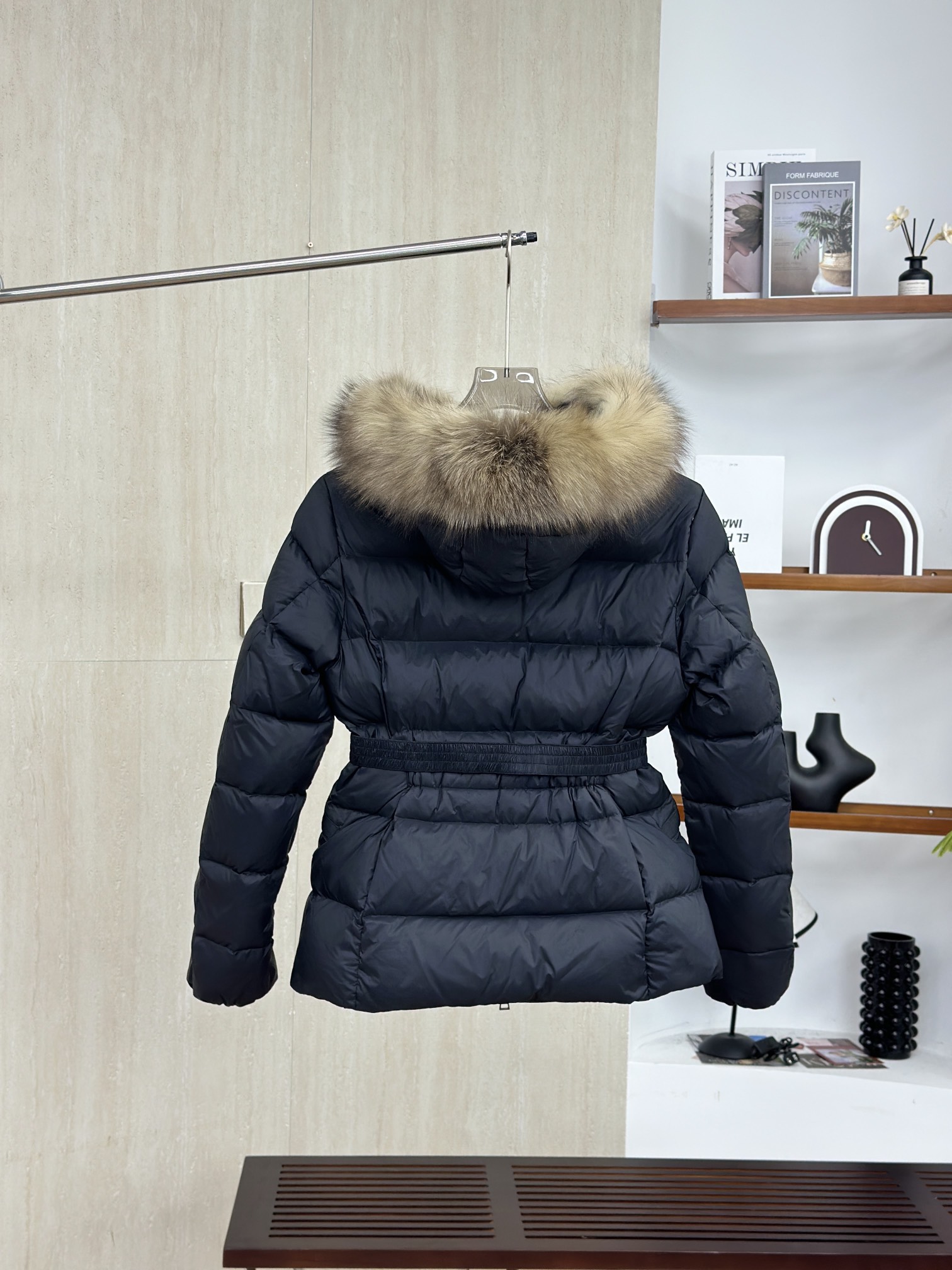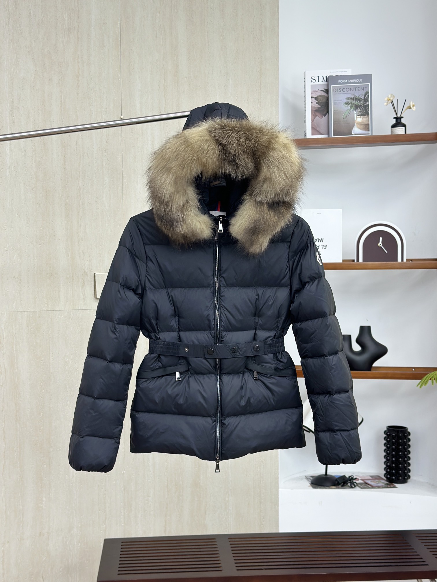 Moncler/蒙口Boed可拆卸狐狸毛领弹力腰带轻质尼龙收腰羽绒服 超大帽子,超大狐狸毛领,100%进口芬兰狐狸🦊毛领,非常非常上档次,毛针根根分明,茂密蓬松,超高充绒量,刚好的长度设计款,超级无敌显瘦,在北方寒冷冬季,太需要了!保暖简约又能穿出小蛮腰,而且版型设计永远不会过时,穿的更轻松舒适,保暖度超及好,足足的暖和,足足的温度,非常显瘦显腰线,没有丝毫的臃肿感,90%白鹅绒,充绒量接近300g,羽绒充足蓬松度好,不会钻绒!版型真的太棒了,拉长身材比例,显高显瘦,双拉链头,精致五金,连帽的设计,毛领可拆,精致的走线做工,更彰显品质,真正的好货,无论走到哪里都会受到追捧!强烈推荐!