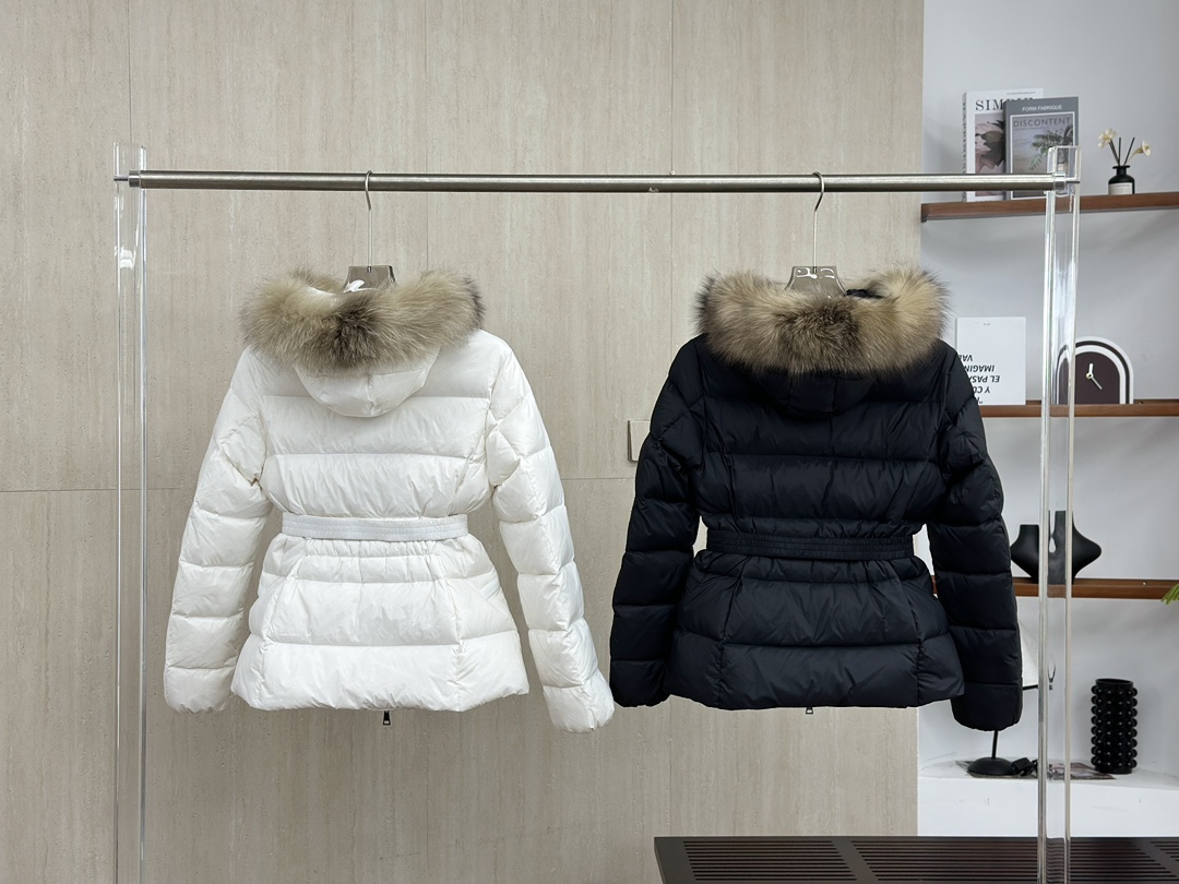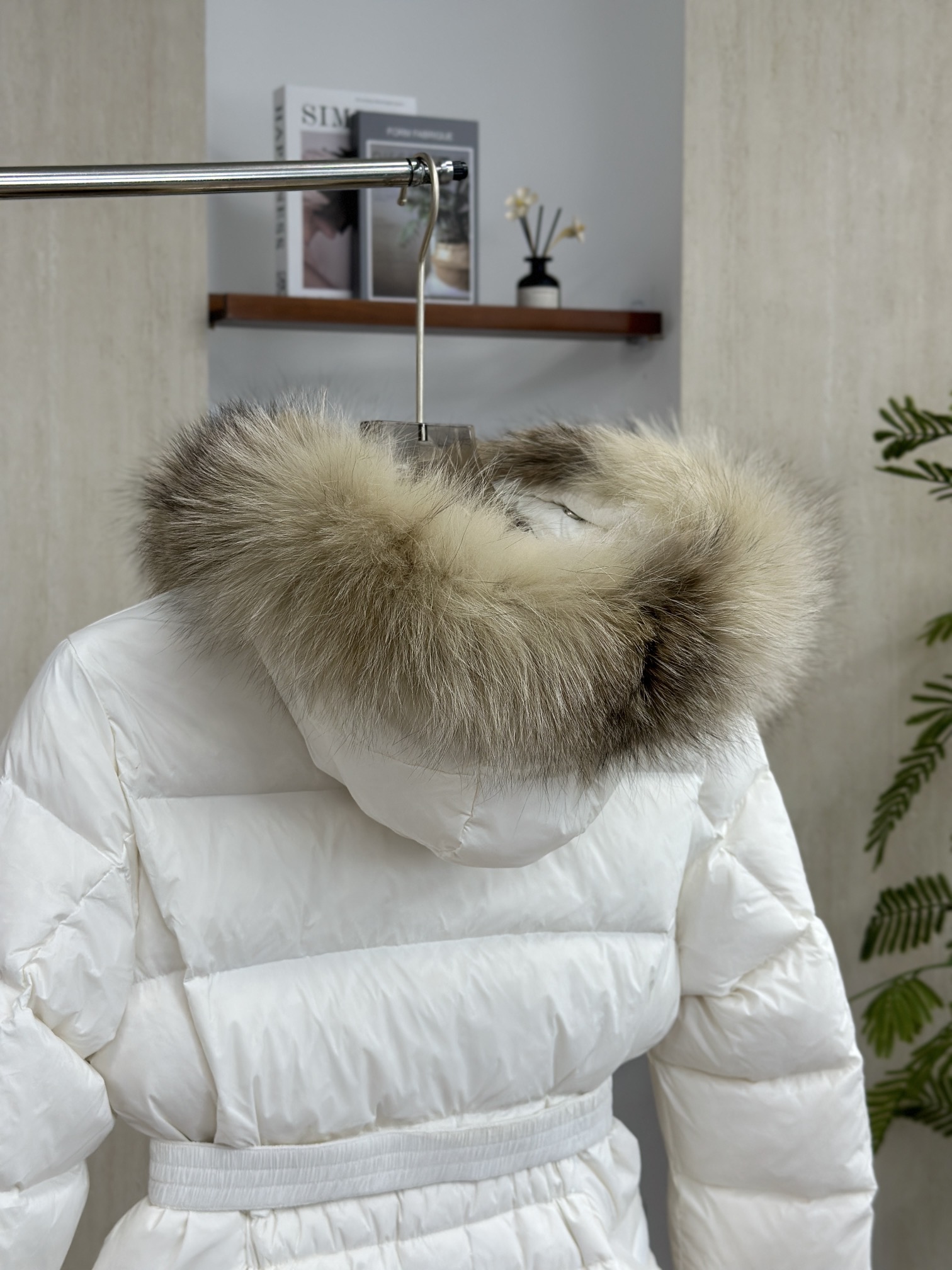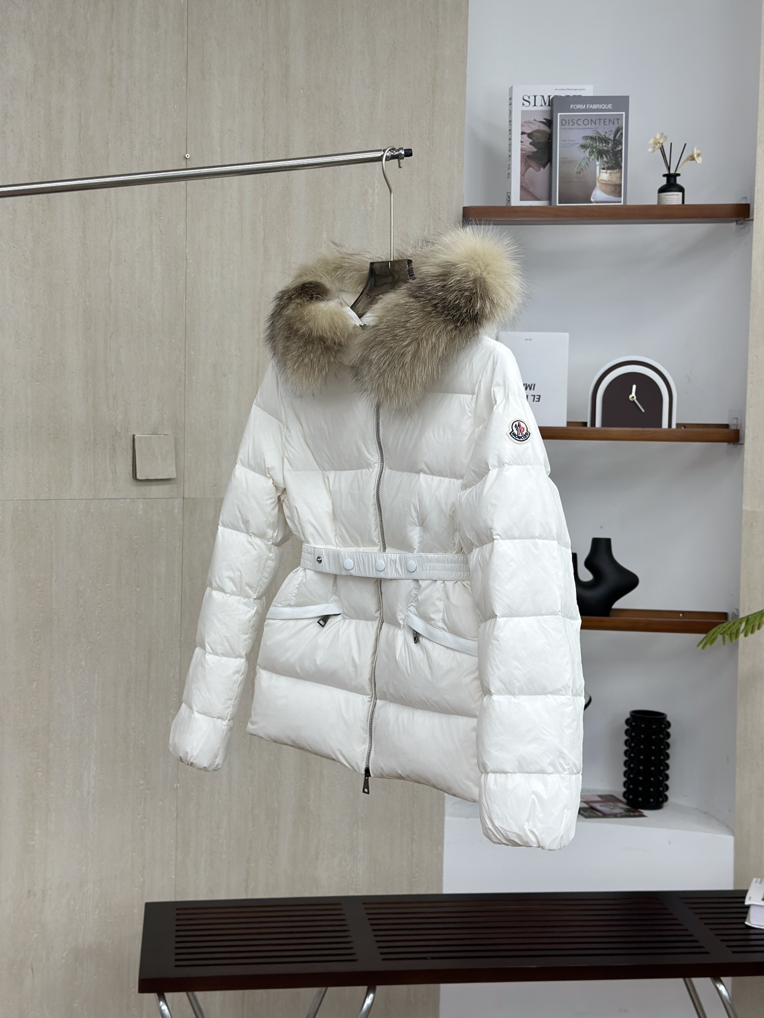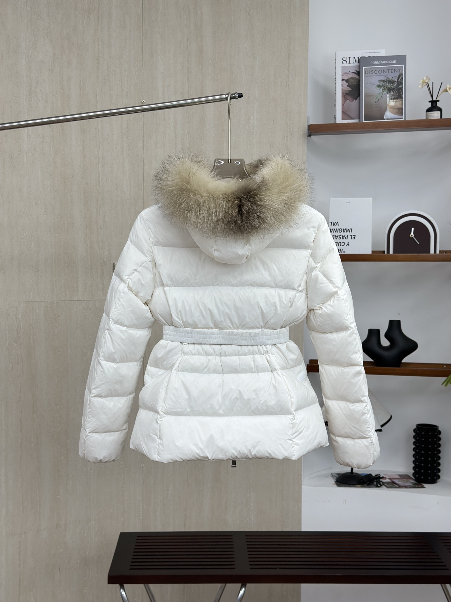 Moncler/蒙口Boed可拆卸狐狸毛领弹力腰带轻质尼龙收腰羽绒服 超大帽子,超大狐狸毛领,100%进口芬兰狐狸🦊毛领,非常非常上档次,毛针根根分明,茂密蓬松,超高充绒量,刚好的长度设计款,超级无敌显瘦,在北方寒冷冬季,太需要了!保暖简约又能穿出小蛮腰,而且版型设计永远不会过时,穿的更轻松舒适,保暖度超及好,足足的暖和,足足的温度,非常显瘦显腰线,没有丝毫的臃肿感,90%白鹅绒,充绒量接近300g,羽绒充足蓬松度好,不会钻绒!版型真的太棒了,拉长身材比例,显高显瘦,双拉链头,精致五金,连帽的设计,毛领可拆,精致的走线做工,更彰显品质,真正的好货,无论走到哪里都会受到追捧!强烈推荐!