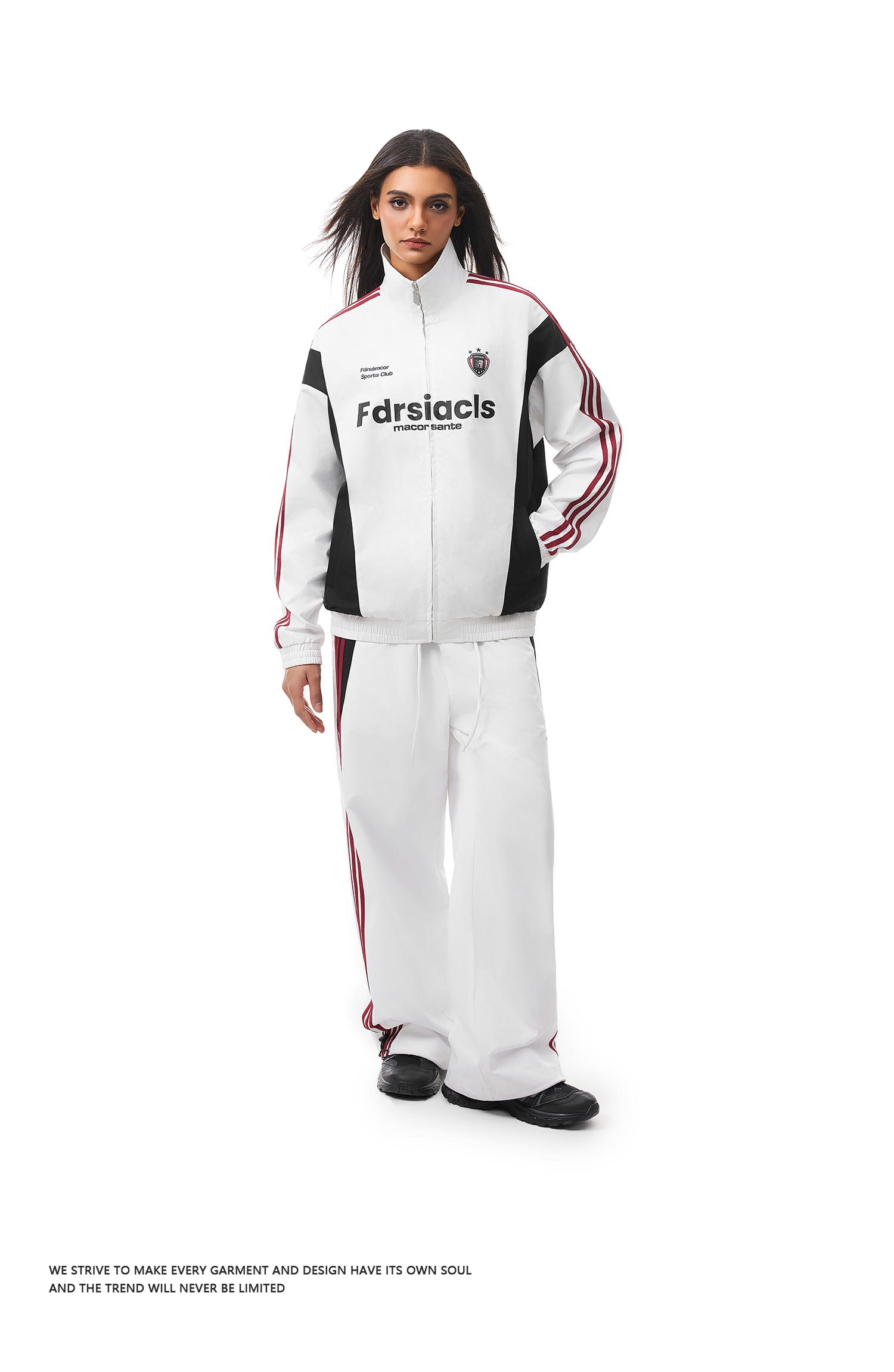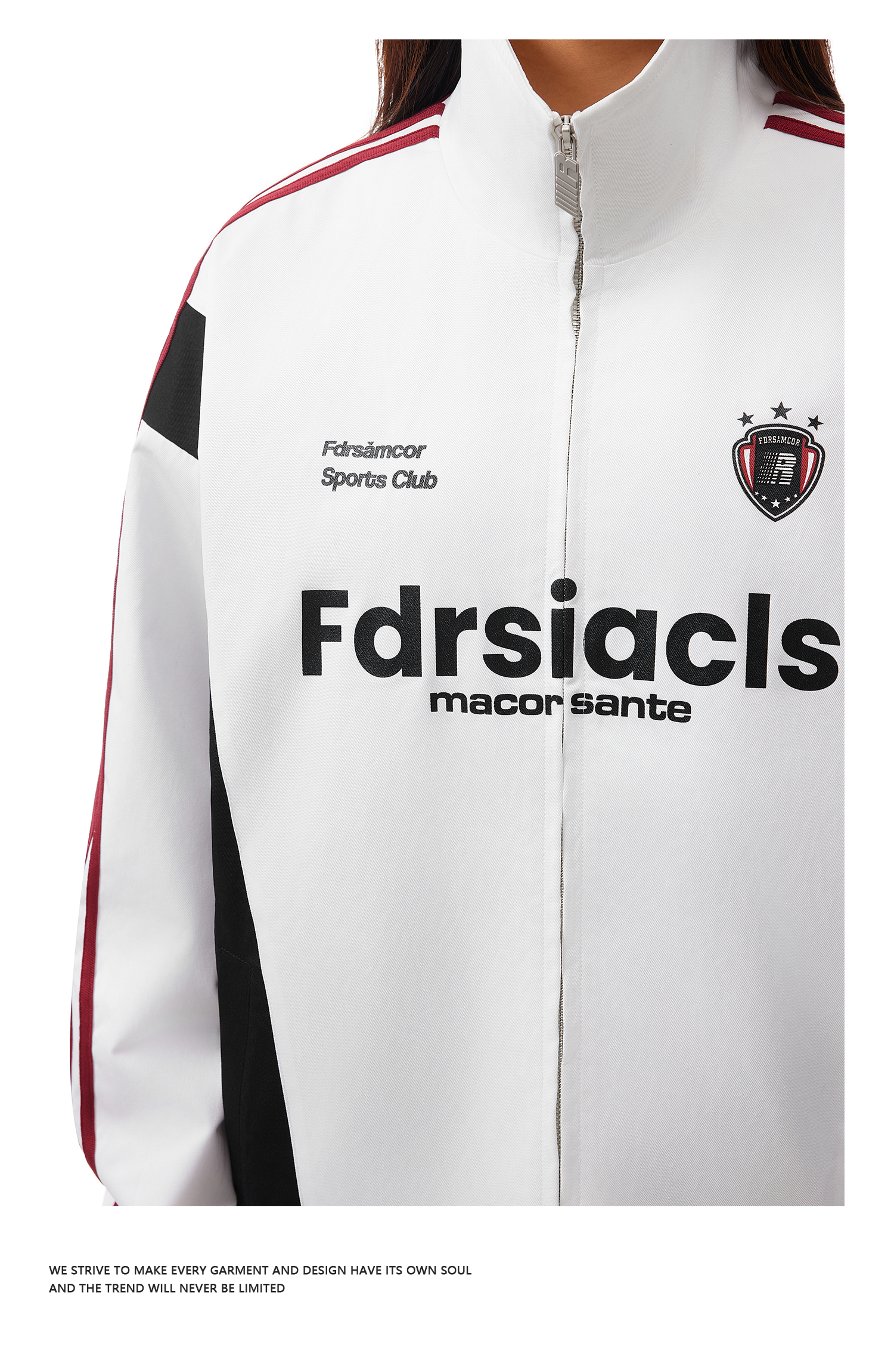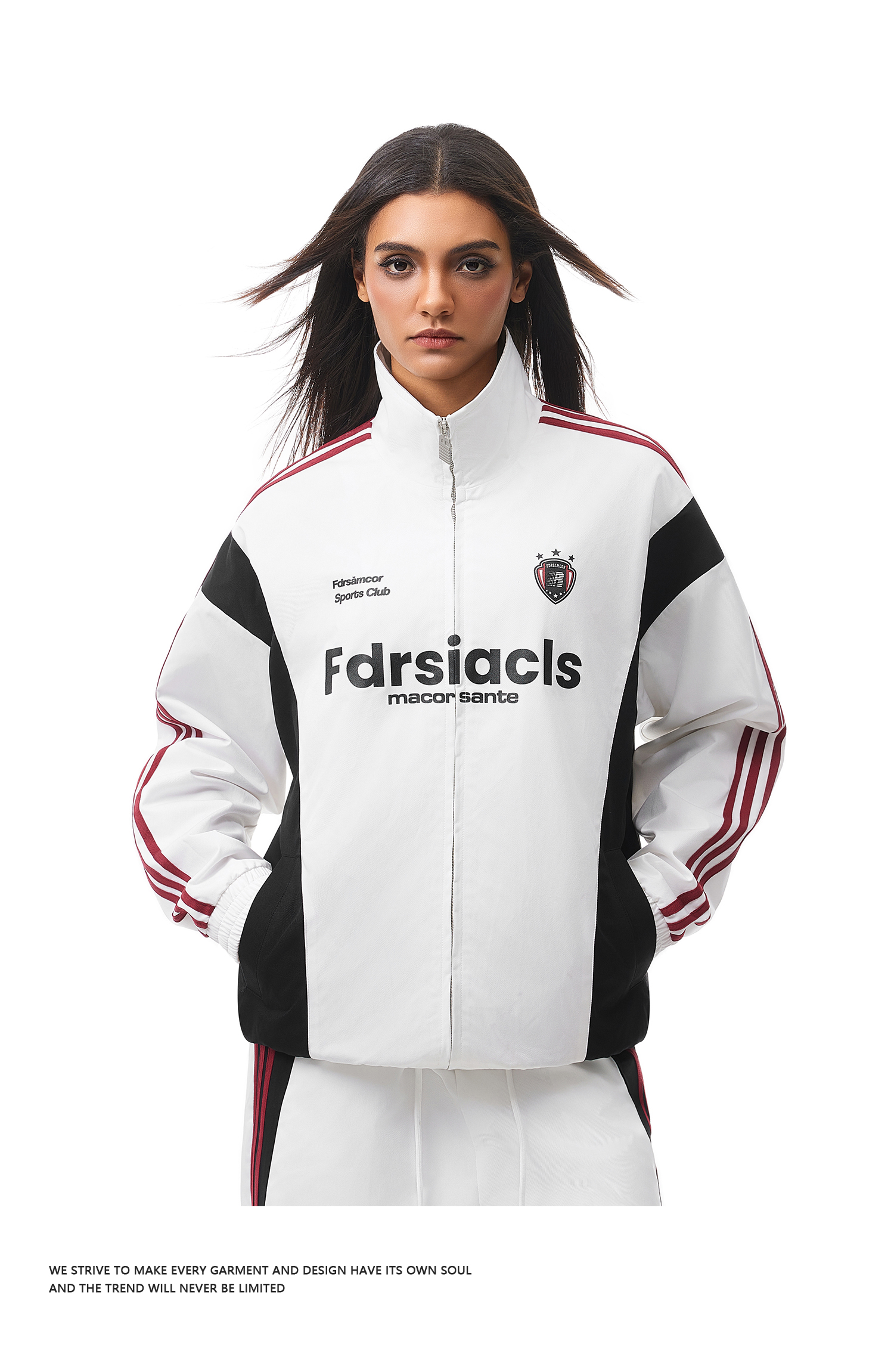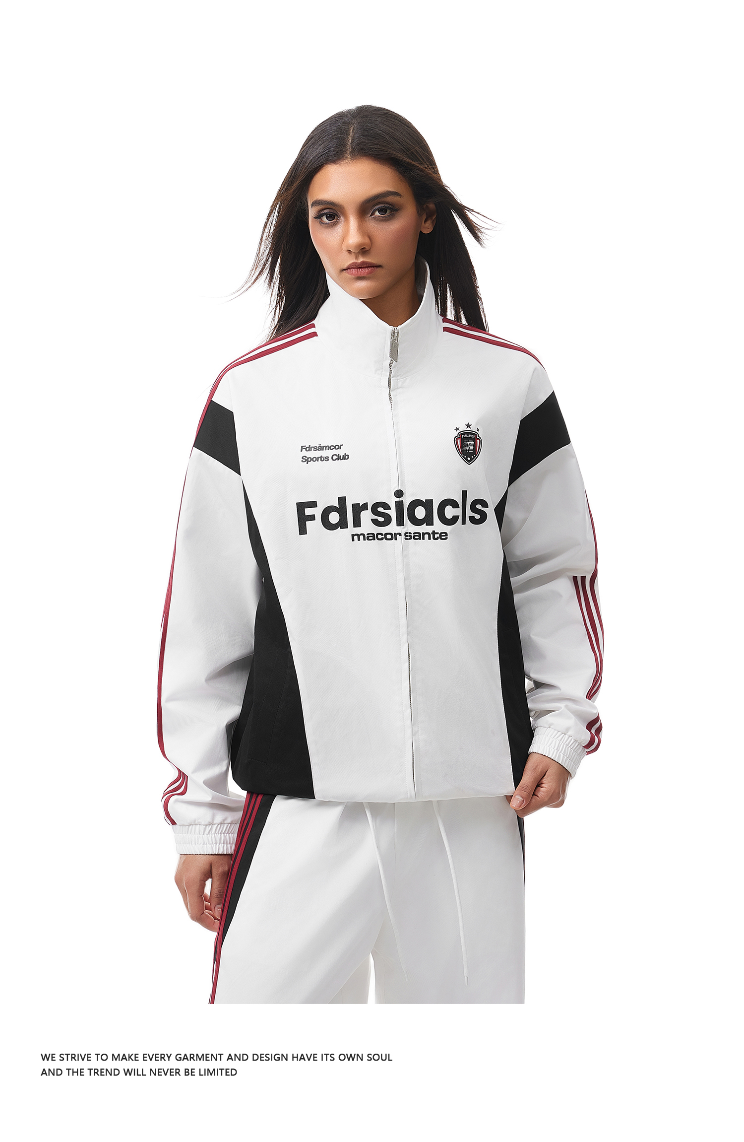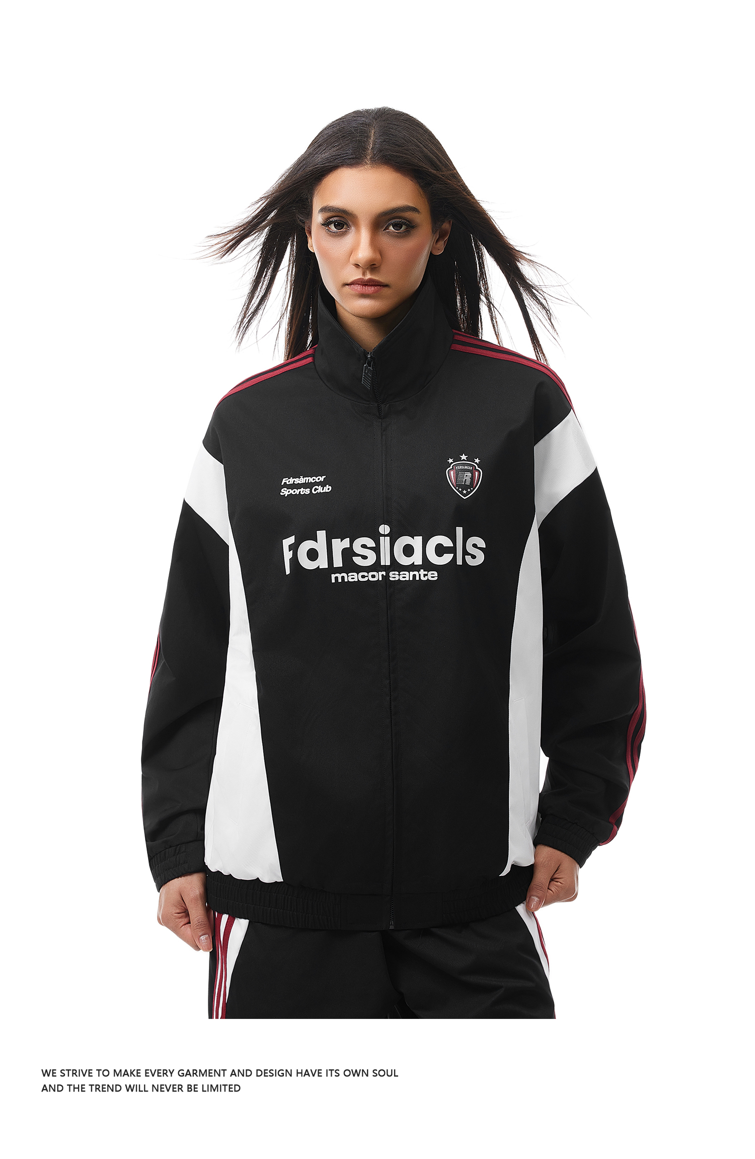 FDR官方店 撞色红织带立领外套女秋季新款辣妹宽松运动开衫上衣