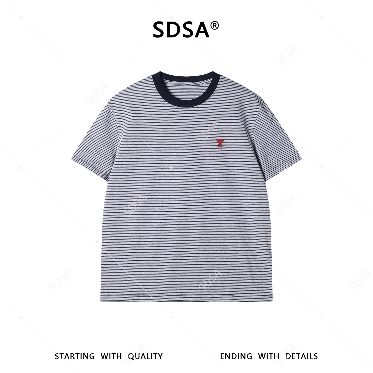9213SDSA男装2026新款高贵轻奢百搭显瘦撞色条纹刺绣爱心圆领短袖T恤