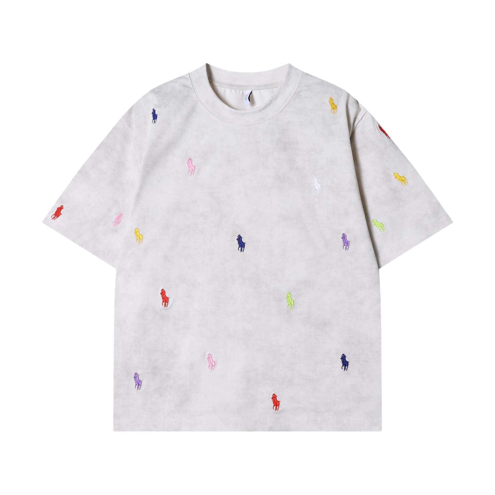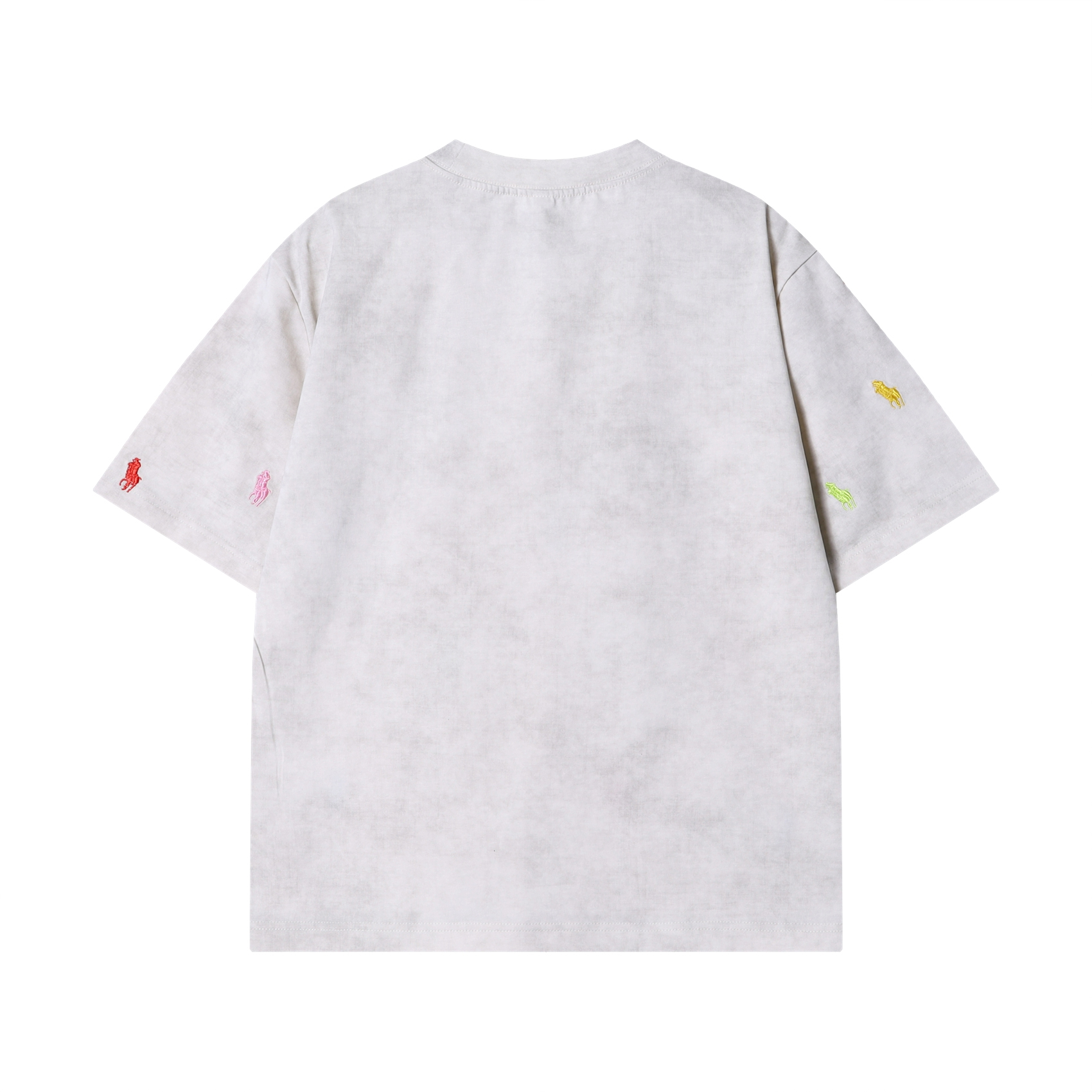 T2261春夏新款时尚个性扎染彩色刺绣标圆领短袖T恤小众设计轻奢上衣