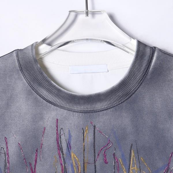 T2639夏季高级感新款扎染绒面印花字母圆领短袖T恤宽松潮流套头上衣
