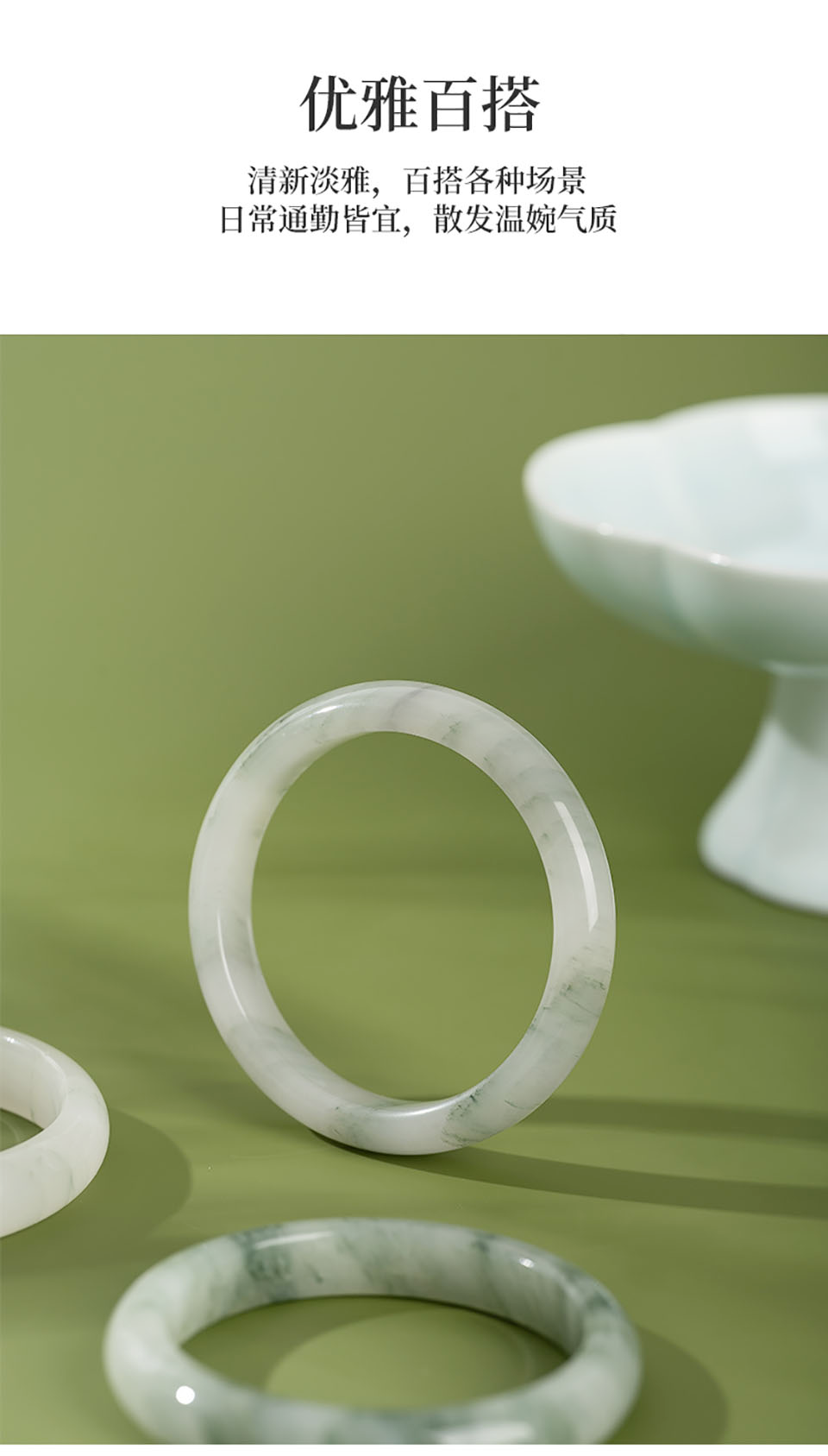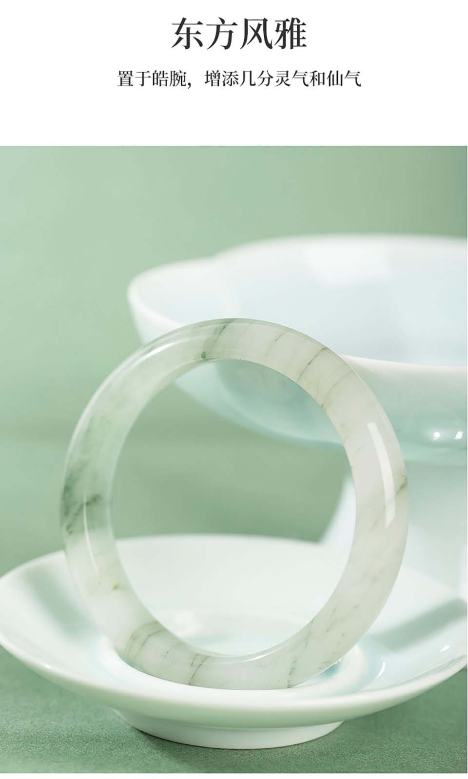 【经典】岸纾 天然气韵灵动天山冰翠精品手镯/桃花酿金丝冰玉精品手镯