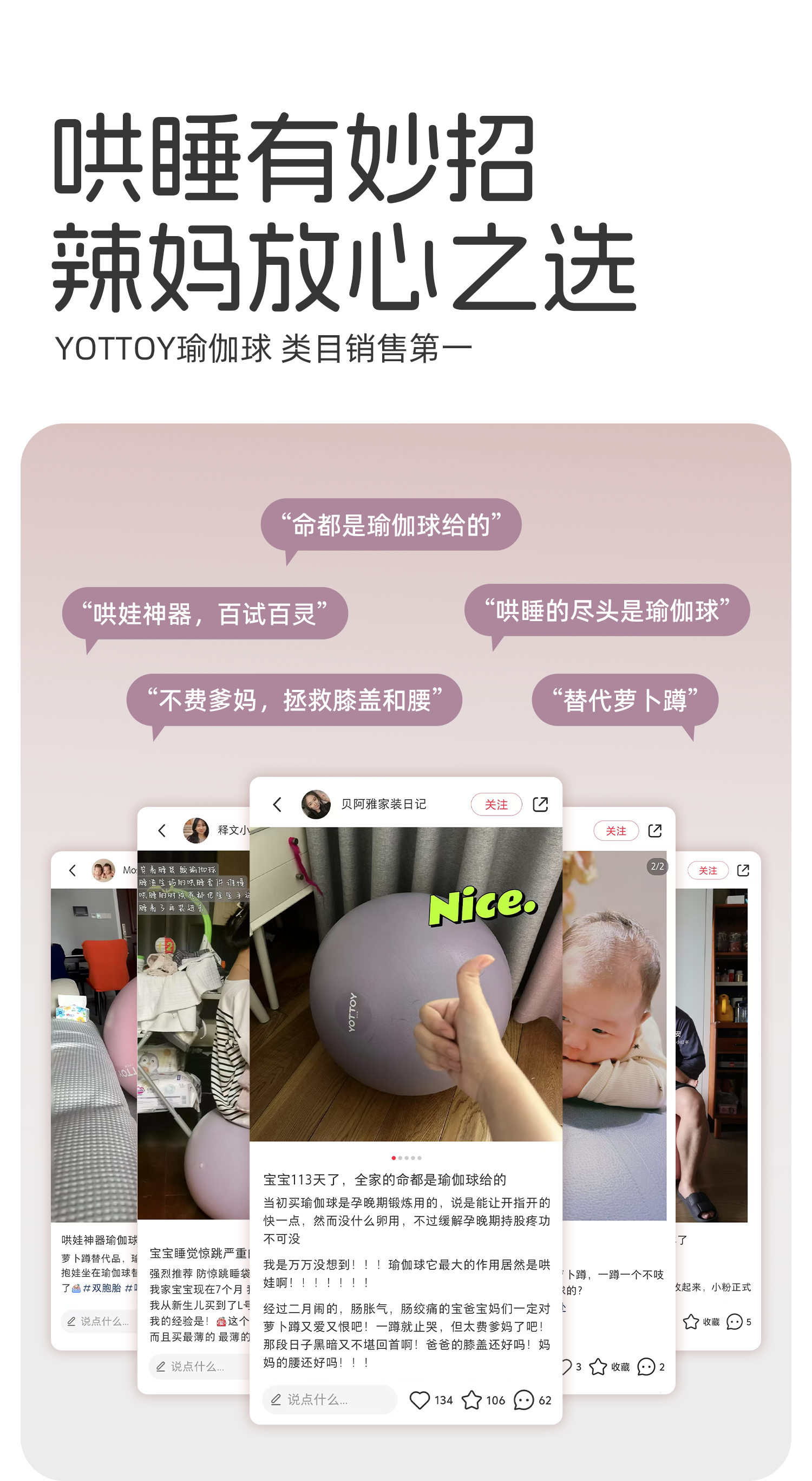 瑜伽球【YOTTOY】瑜伽球婴儿哄睡萝卜蹲哄娃神器儿童感统训练哄娃加厚防爆