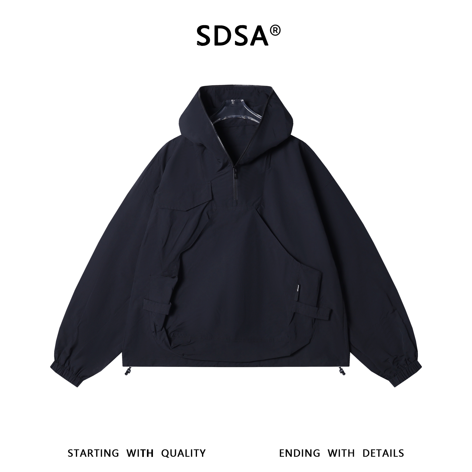 W0227SDSA春夏新款痞帅男装设计感拉链连帽夹克百搭时尚工装套头上衣
