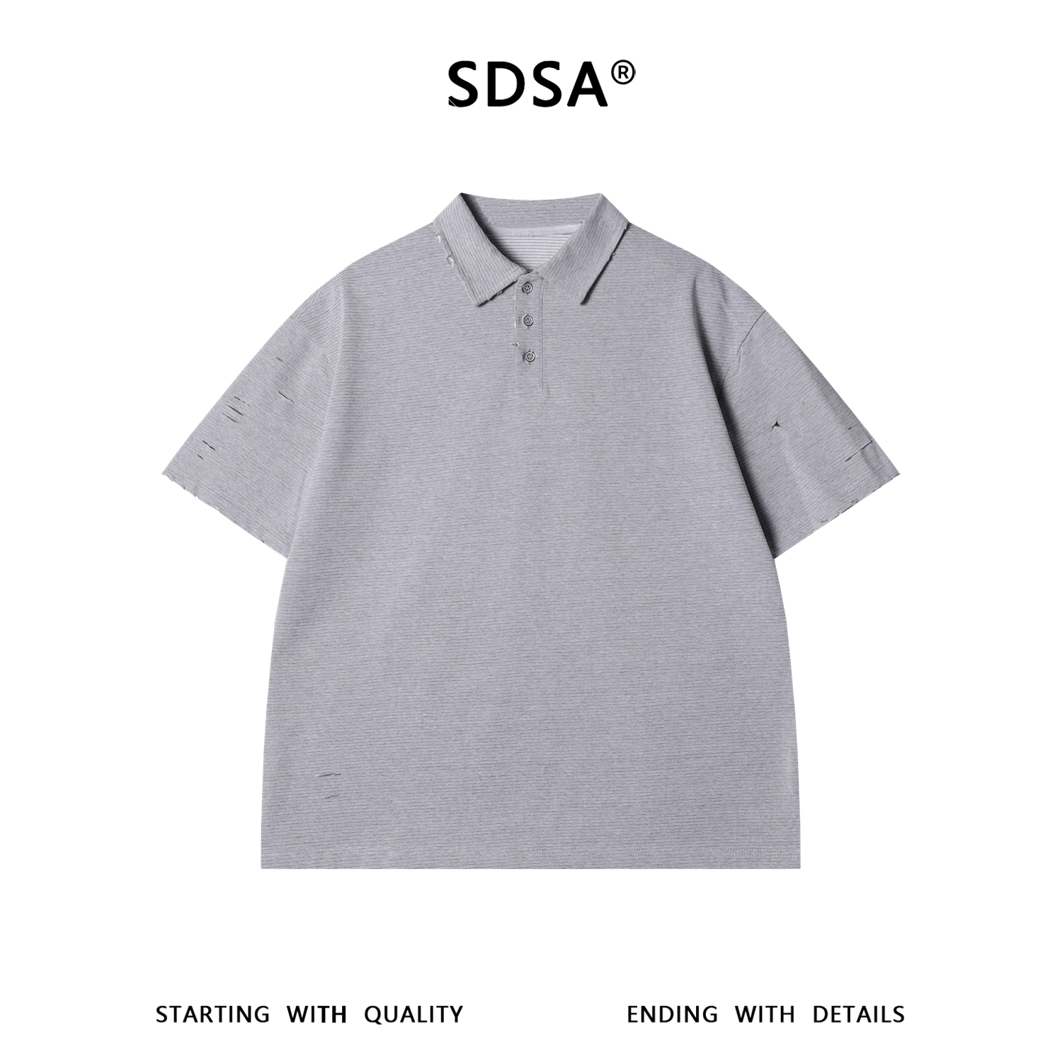 SDSA男装2026新款高贵轻奢老钱风条纹破洞POLO衫短袖T恤百搭上衣
