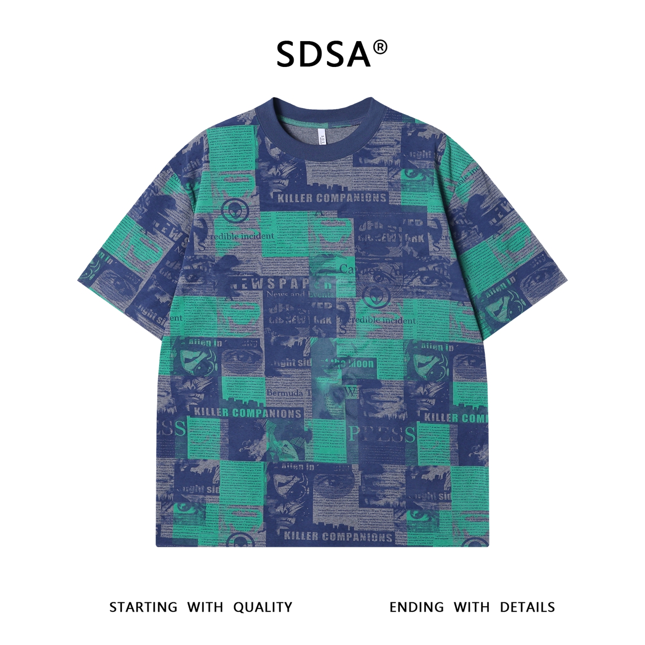 T3384夏季高级感新款美式潮牌撞色满印字母圆领短袖T恤百搭潮流上衣