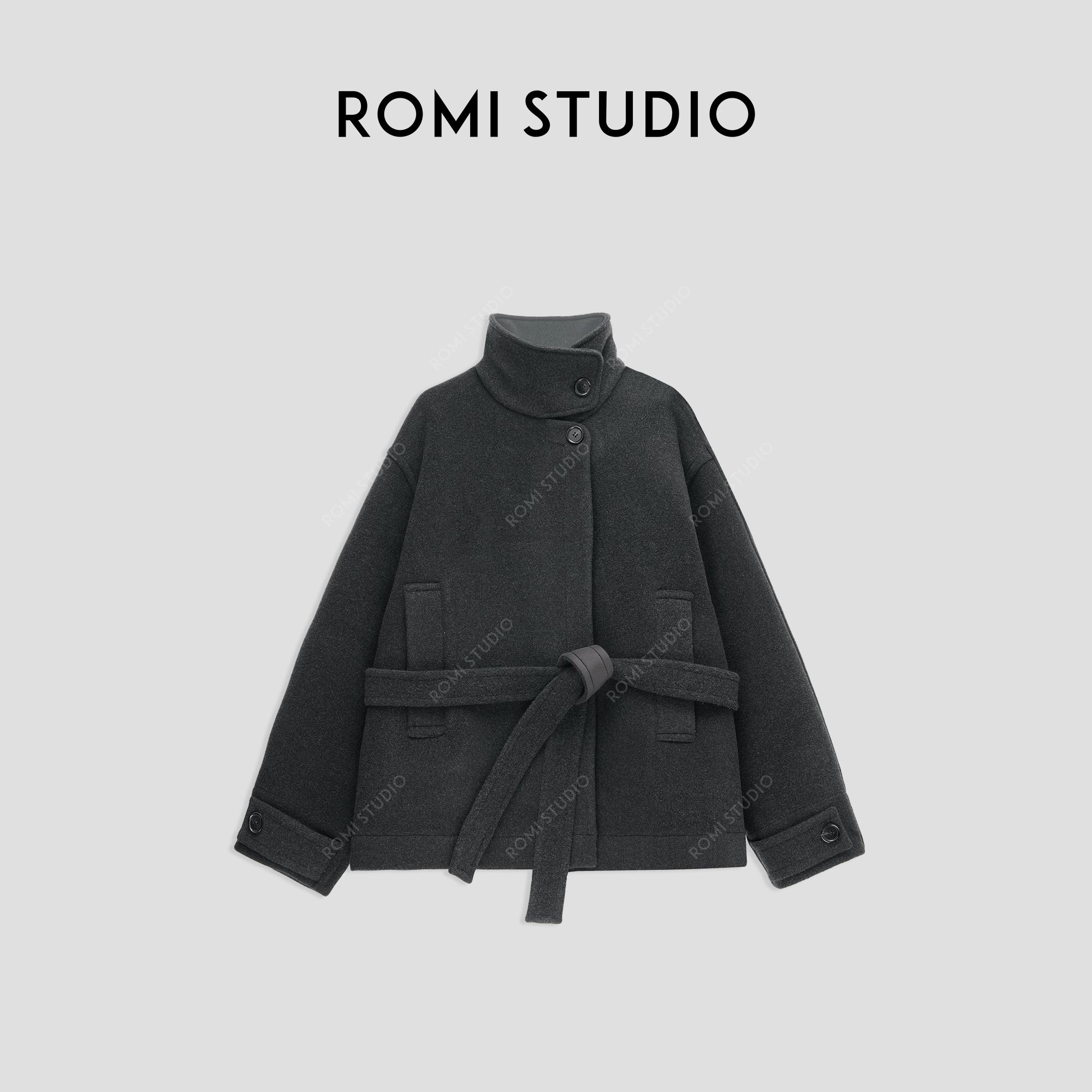 ROMI STUDIO“禅意侘寂”羊毛混纺系带廓形双面呢大衣外套23AWW1103