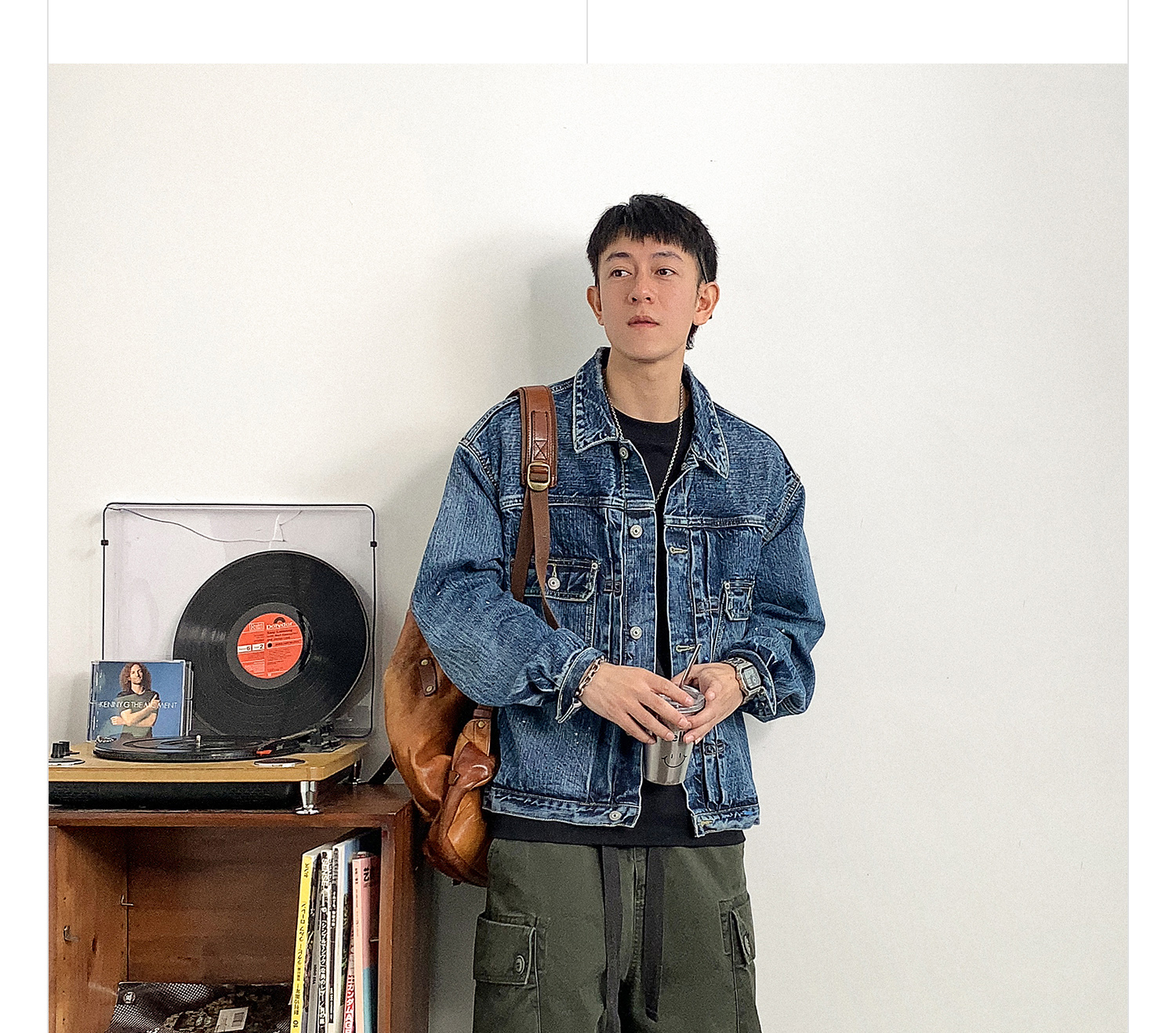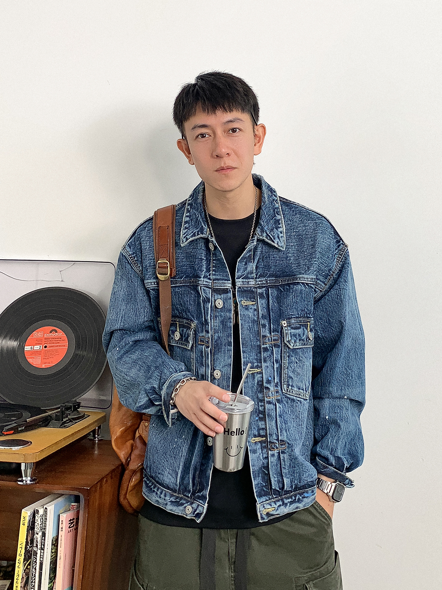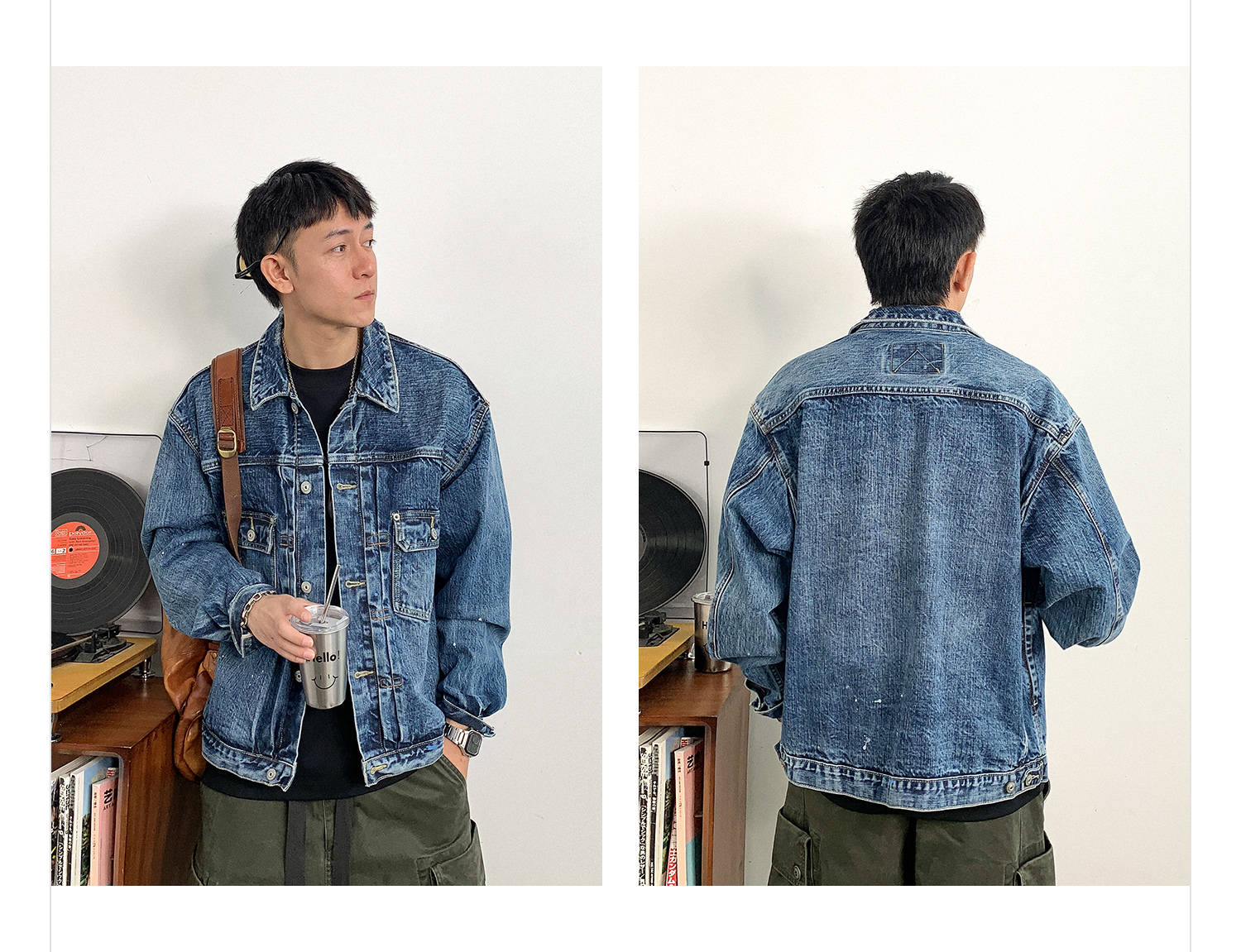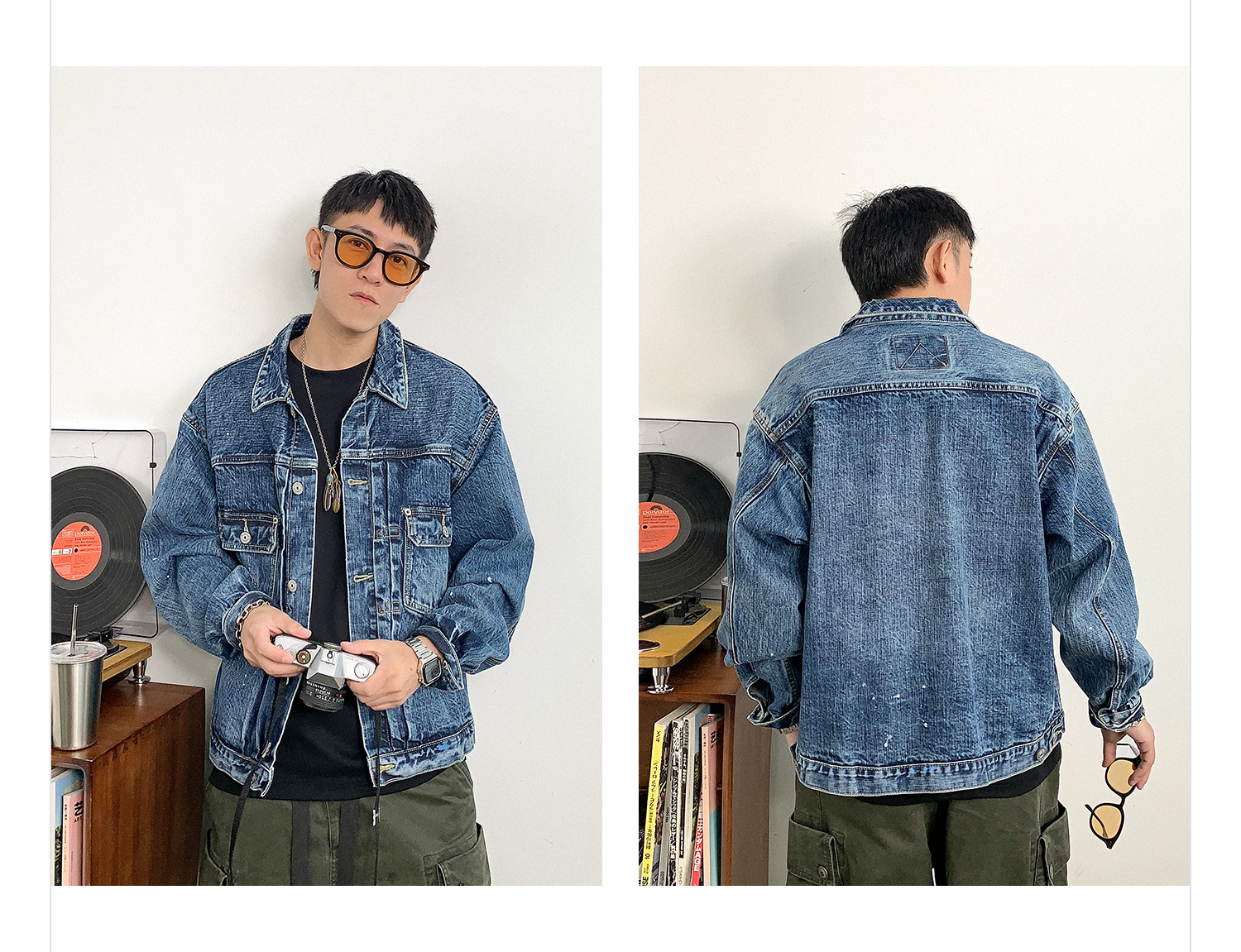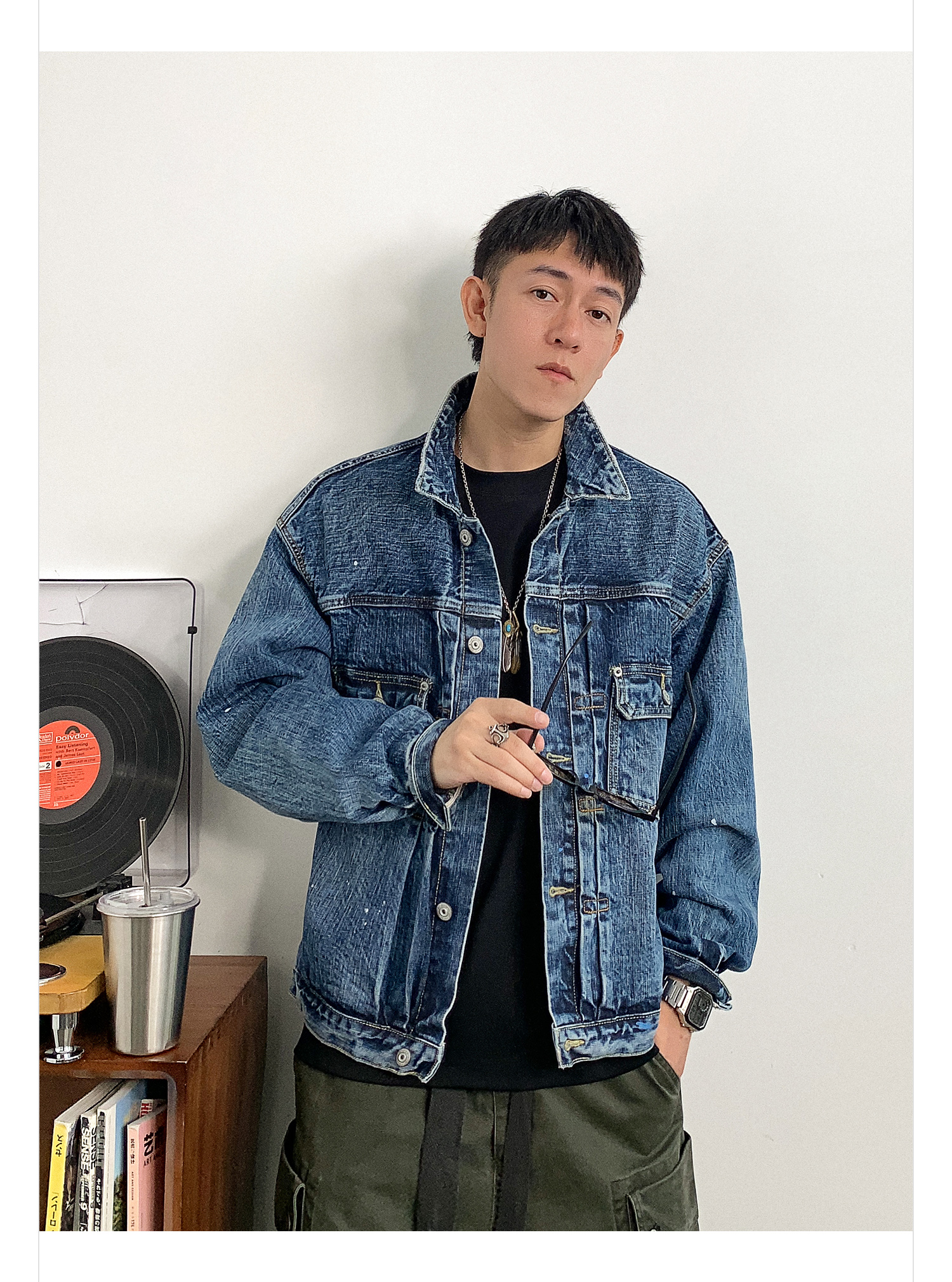徐太浪秋季水洗蓝色纯棉牛仔外套男时尚潮牌工装宽松休闲翻领夹克