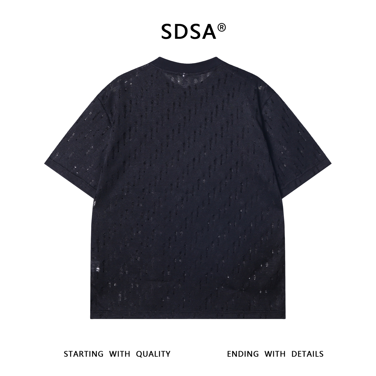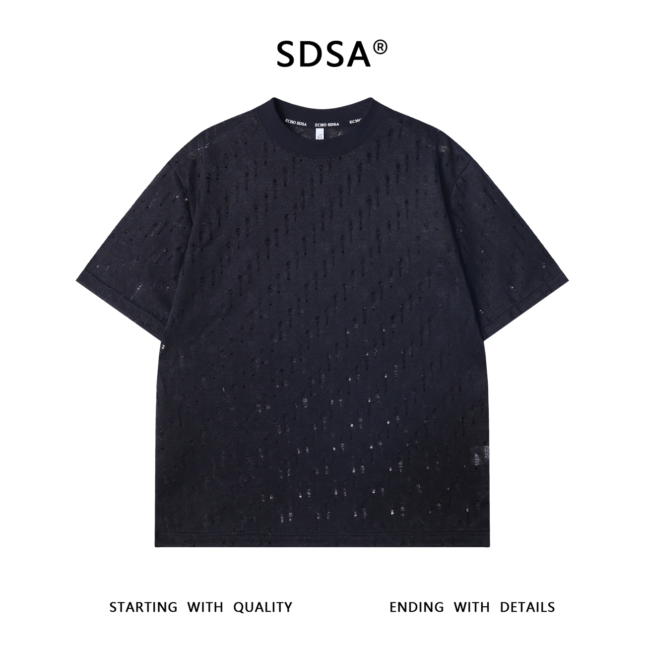 T3409夏季高级感新款潮牌简约纯色镂空圆领短袖T恤百搭时尚休闲上衣