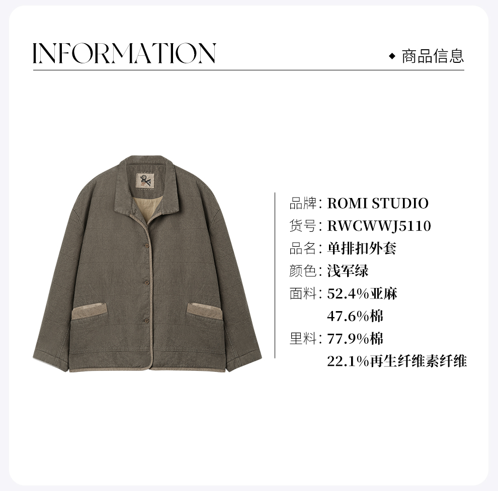 ROMI STUDIO“东方质朴”色织亚麻混纺自然皱感宽松外套 RWCWWJ5110