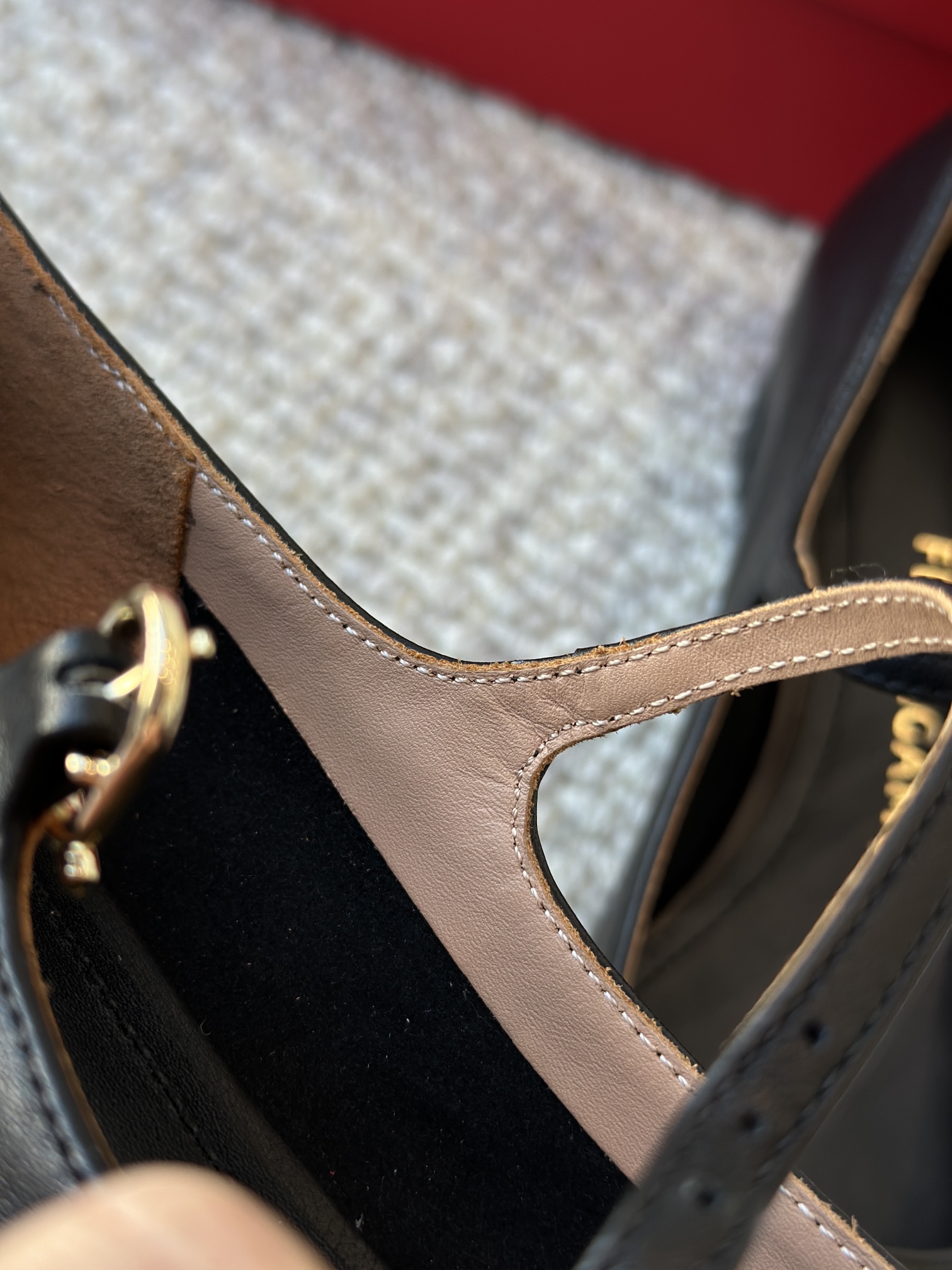 真皮组合大底,绝不是硬邦邦的塑料底,踩在地上软而有支撑,低跟不挑人穿! 粗跟跟高3-4cm轻松拉高身材比例!