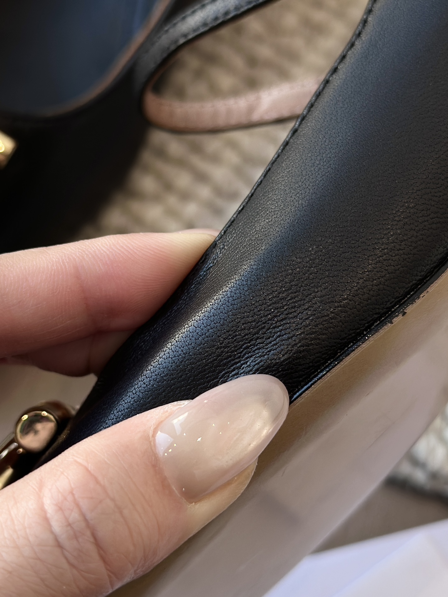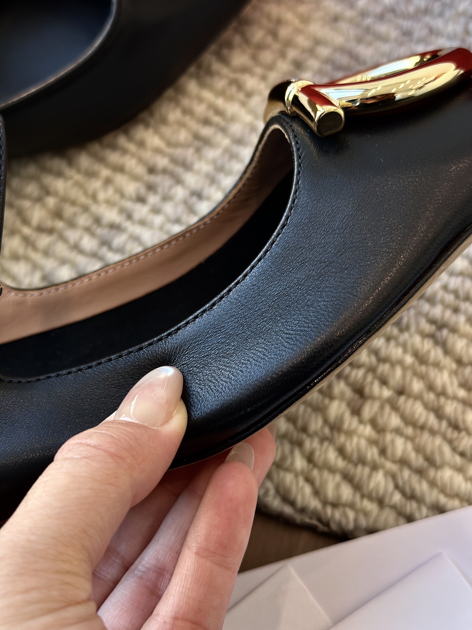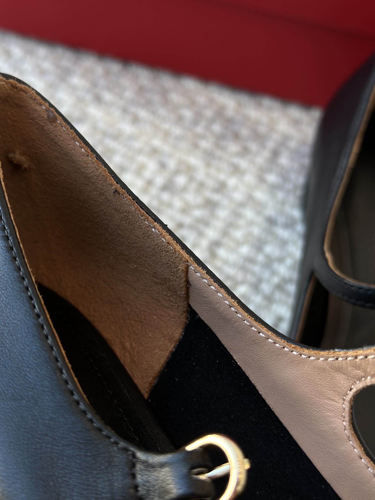 鞋头闪着超大的金属马蹄扣饰 质感超级好!!刻字logo也超清晰,做工能给到满分!
