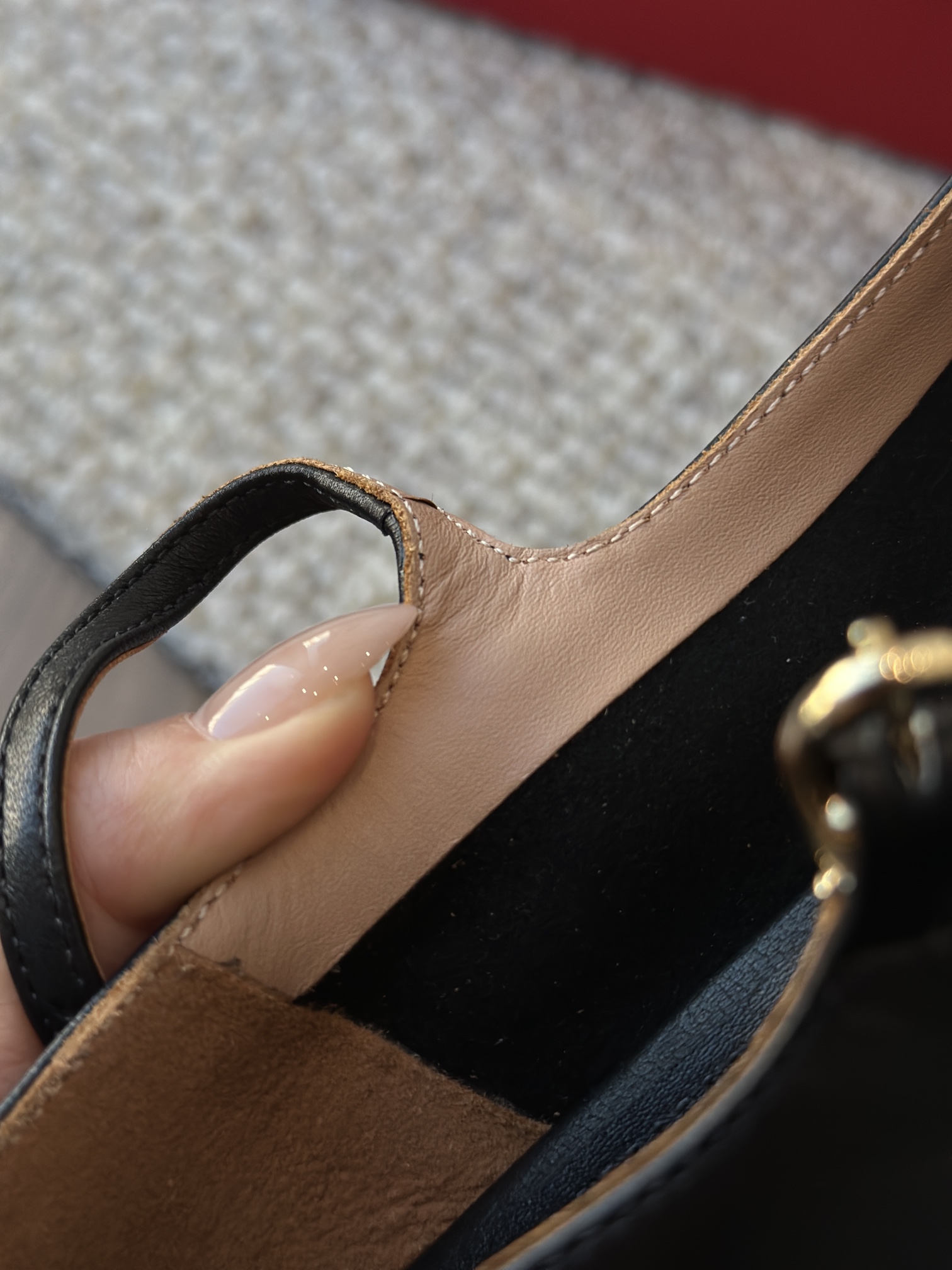 内外皆是羊皮材质,把极致的脚感贯彻到底! 烫金logo依旧清晰能打!