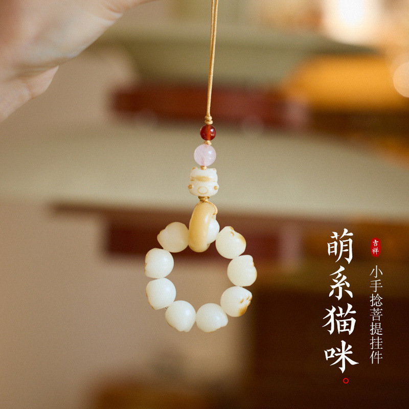 【普陀山】天然白玉菩提小挂件手捻 手机挂件 包包挂件 炭烧猫爪