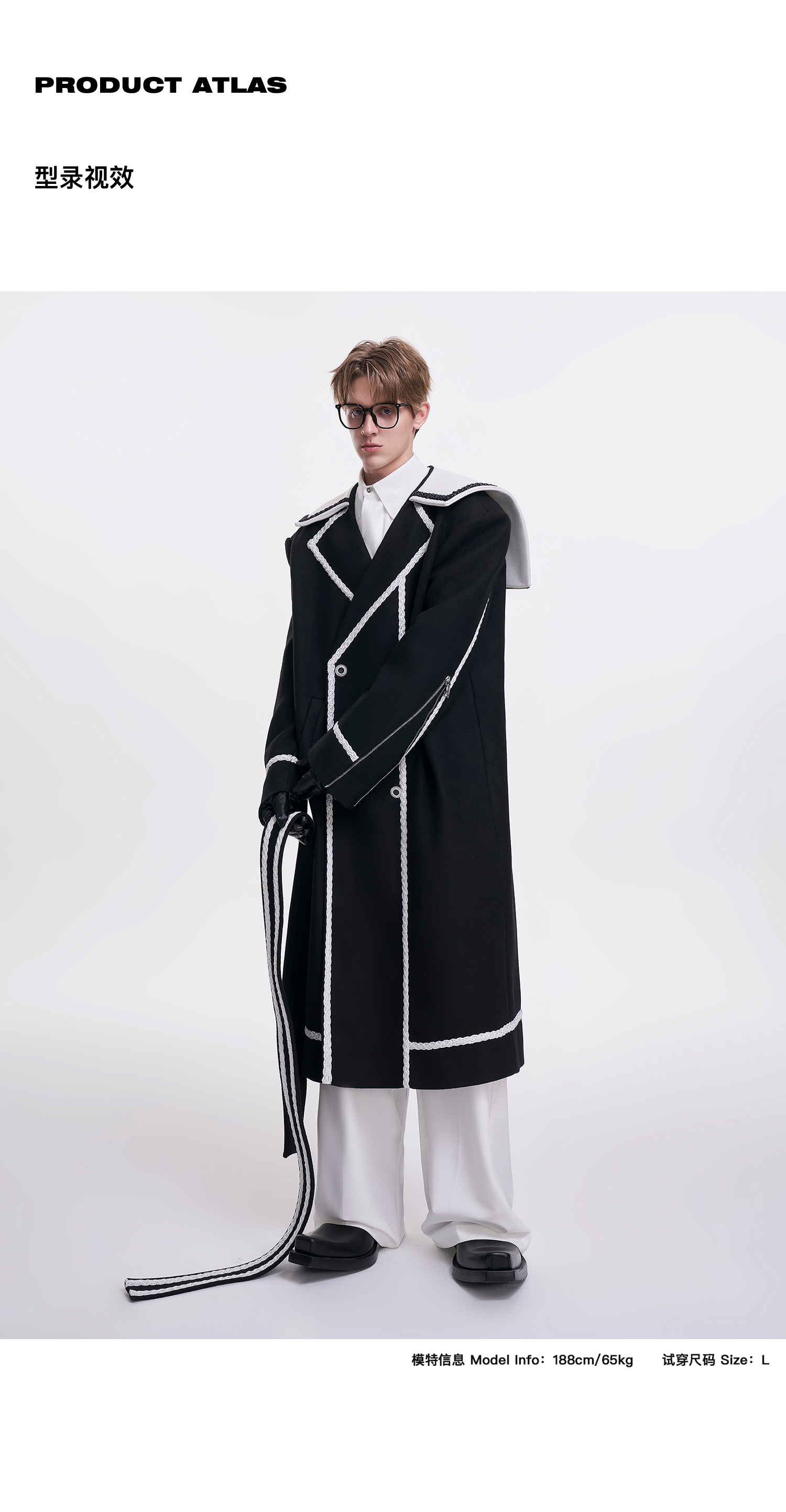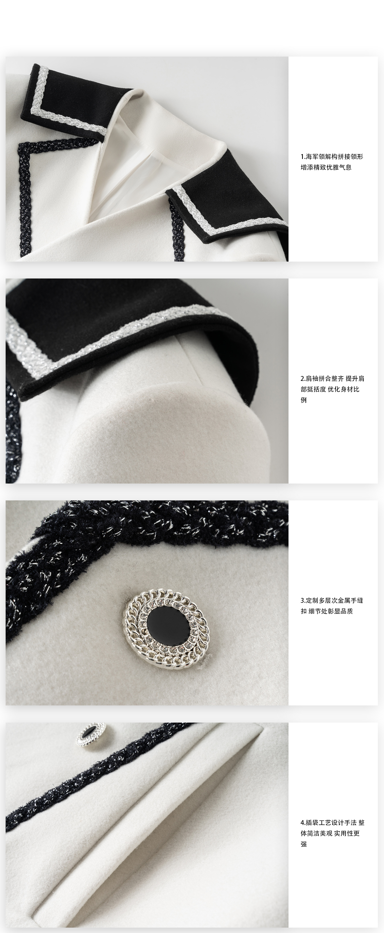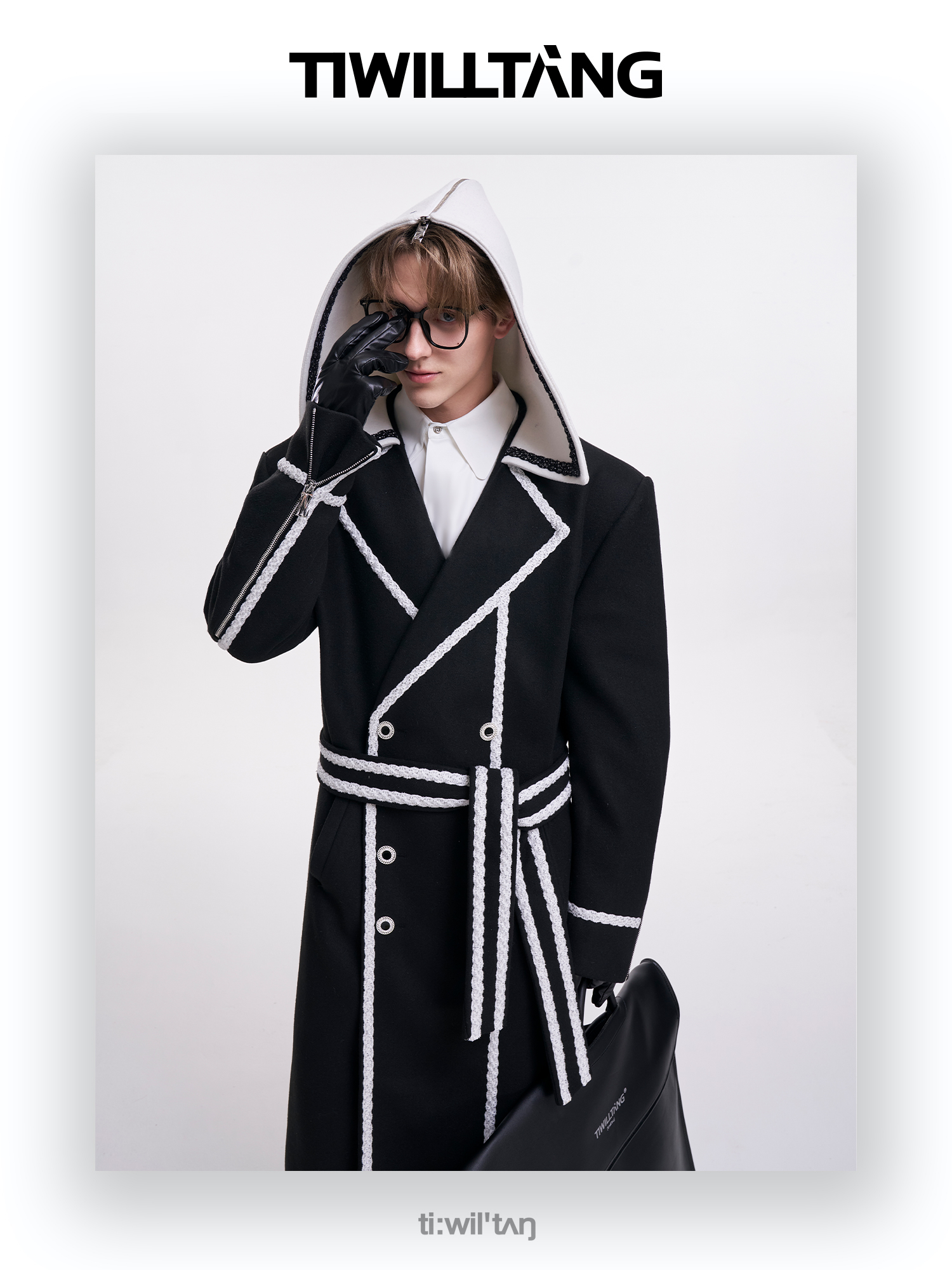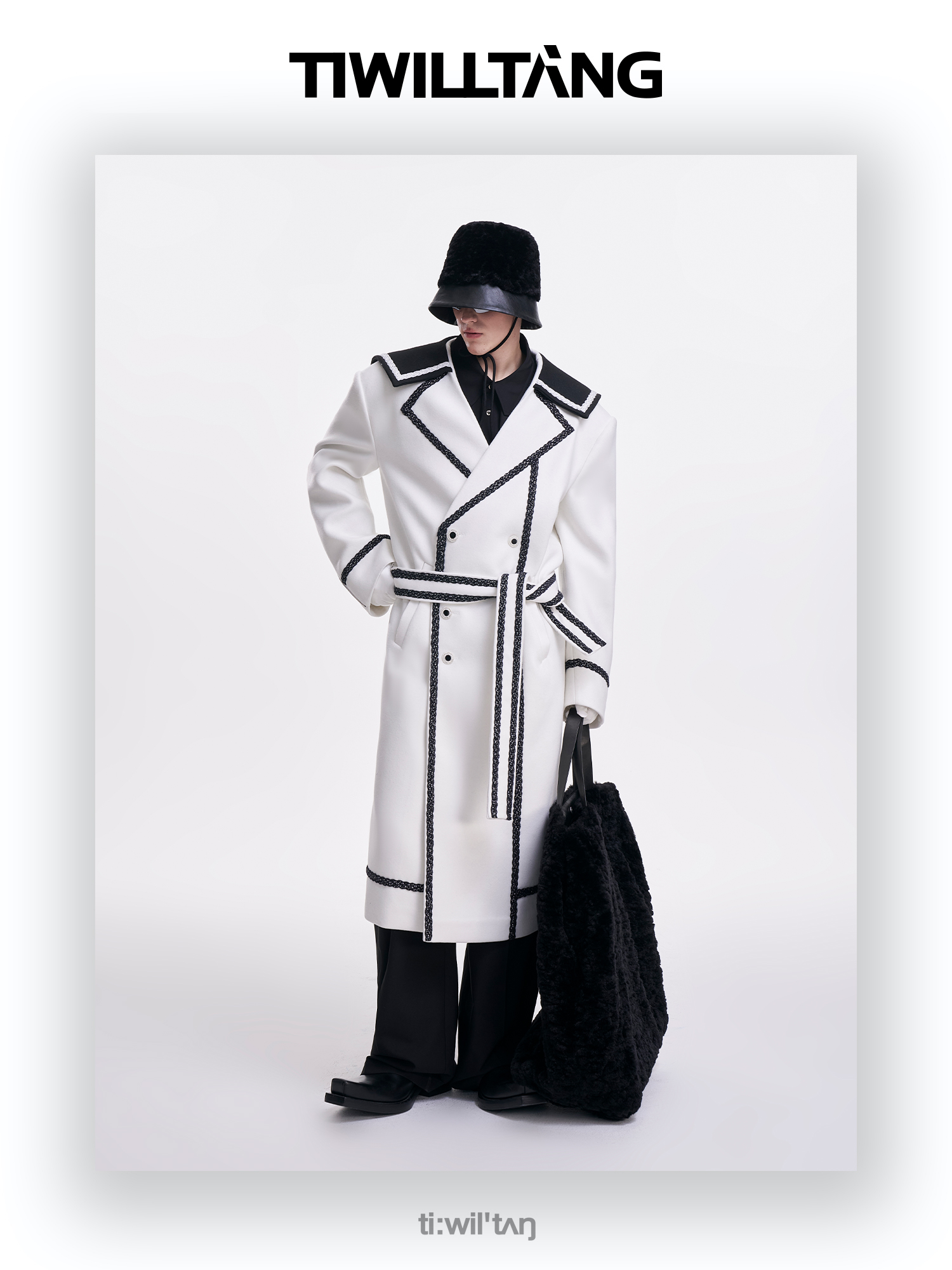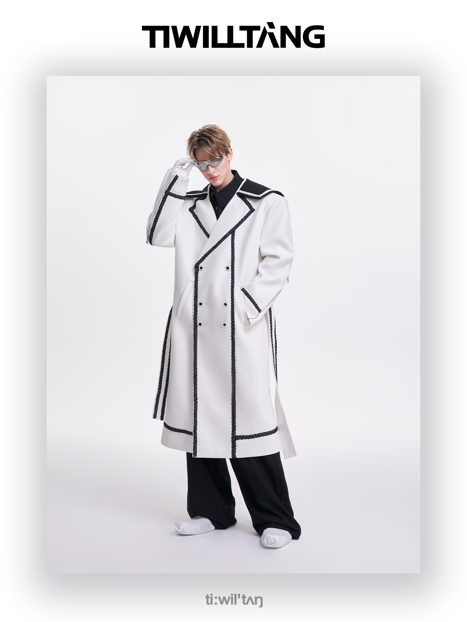 启世录TIWILLTANG“舷舢秩海”海军领拉链大衣冬长款收腰毛呢外套