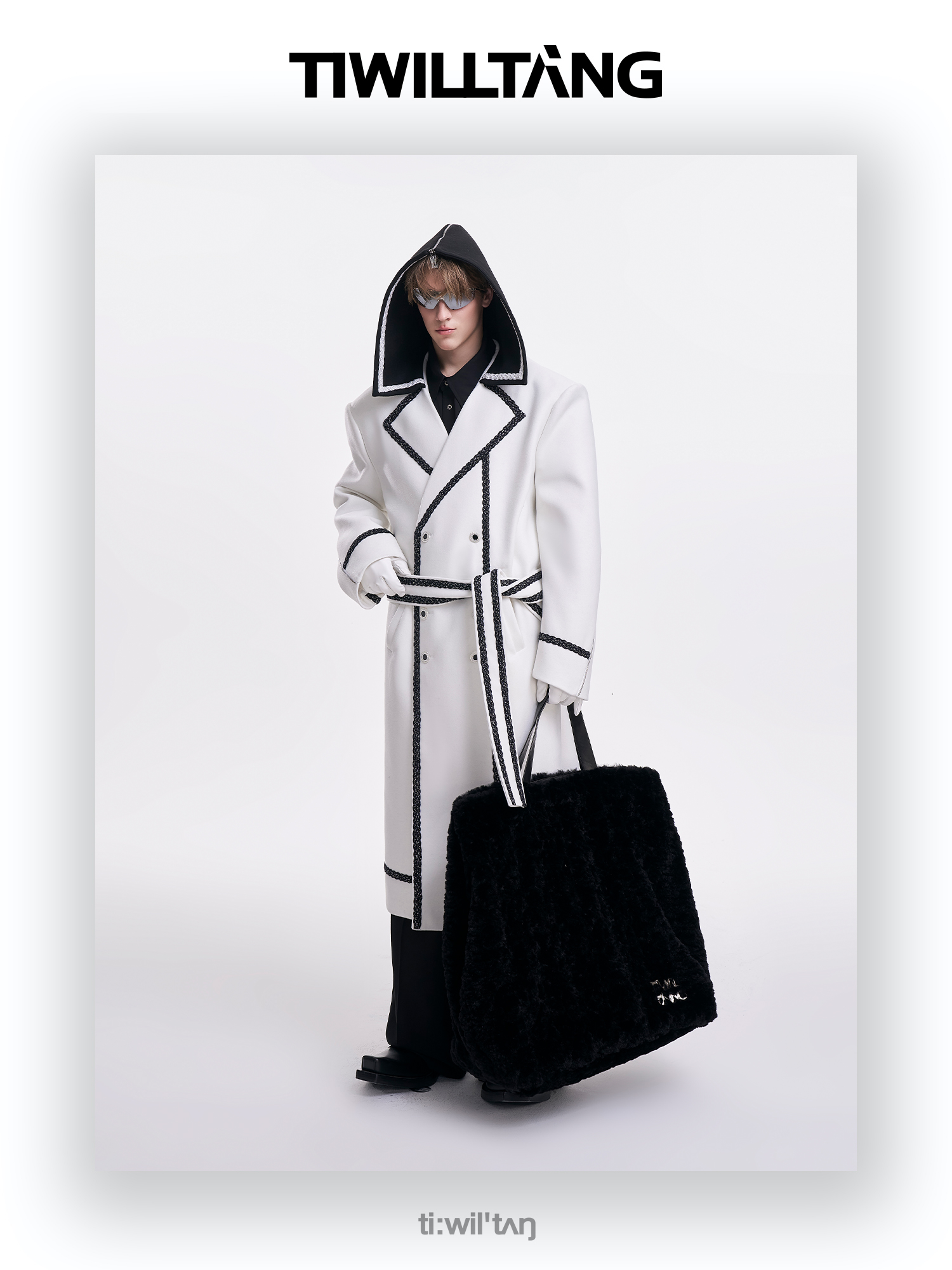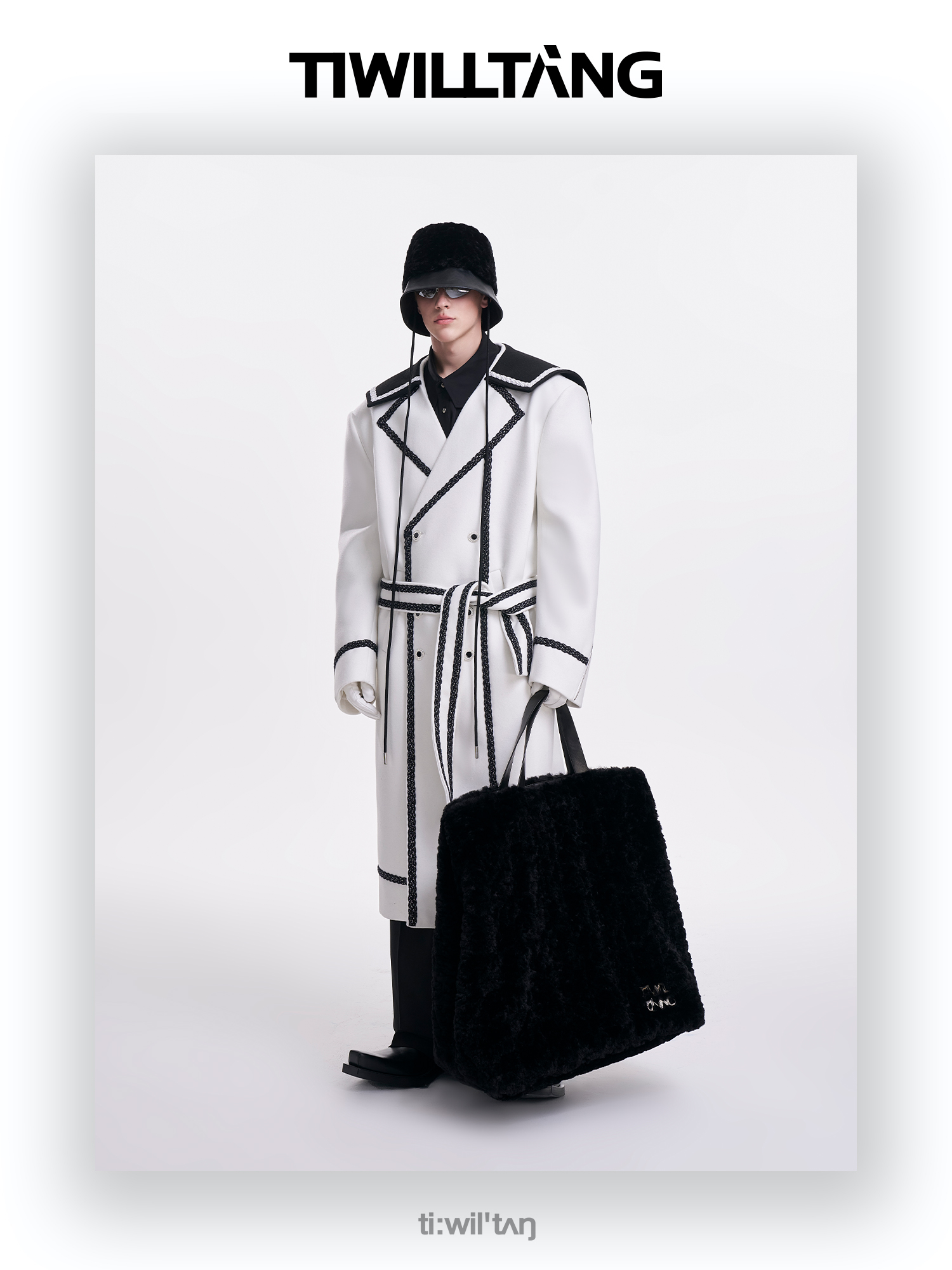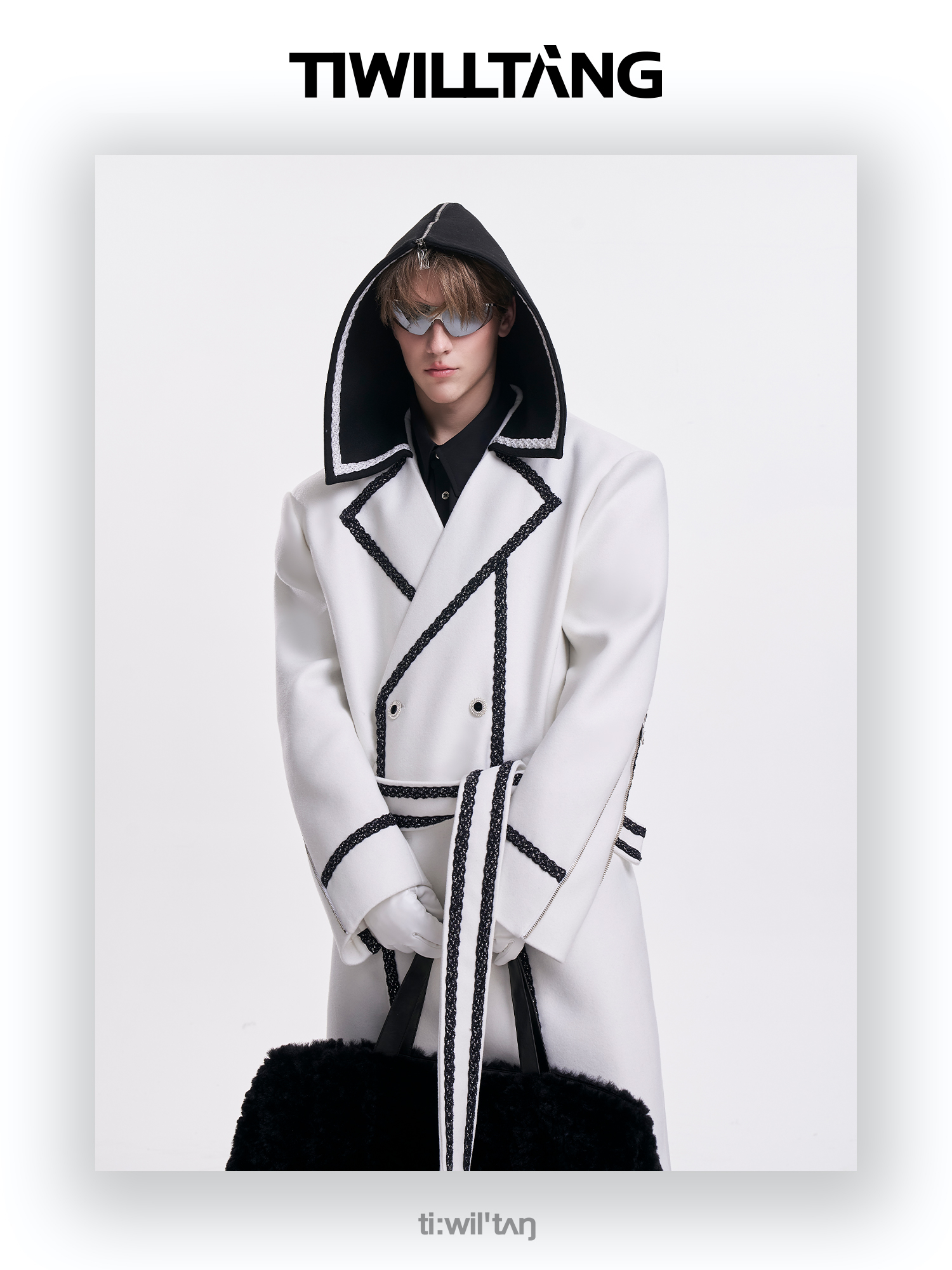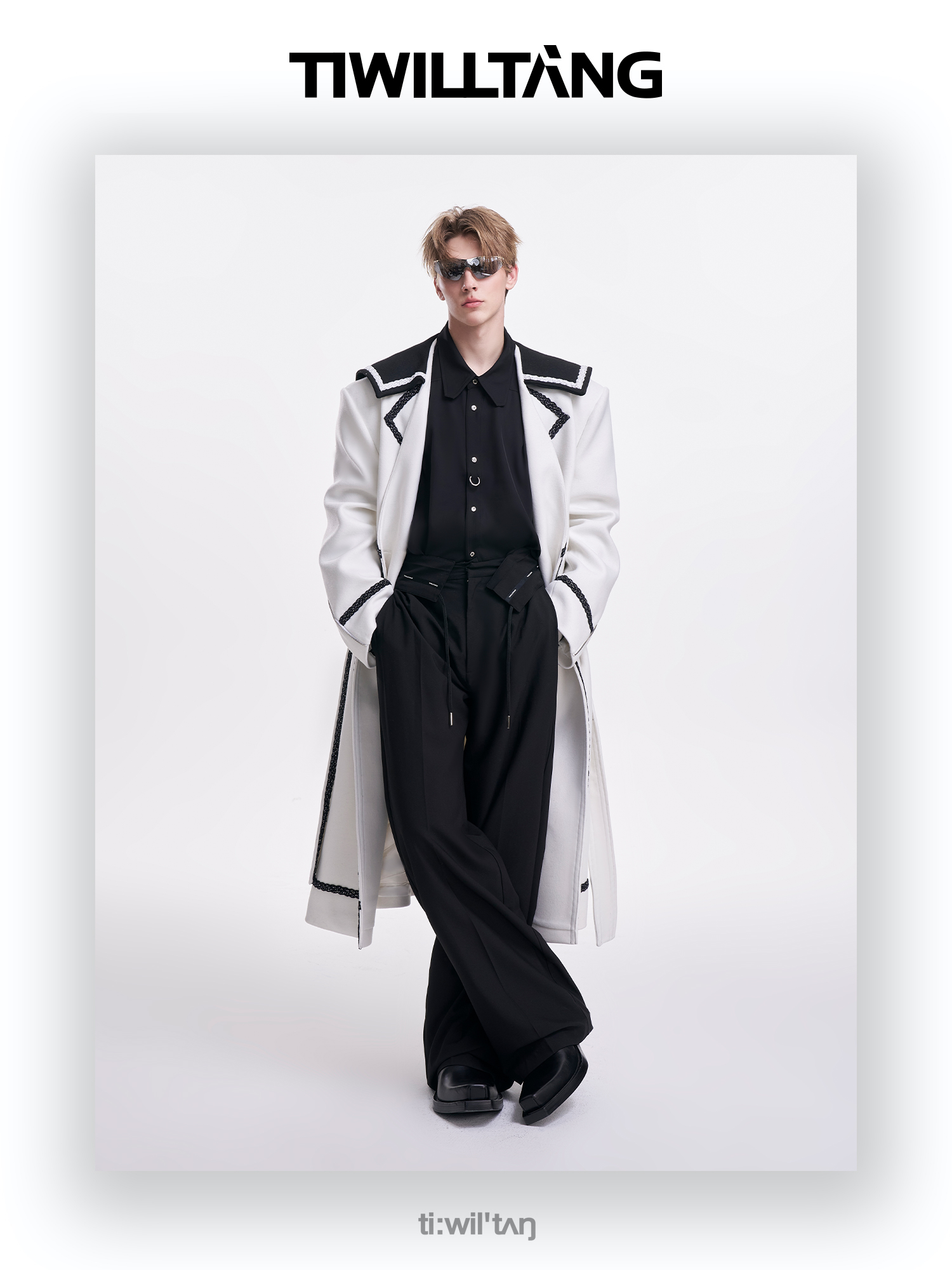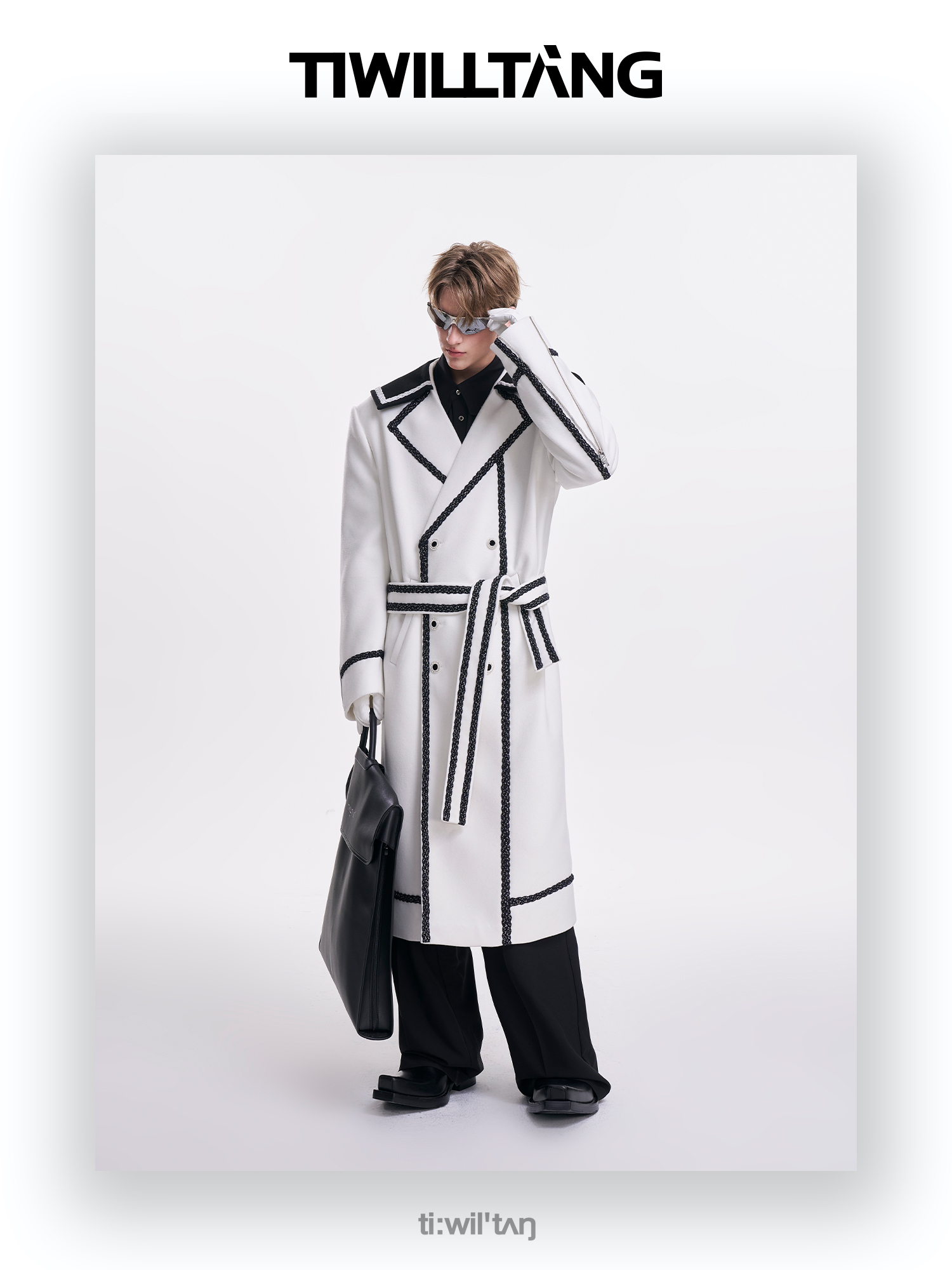 启世录TIWILLTANG“舷舢秩海”海军领拉链大衣冬长款收腰毛呢外套