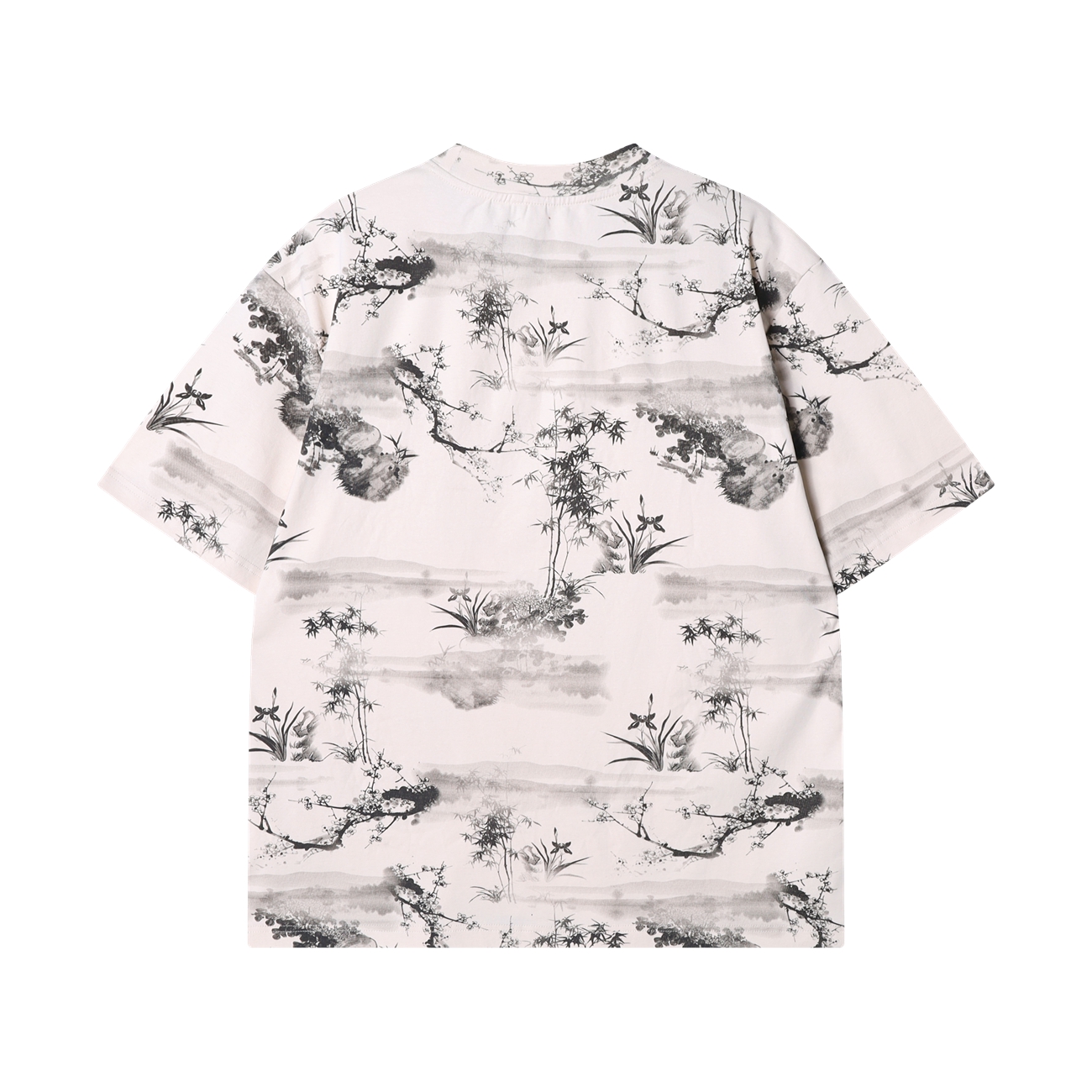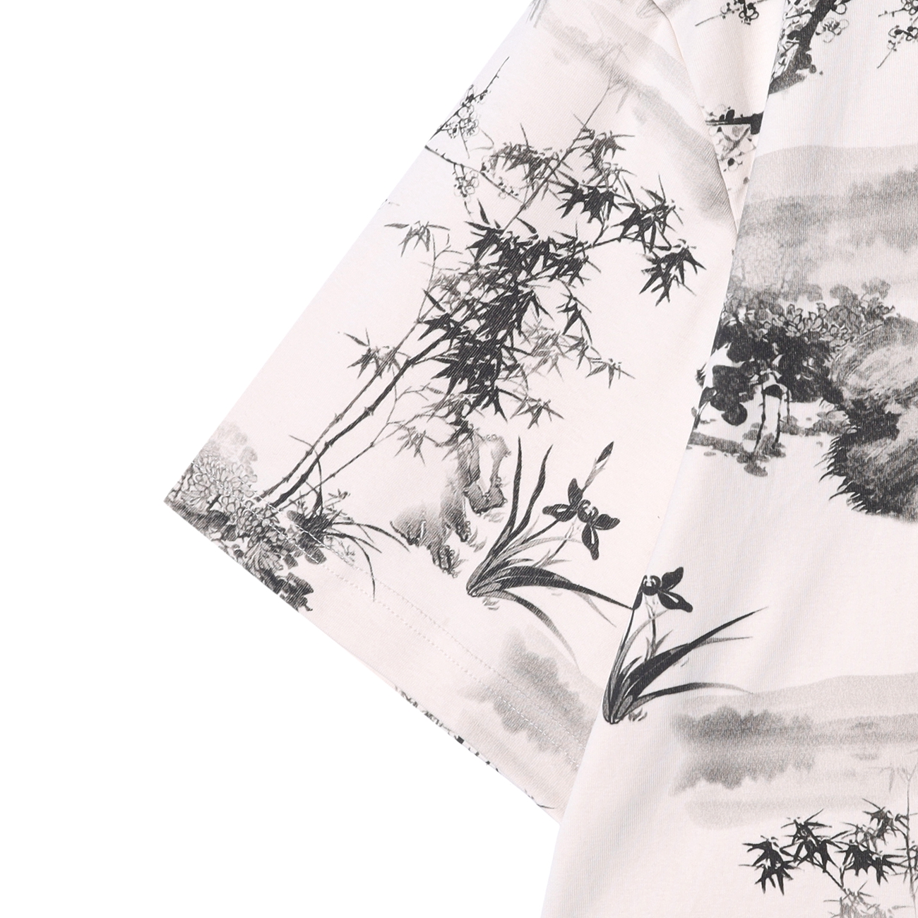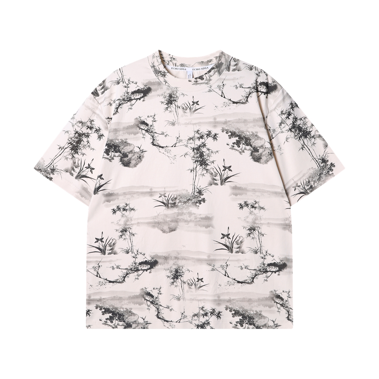 T3076夏季高级感新款国风水墨花卉圆领短袖T恤休闲时尚宽松套头上衣