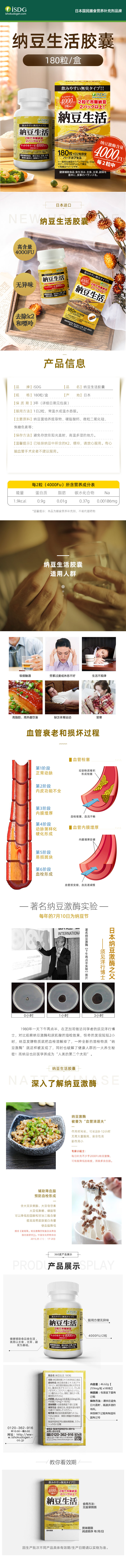 【180粒大瓶装 3个月量】ISDG日本纳豆激酶胶囊大瓶装 纳豆菌纳豆精胶囊4000fu 180粒 /瓶 2027-12-23到期