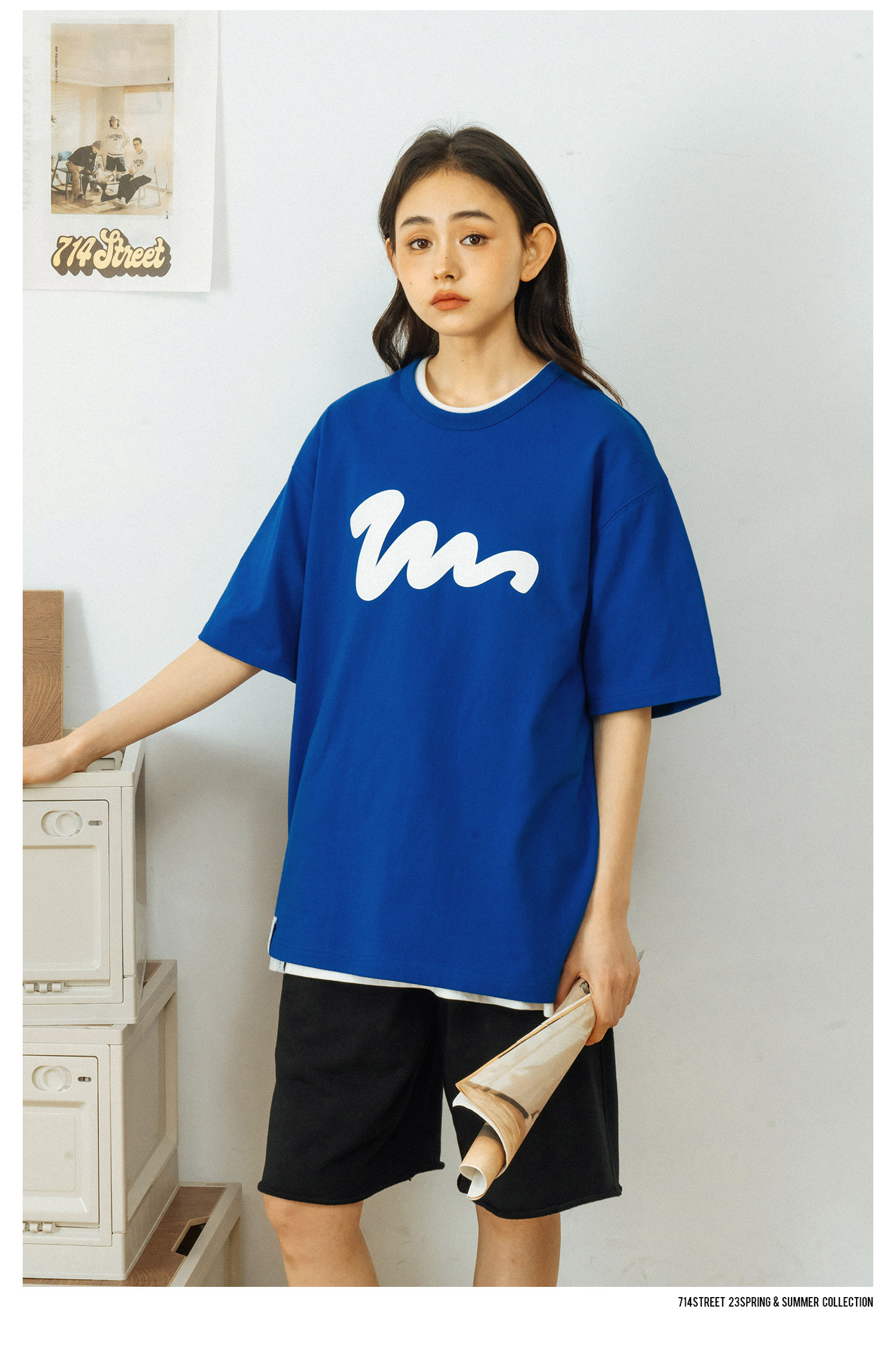 714street潮牌印花短袖t恤男夏季新款美式情侣体恤重磅纯棉打底衫