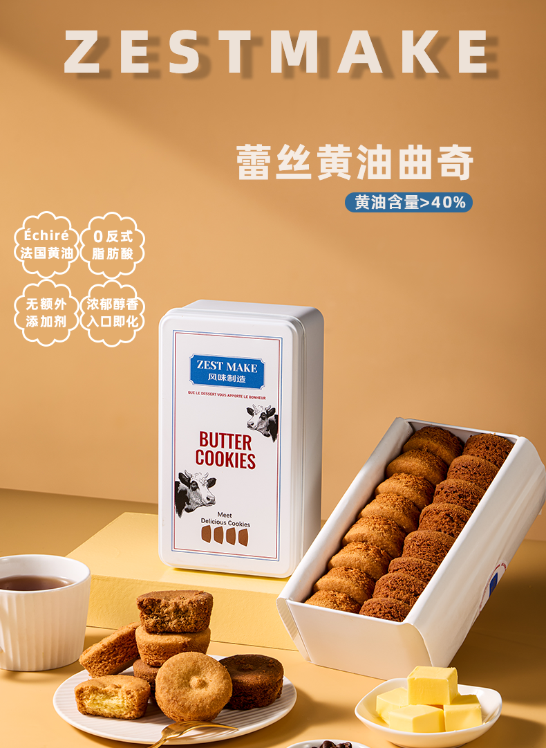ZESTMAKE 蕾丝黄油曲奇饼干选用法国艾许黄油下午茶320g