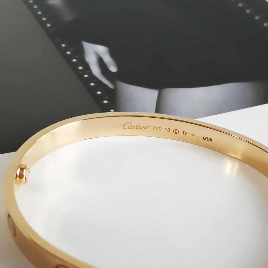 【95新】Cartier卡地亚LOVE系列B6035518黄金宽版无钻LOVE三代手镯18号中性款130326NJS06