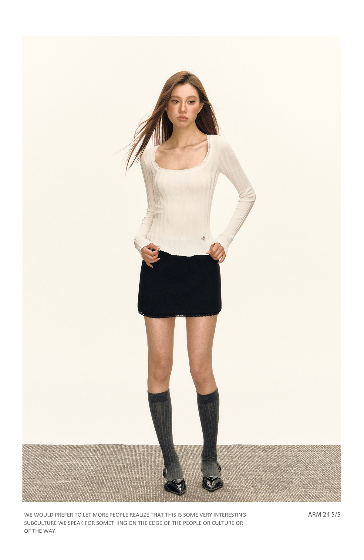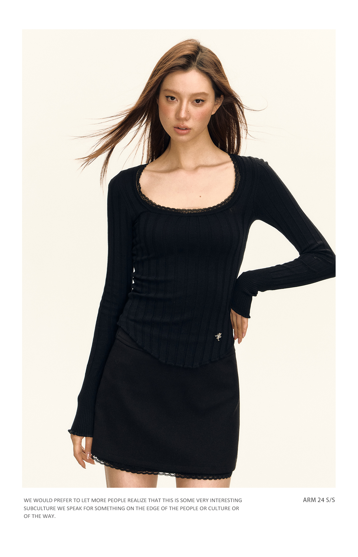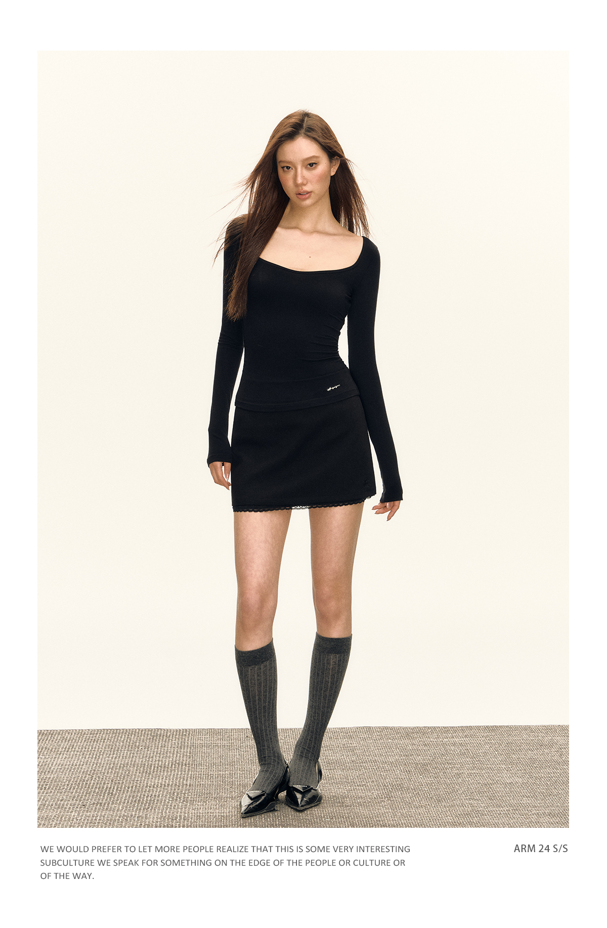 Ariseism 美式复古设计感亨利领假两件长袖t恤女秋季新款修身上衣