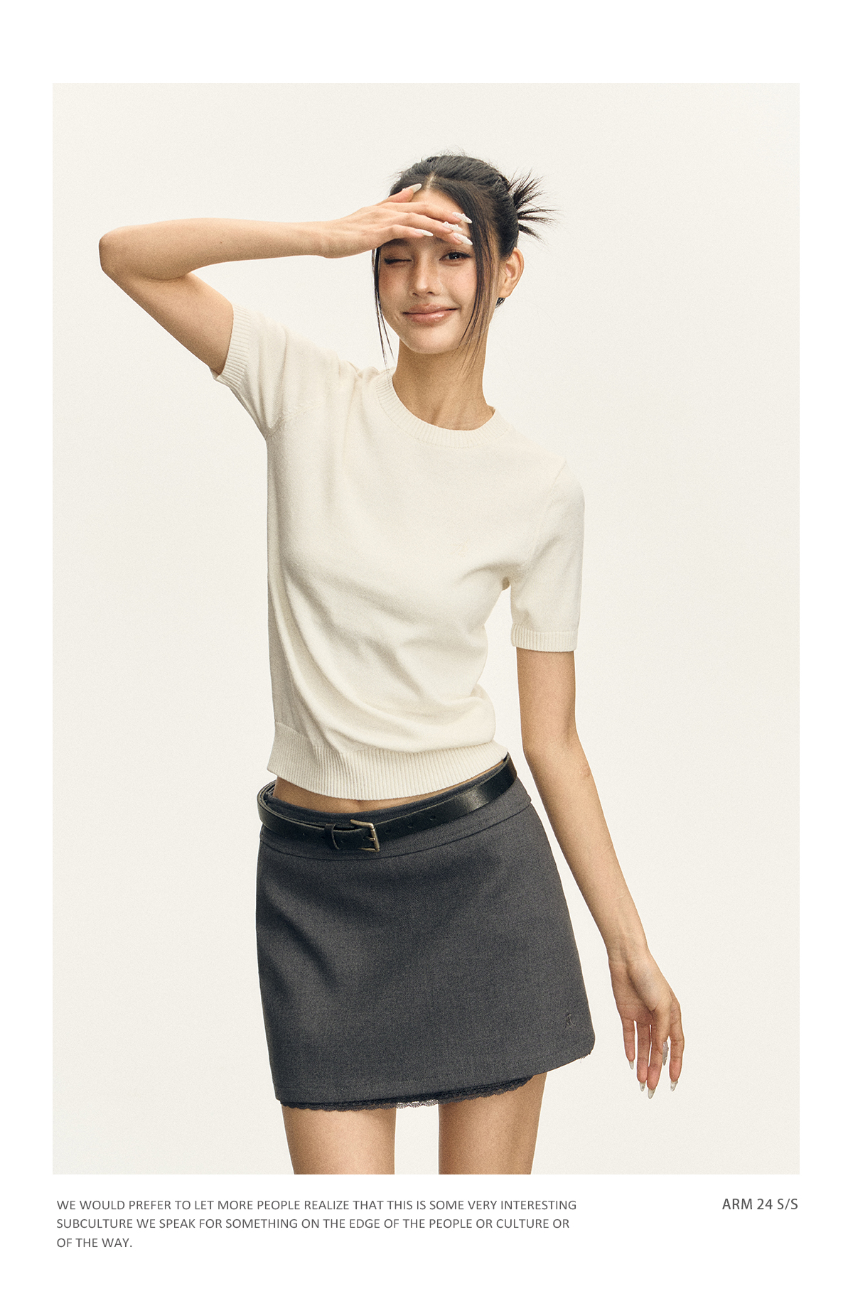 Ariseism 美式复古蝴蝶结镂空短袖T恤女夏季新款上衣