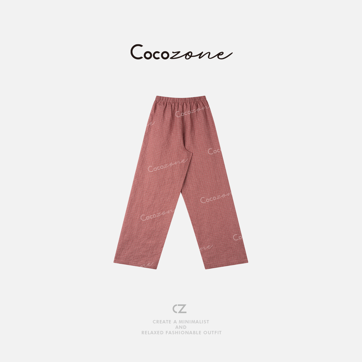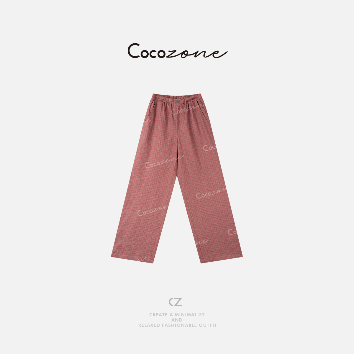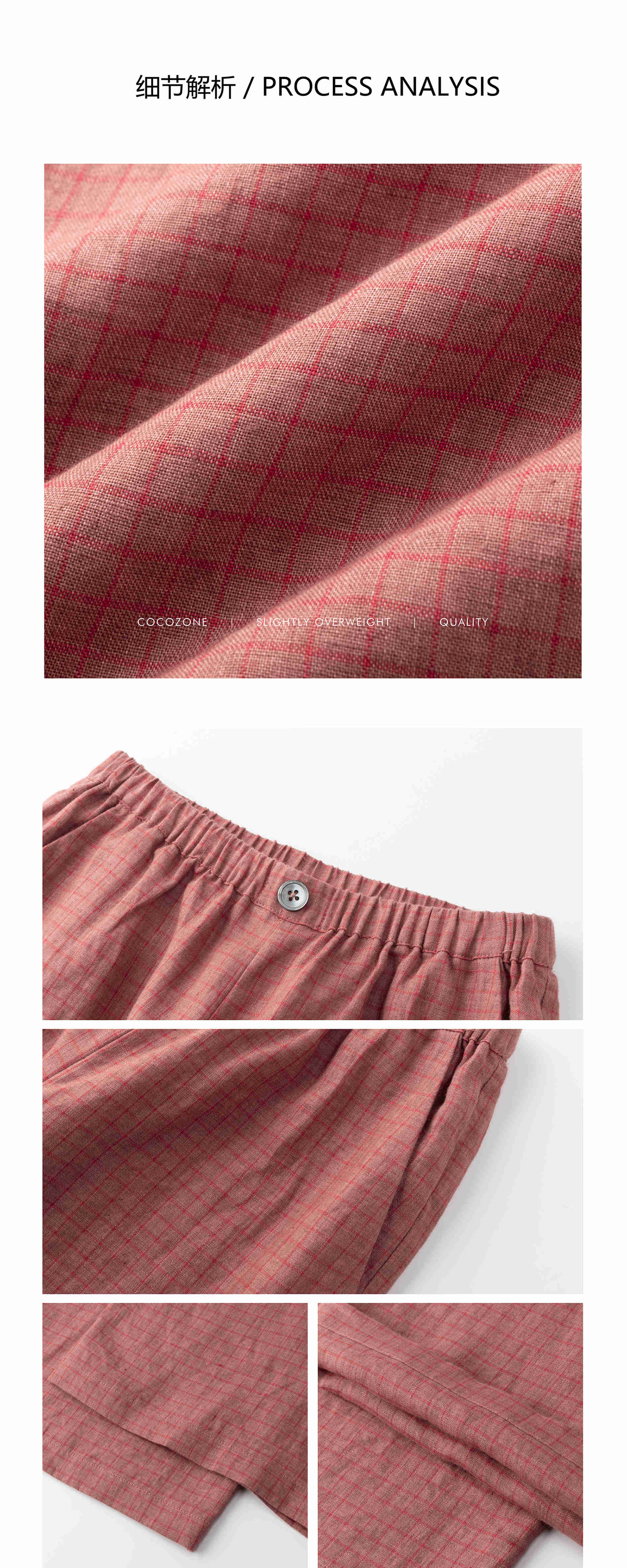 COCO ZONE 刘一一 【100亚麻】格纹通勤松紧腰休闲裤CD1A0615
