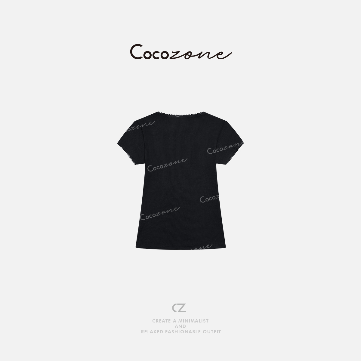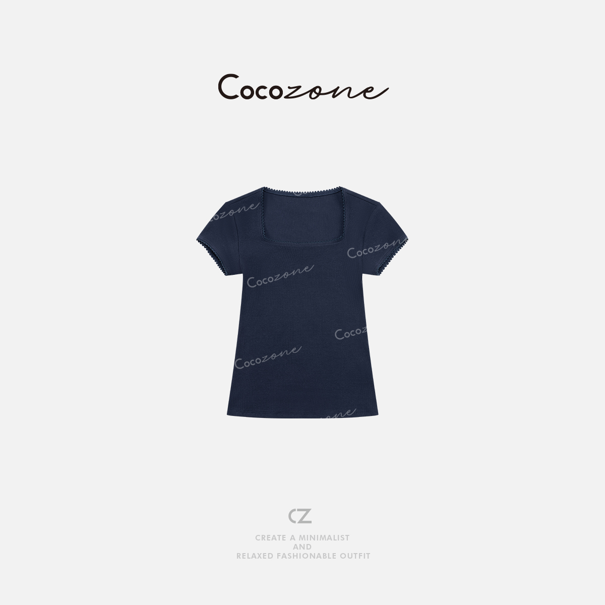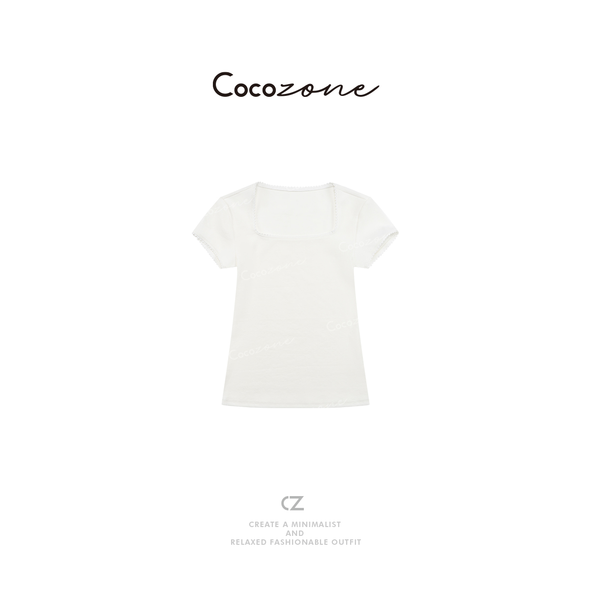 COCO ZONE 刘一一 时尚简约纯色小方领修身休闲短袖T恤CD2A0758