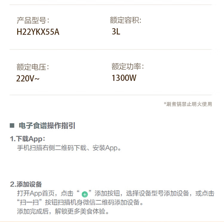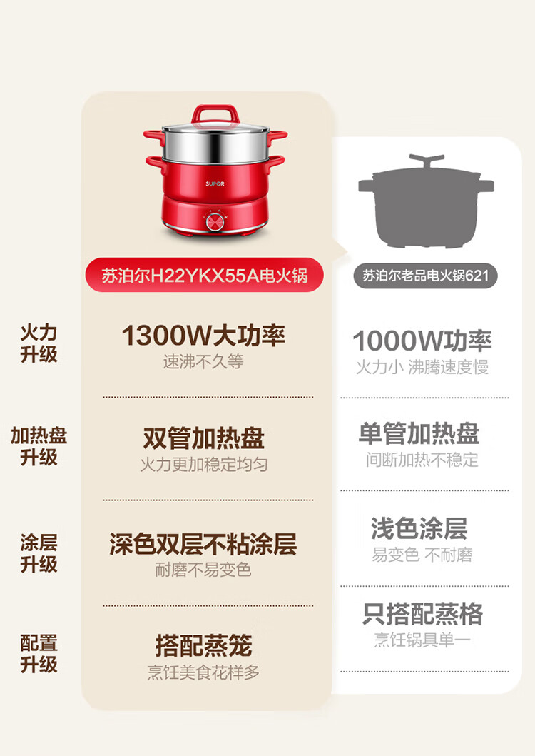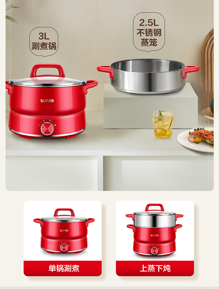 苏泊尔(SUPOR)QC系列3L电火锅H22YKX55A
