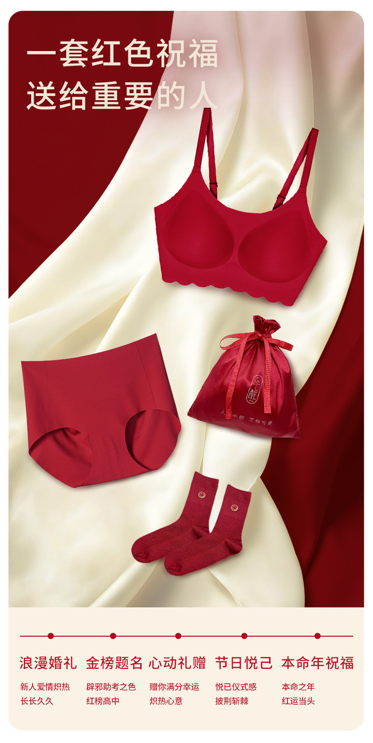 半醒本命年内衣礼盒4件套荣耀红限定吊带文胸无痕内裤羊毛保暖袜循环收纳袋