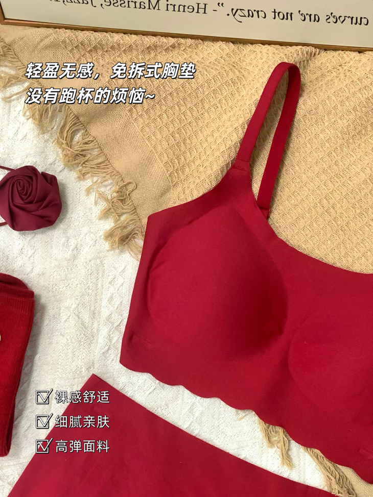 半醒本命年内衣礼盒4件套荣耀红限定吊带文胸无痕内裤羊毛保暖袜循环收纳袋 商品图0