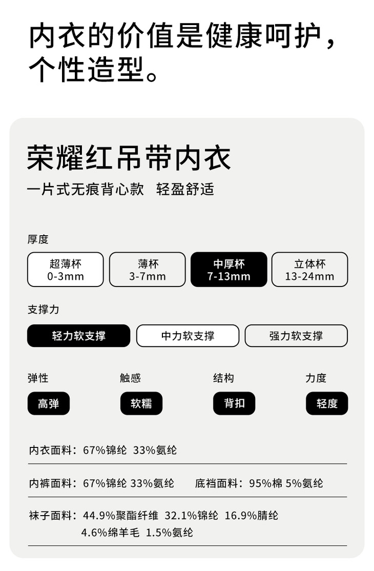 半醒本命年内衣礼盒4件套荣耀红限定吊带文胸无痕内裤羊毛保暖袜循环收纳袋 商品缩略图0 半醒本命年内衣礼盒4件套荣耀红限定吊带文胸无痕内裤羊毛保暖袜循环收纳袋 商品缩略图1 半醒本命年内衣礼盒4件套荣耀红限定吊带文胸无痕内裤羊毛保暖袜循环收纳袋 商品缩略图2 半醒本命年内衣礼盒4件套荣耀红限定吊带文胸无痕内裤羊毛保暖袜循环收纳袋 商品缩略图3 半醒本命年内衣礼盒4件套荣耀红限定吊带文胸无痕内裤羊毛保暖袜循环收纳袋 商品缩略图4
