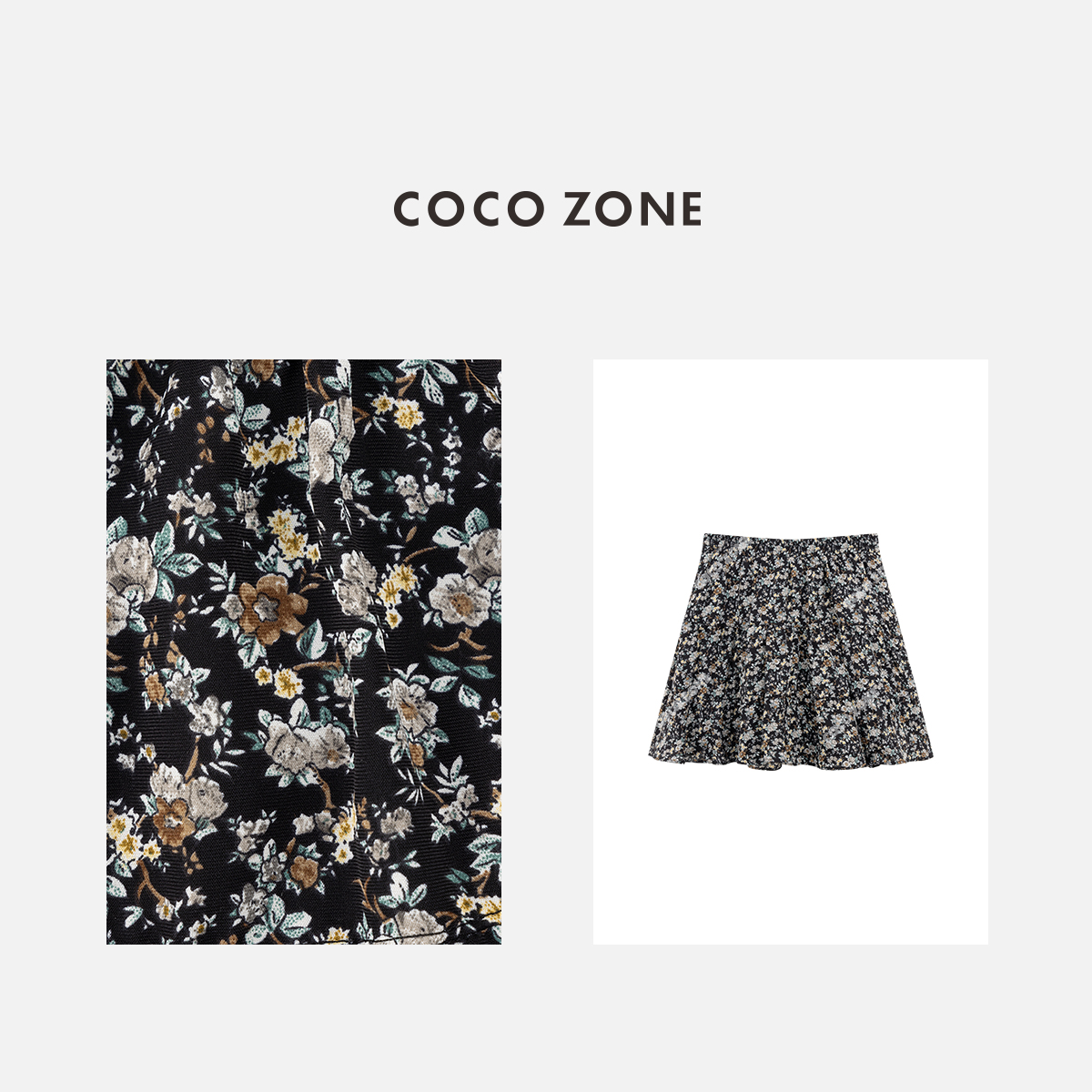 COCO ZONE "碎花裙“夏季时尚松紧腰碎花短裙百搭A字裙CC1B1315