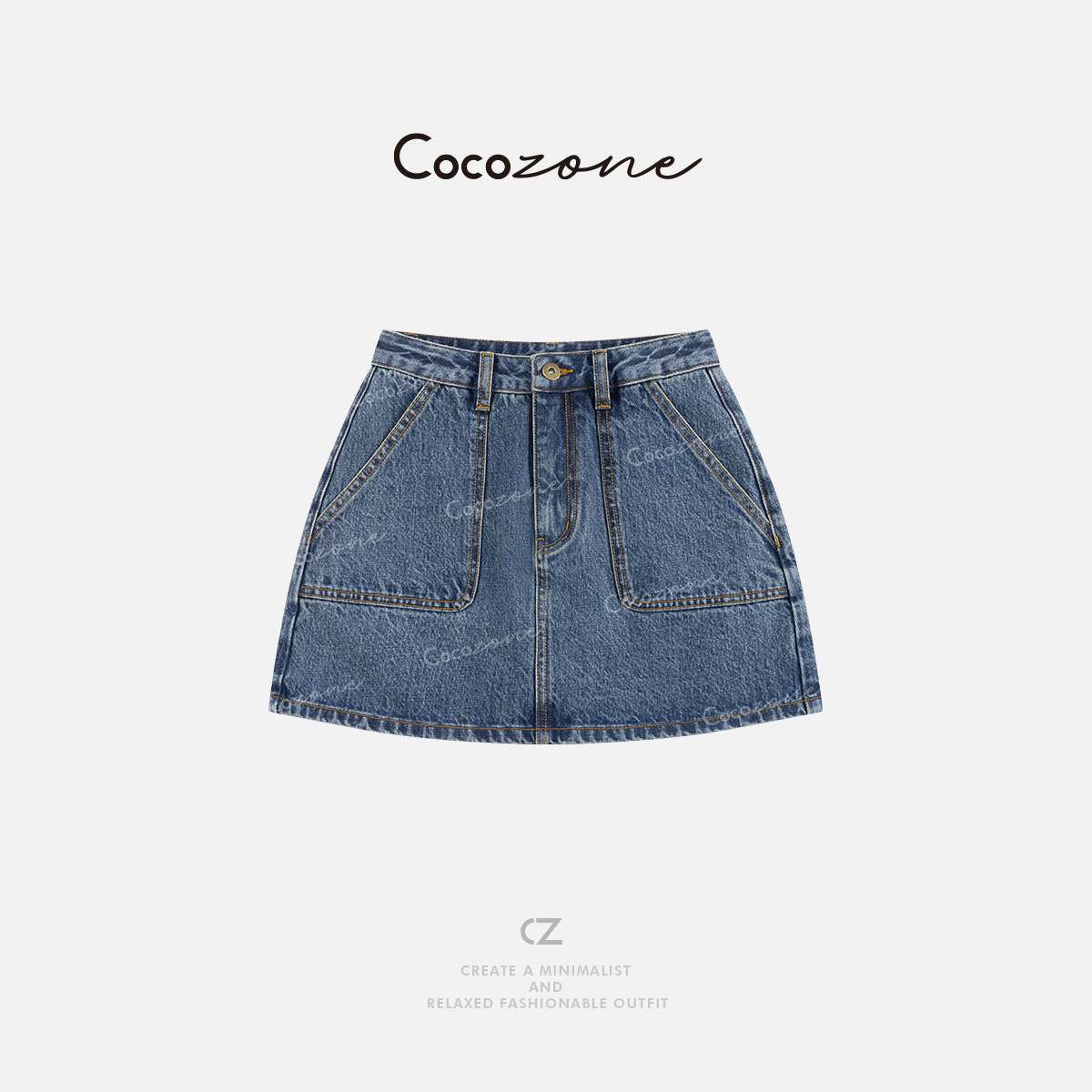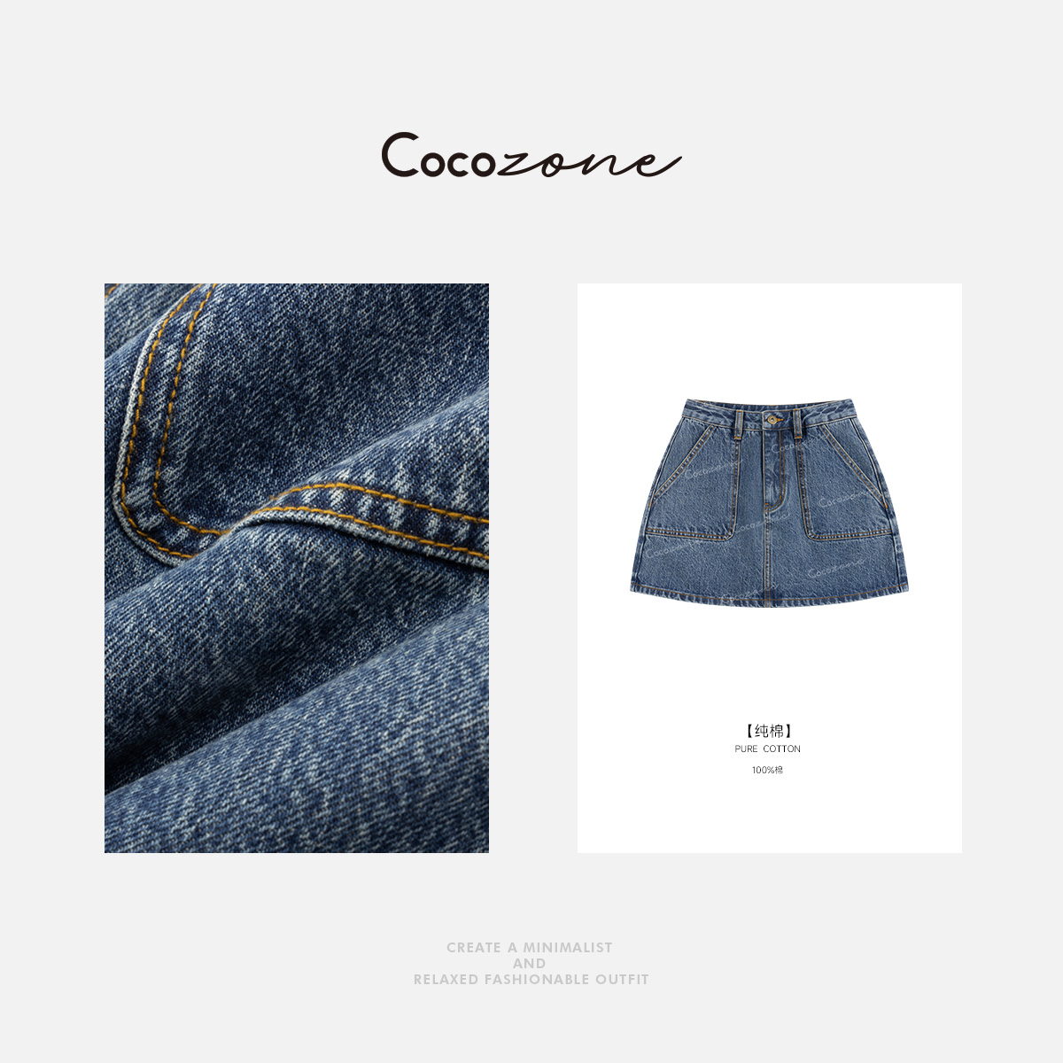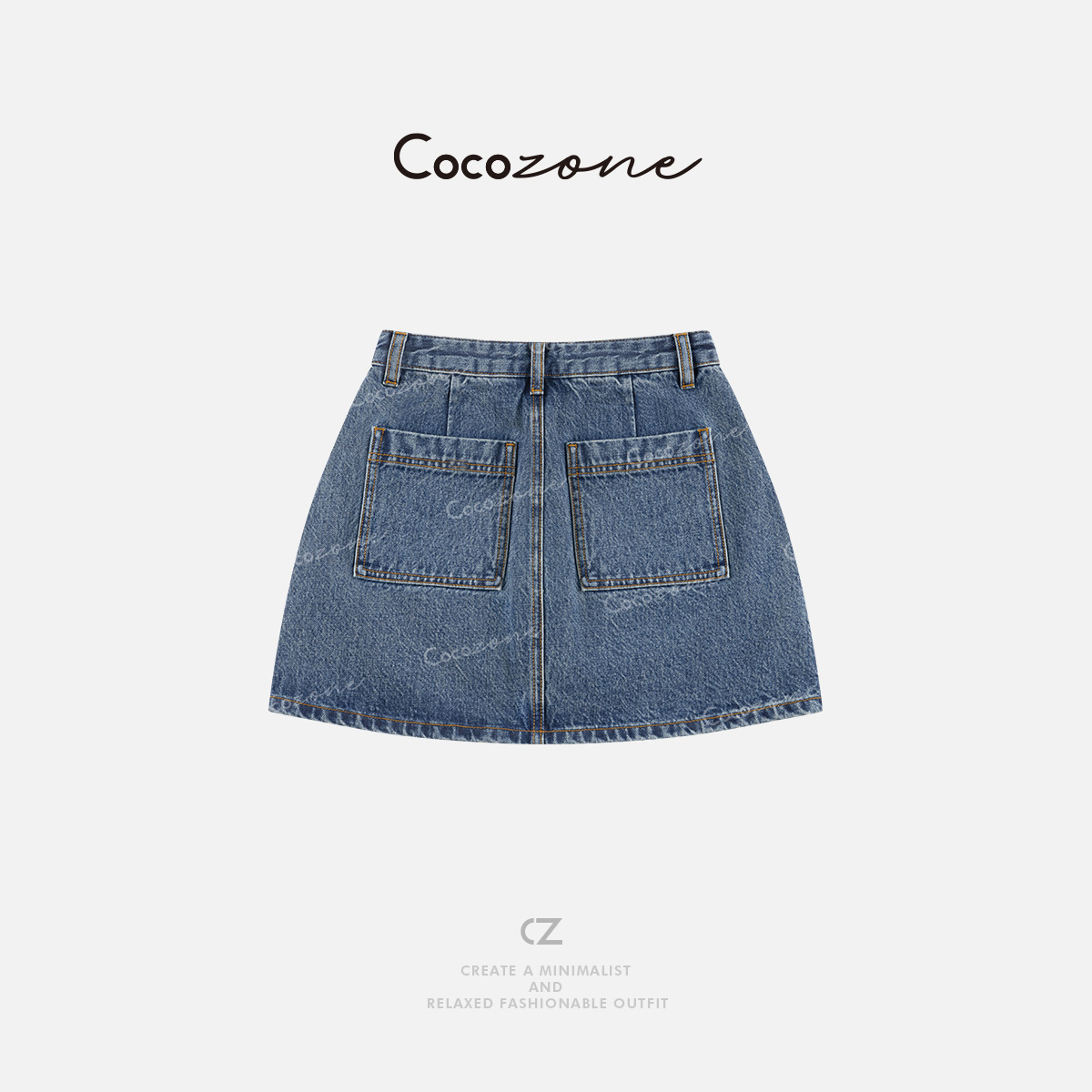 COCO ZONE 100棉春季复古小众显瘦气质牛仔短裙CD1A0056